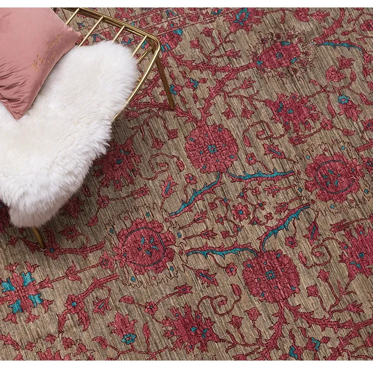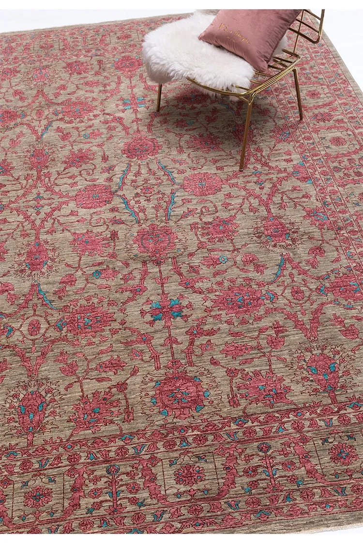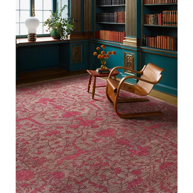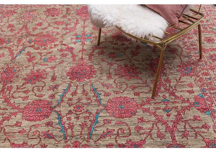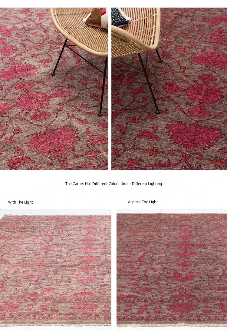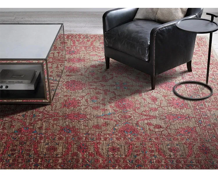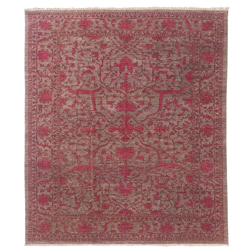Visual Delight: Hand-Knotted Afghan Red Neoclassical Living Room Rug - Collectible Grade Wool Carpet for Elegant Home Decor