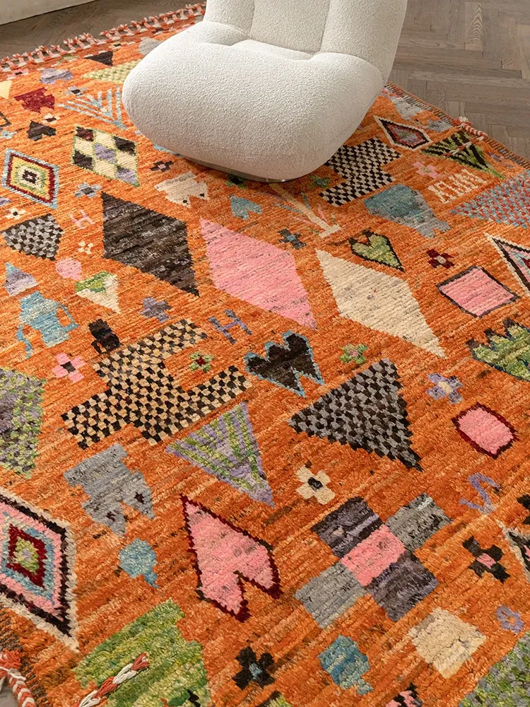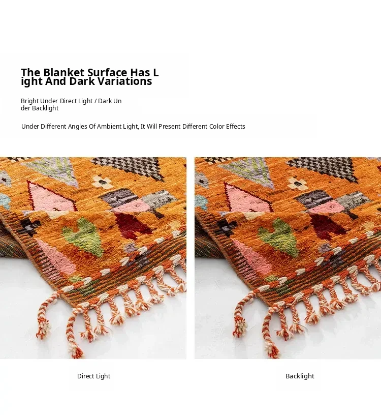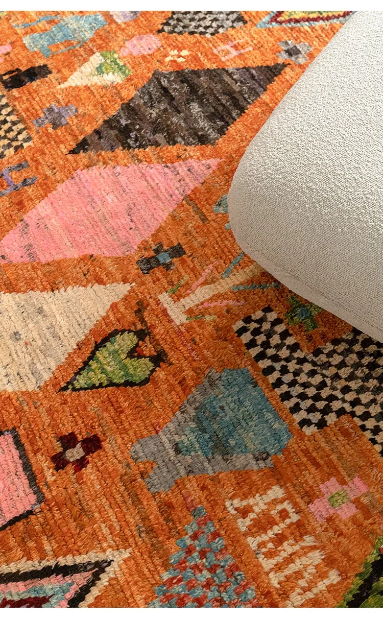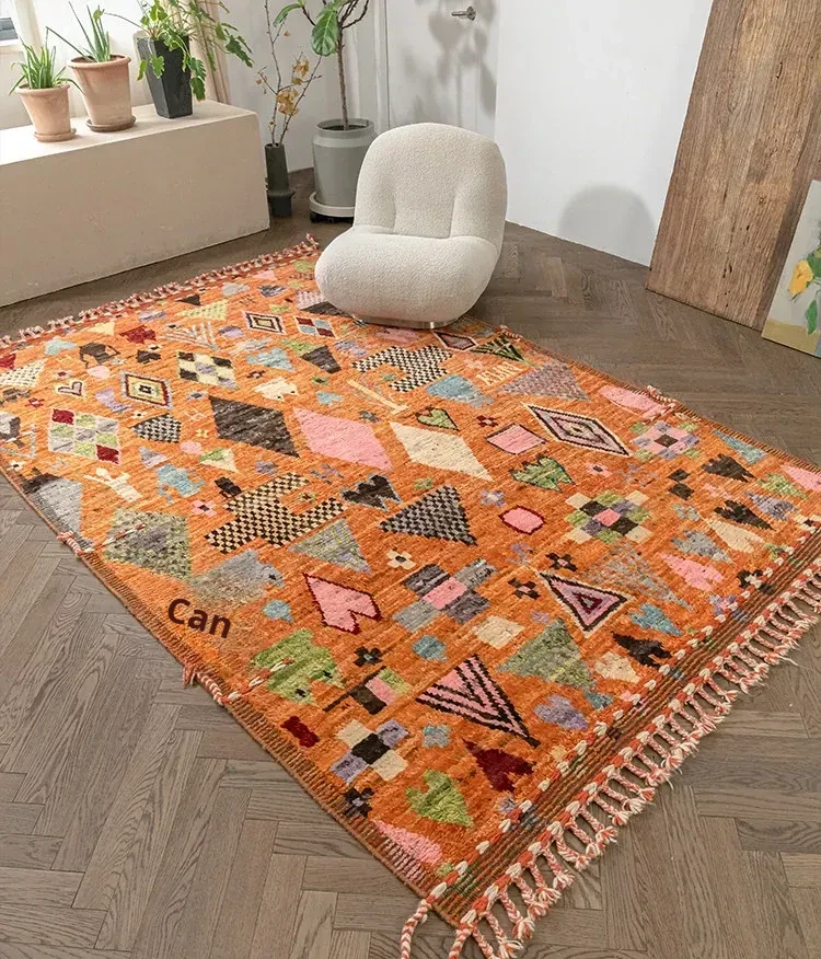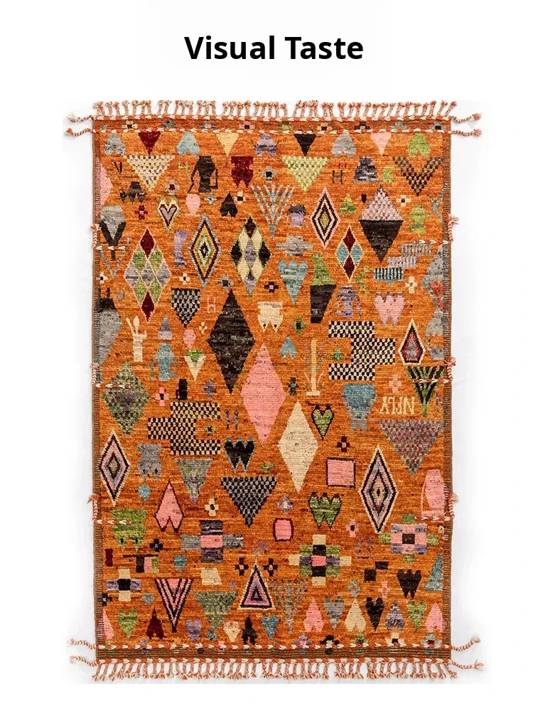 Visual Delight: Handmade Non-Glue Imported Wool Area Rug - American Moroccan Style for Living Room and Bedroom, Perfect for Bedside Comfort
