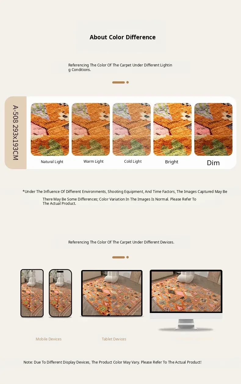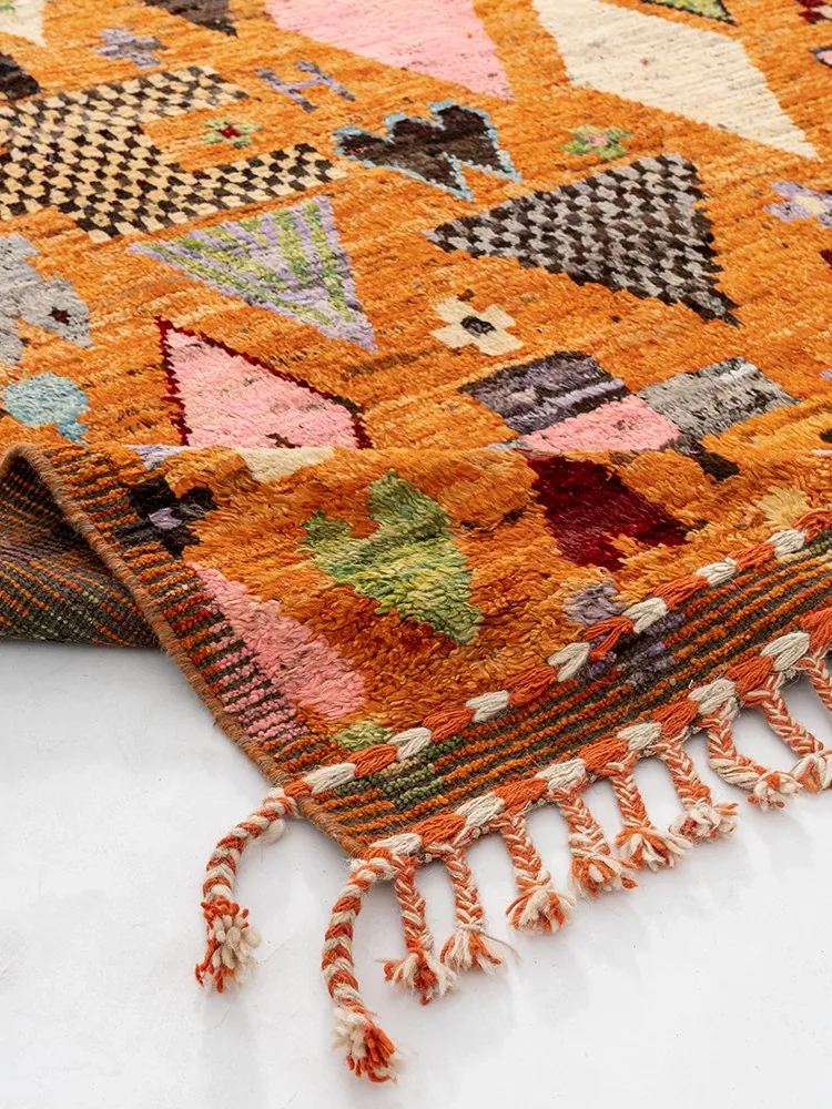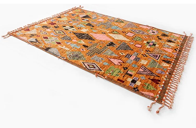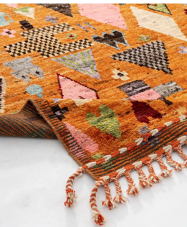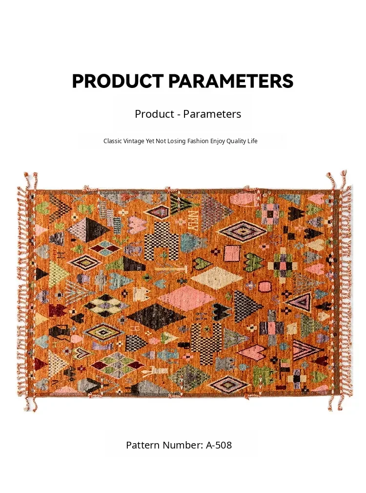 Visual Delight: Handmade Non-Glue Imported Wool Area Rug - American Moroccan Style for Living Room and Bedroom, Perfect for Bedside Comfort
