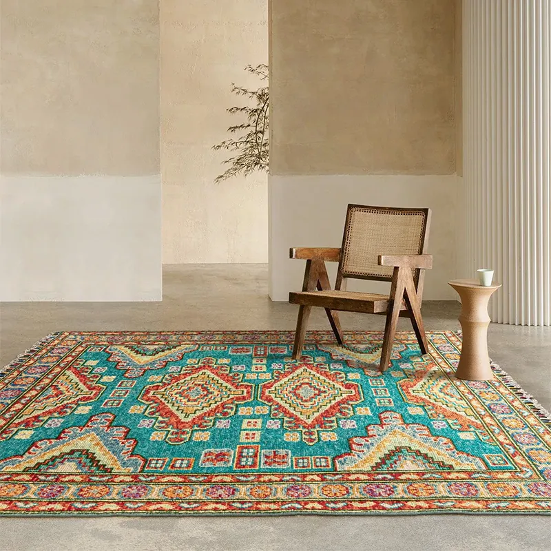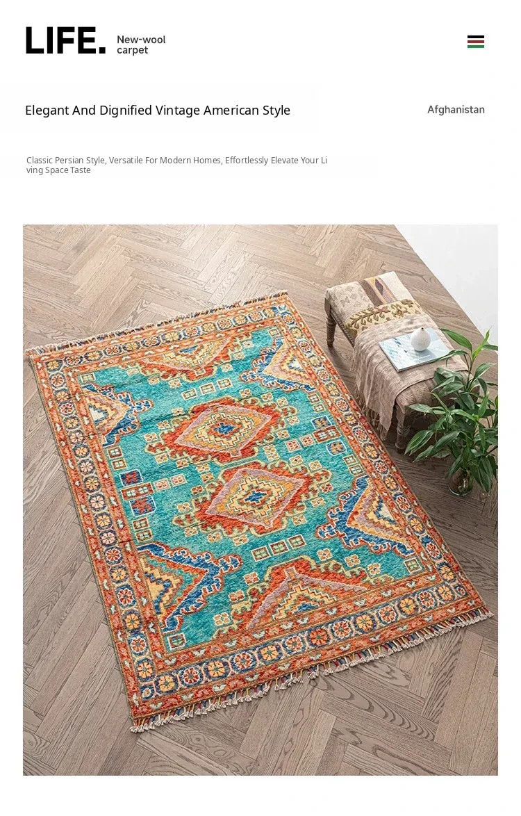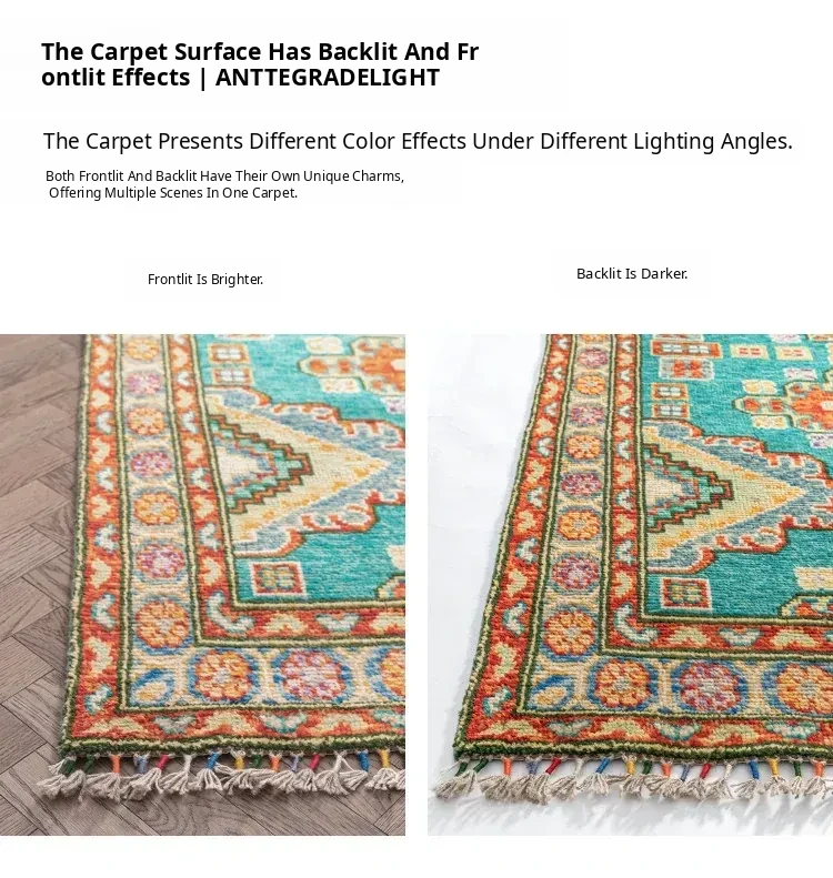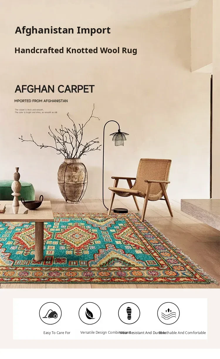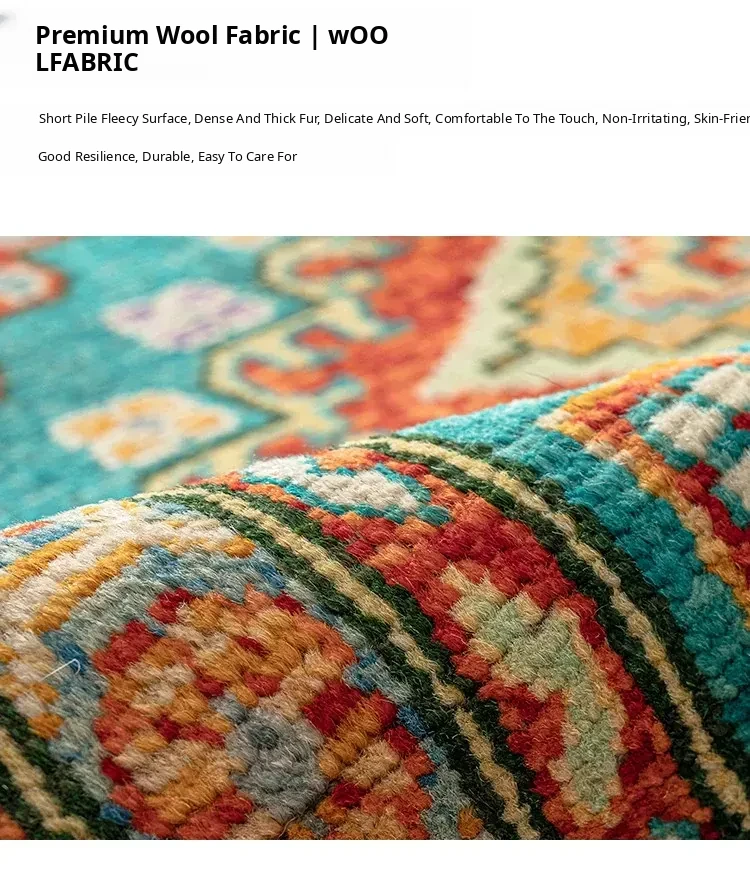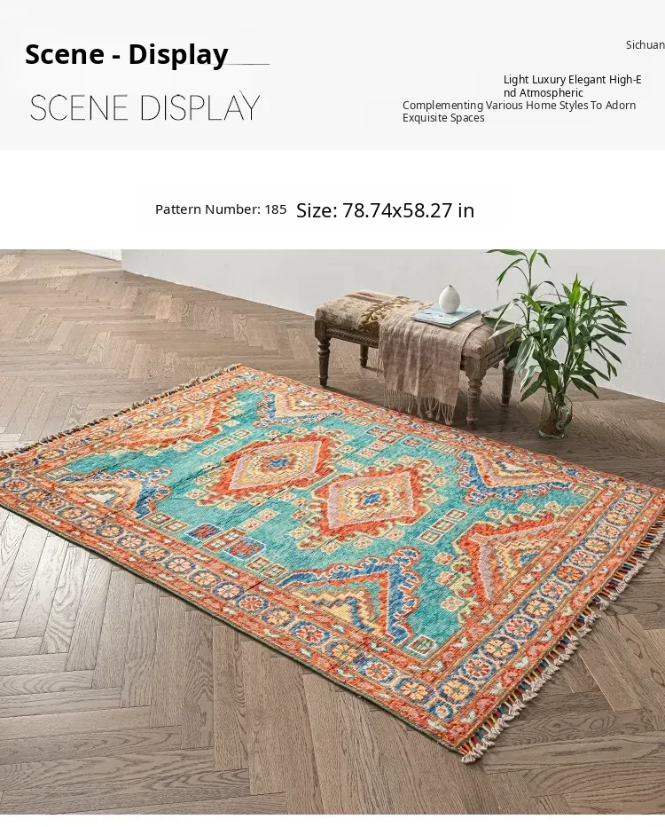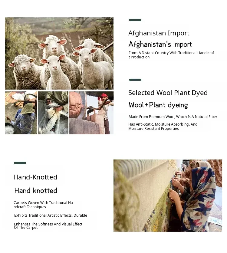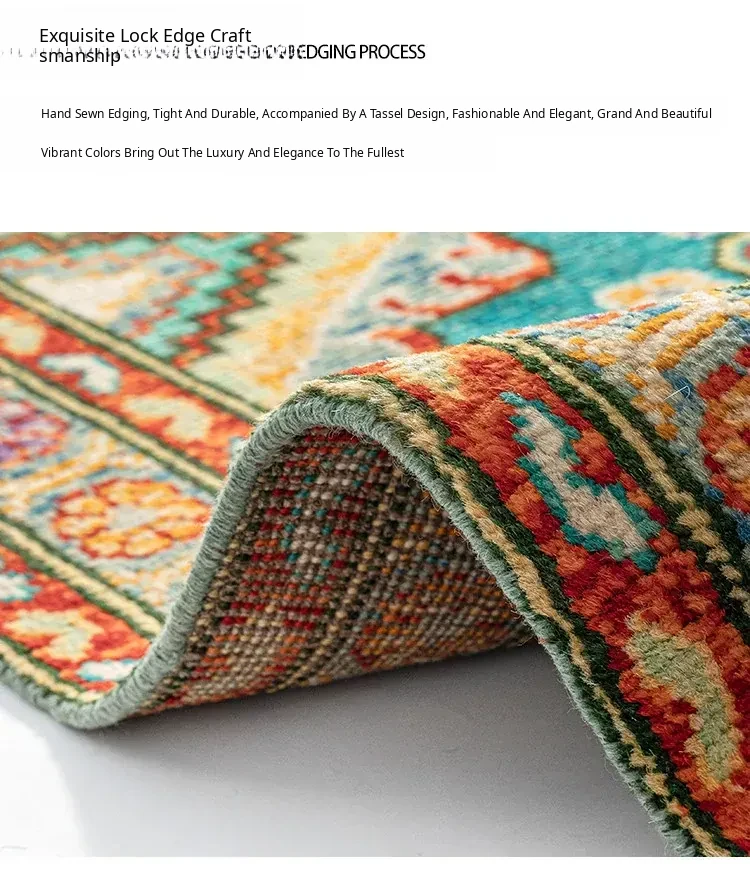 Visual Delight: Imported Green Wool Handcrafted Area Rug - Luxurious High-End Carpet for European and American Villas, Perfect for Living Rooms and Bedside Use.