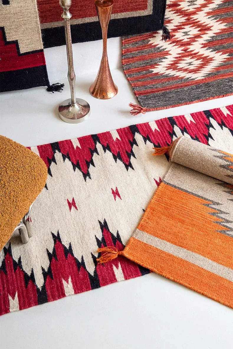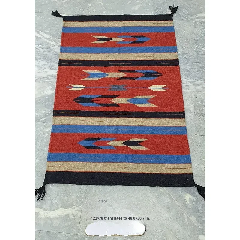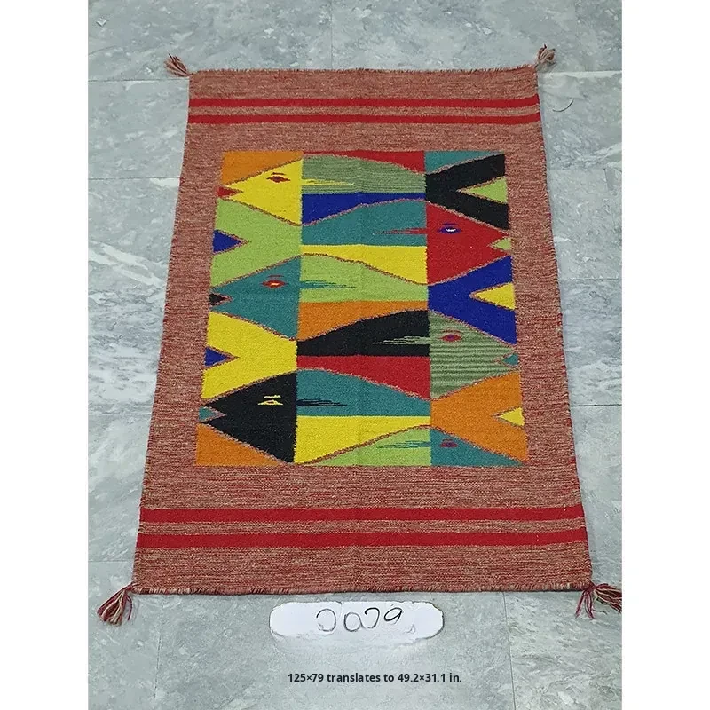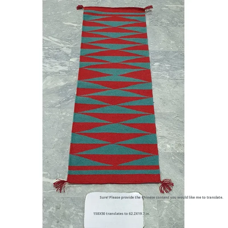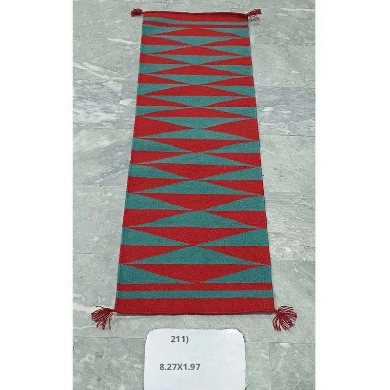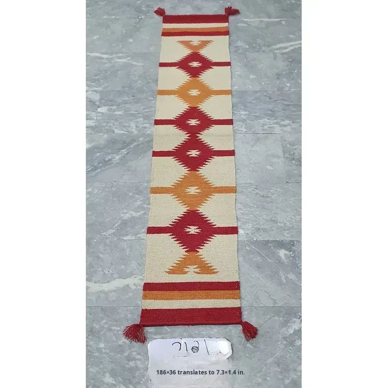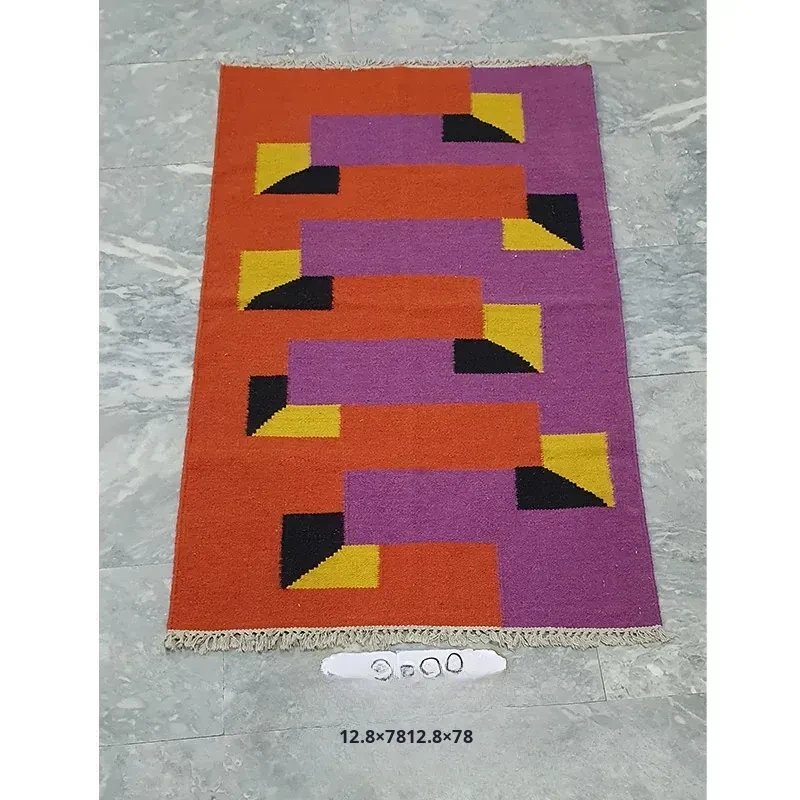 Visual Delight: Imported Wool Red Kilim Area Rug - Bohemian No-Adhesive Bedroom and Hallway Carpet for Cozy Living Spaces