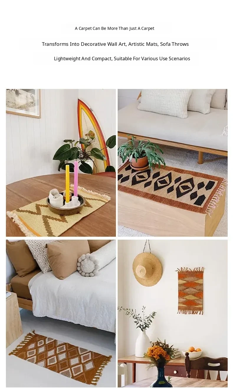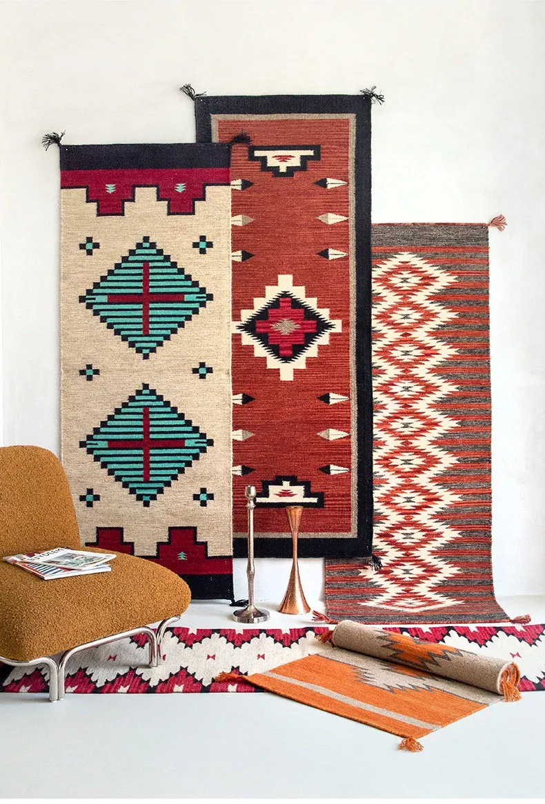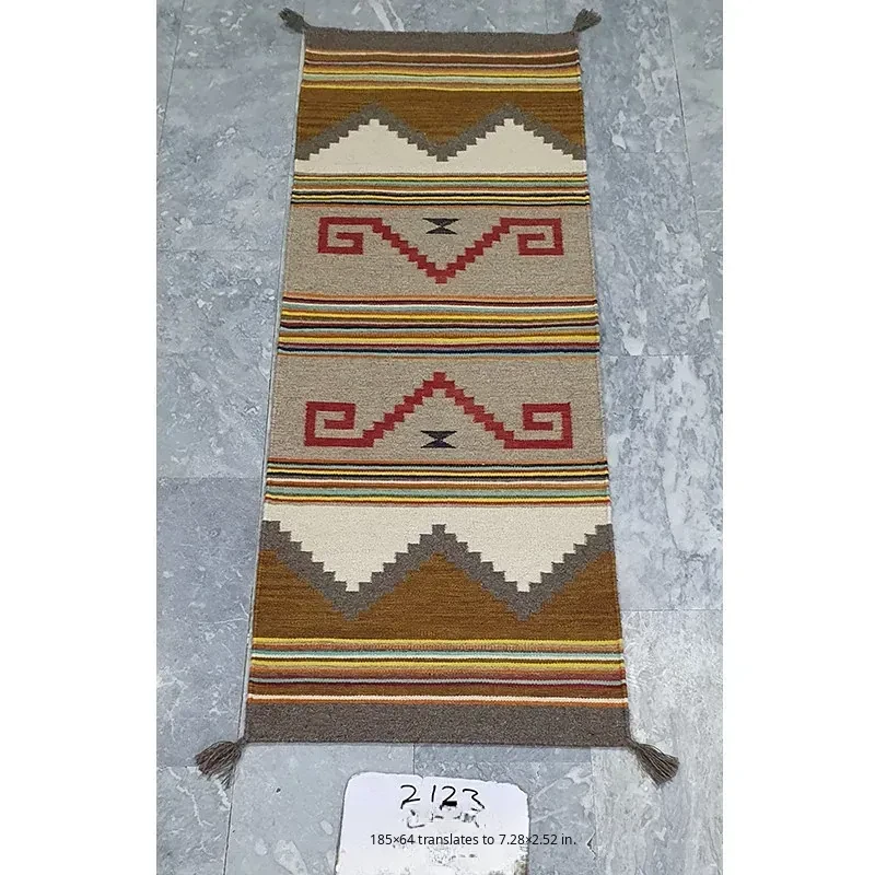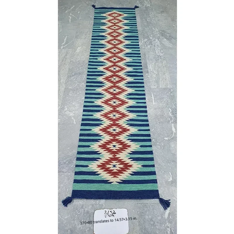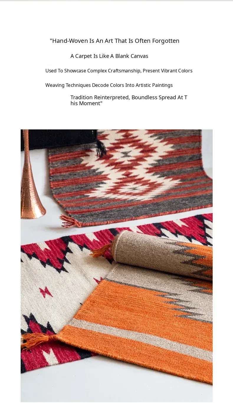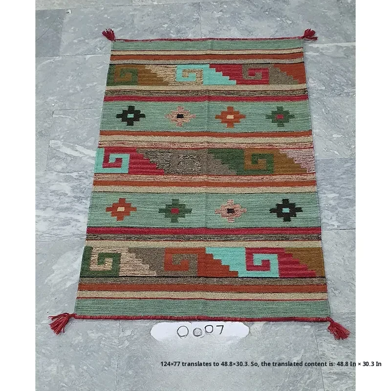 Visual Delight: Imported Wool Red Kilim Area Rug - Bohemian No-Adhesive Bedroom and Hallway Carpet for Cozy Living Spaces
