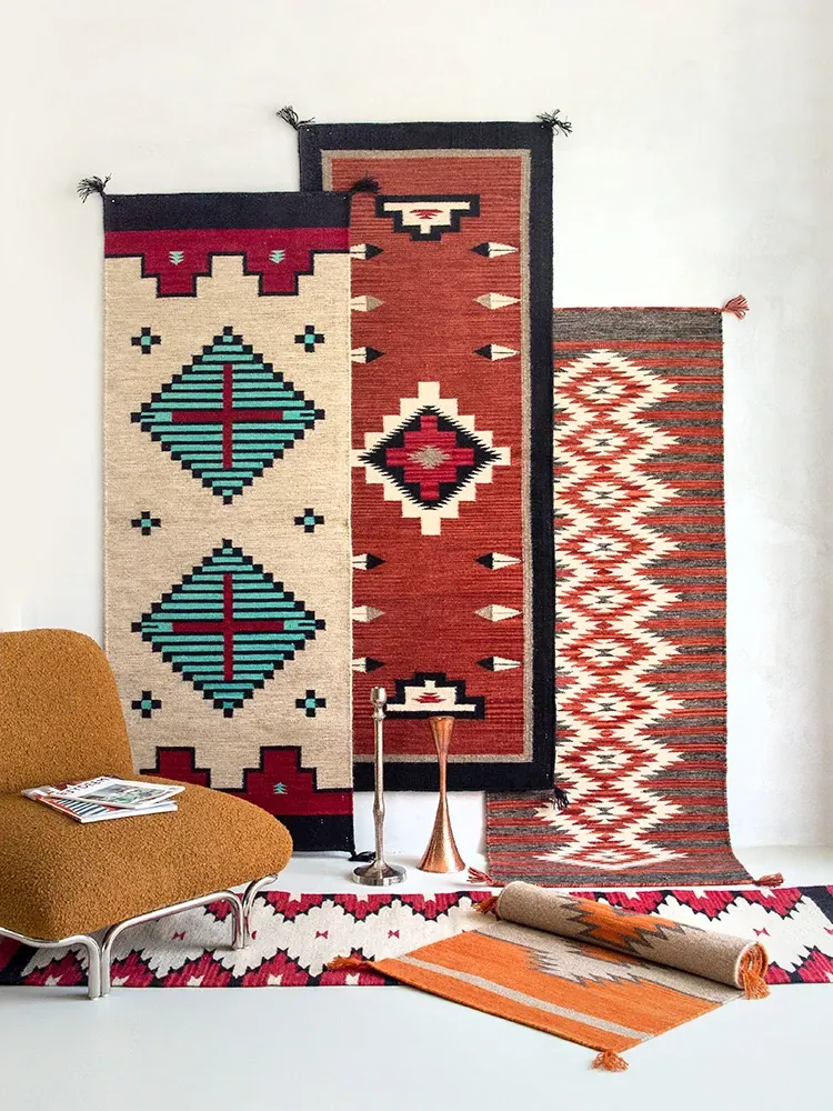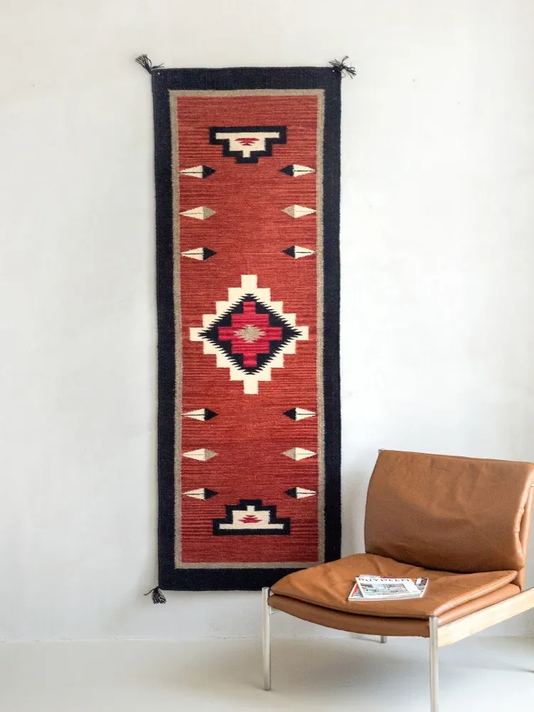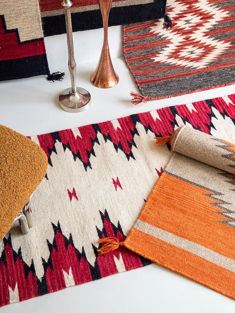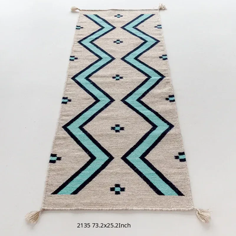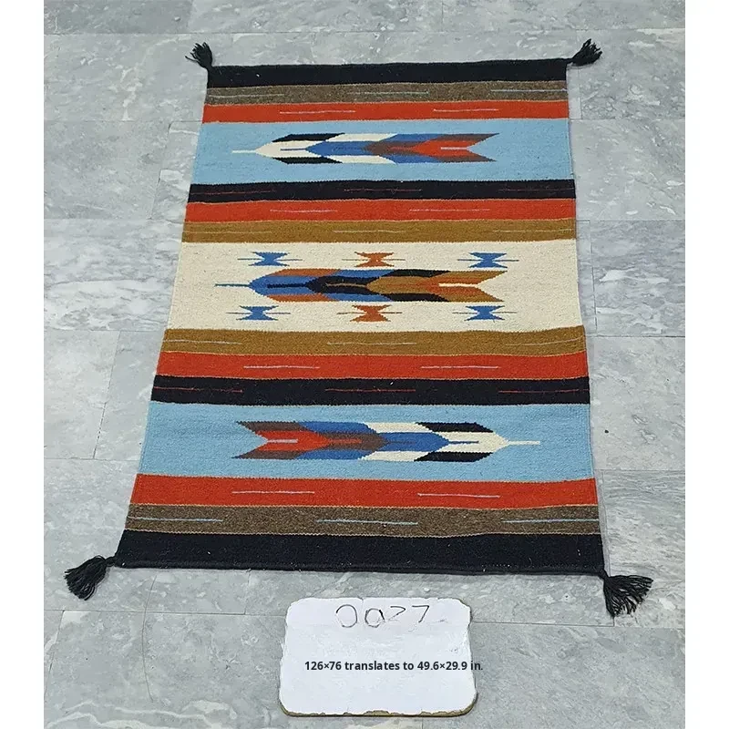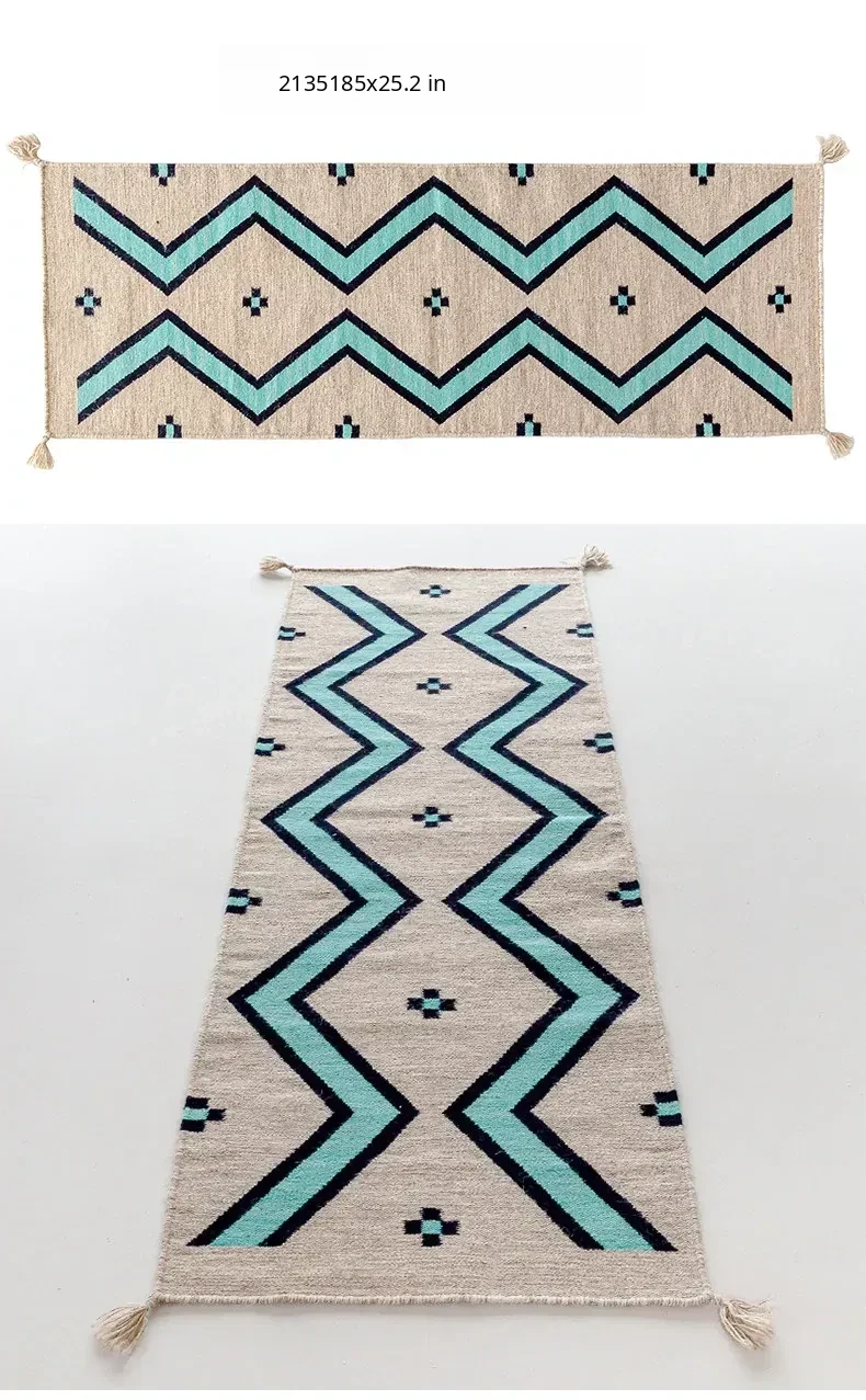 Visual Delight: Imported Wool Red Kilim Area Rug - Bohemian No-Adhesive Bedroom and Hallway Carpet for Cozy Living Spaces