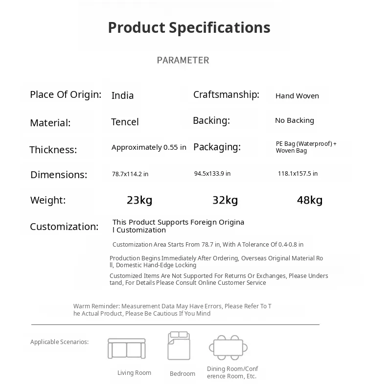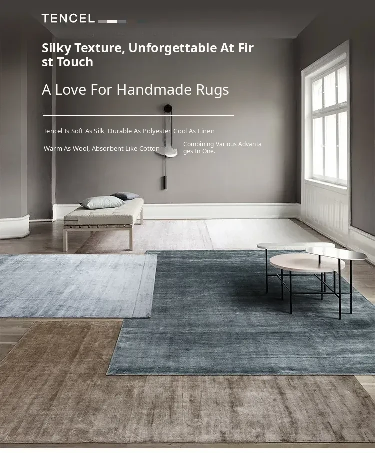 Visual Delight: Premium Handmade Tencel Carpet - Modern Luxury Area Rug for Living Room, Coffee Table Mat, Ins-style Bedroom Bedside Decor