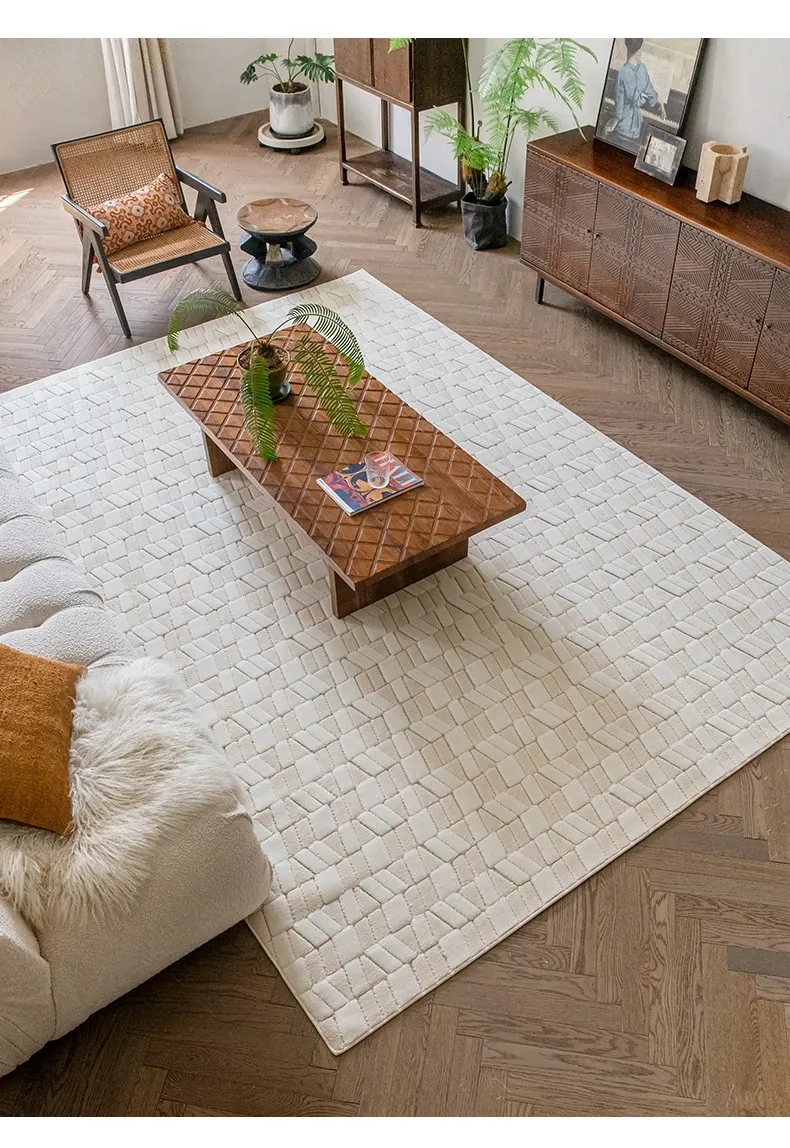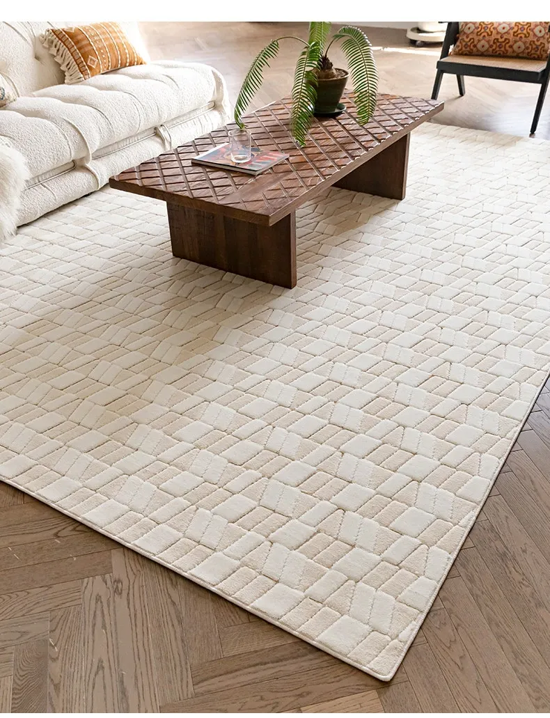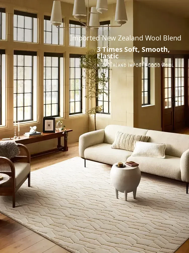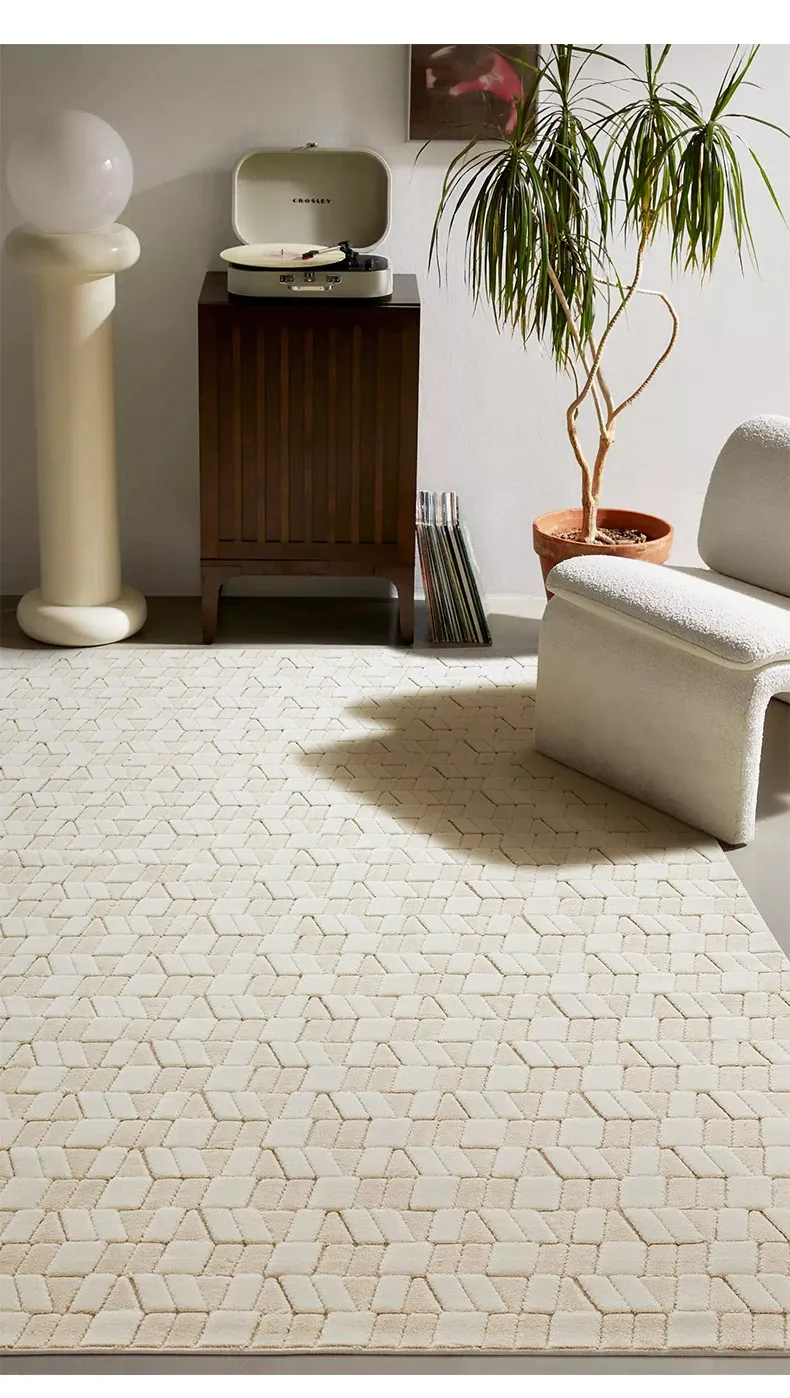 Visual Delight: Vintage Creamy White Wool Living Room Carpet - Premium Quality Home Area Rug for Bedrooms and Cozy Spaces