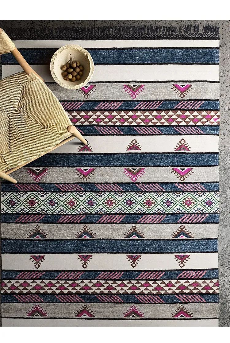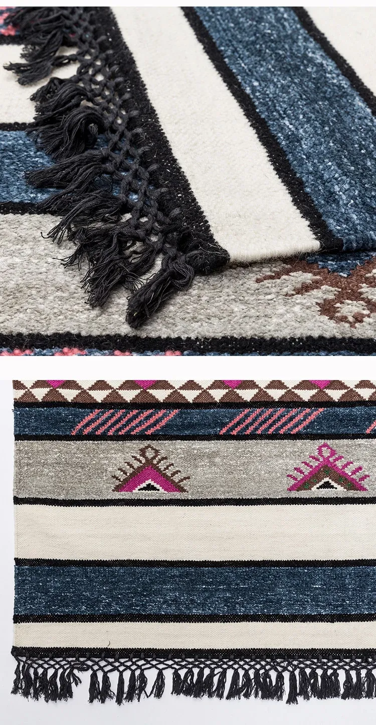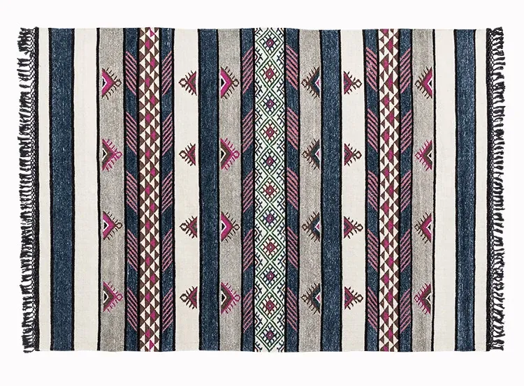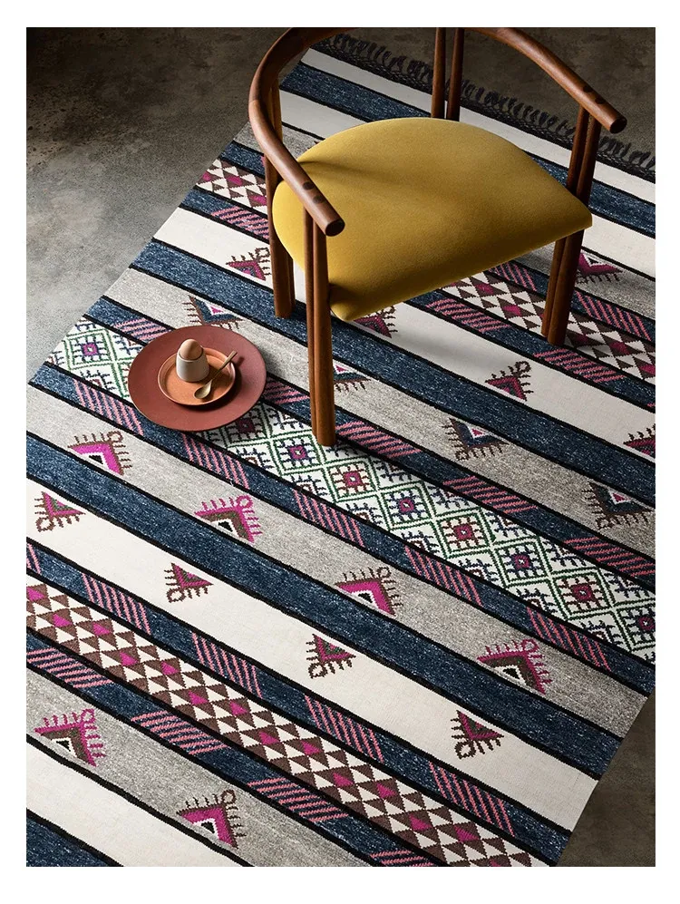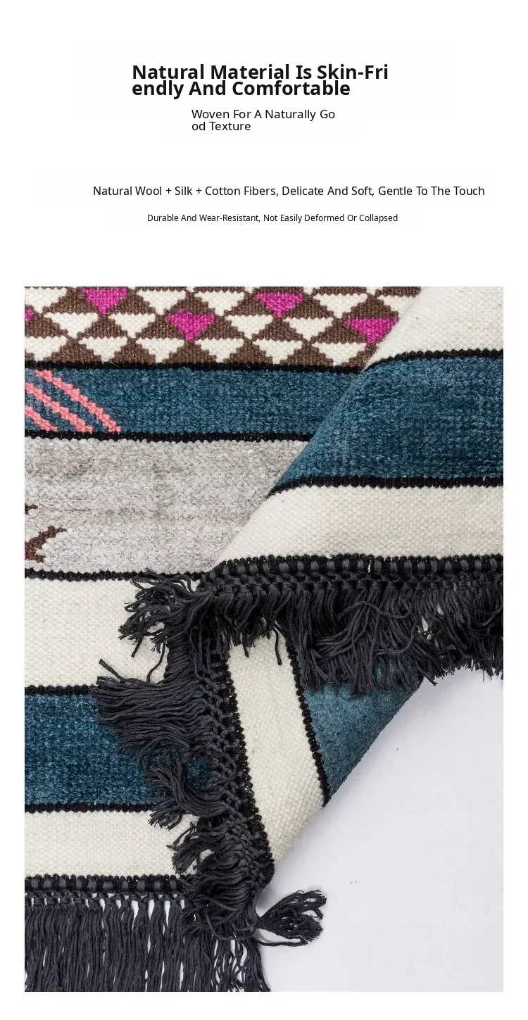 Visual Flavor: Handcrafted Bohemian American Rug - Indian Imported Wool and Silk Carpet for Living Room and Bedroom