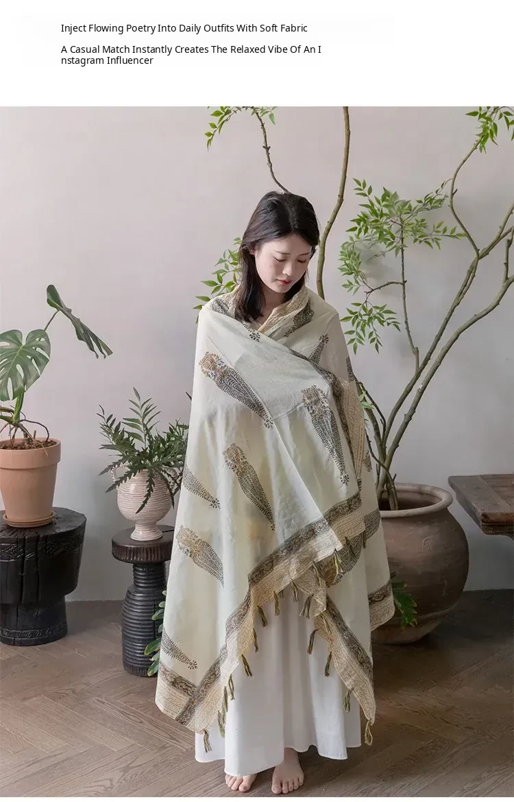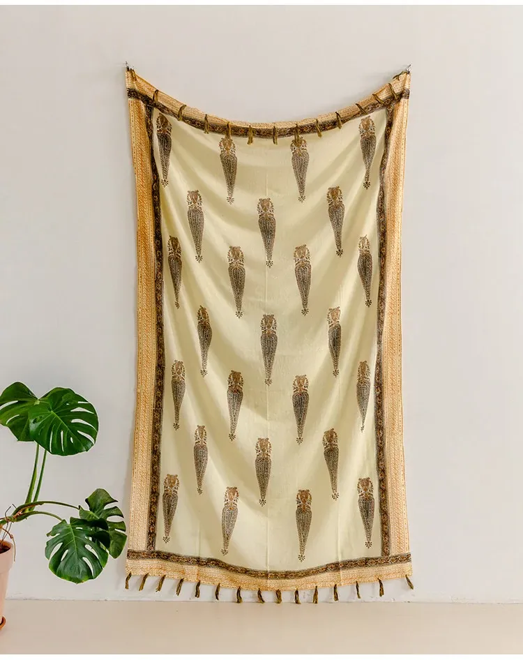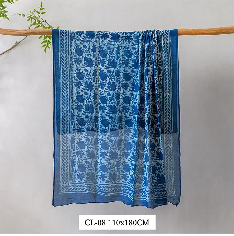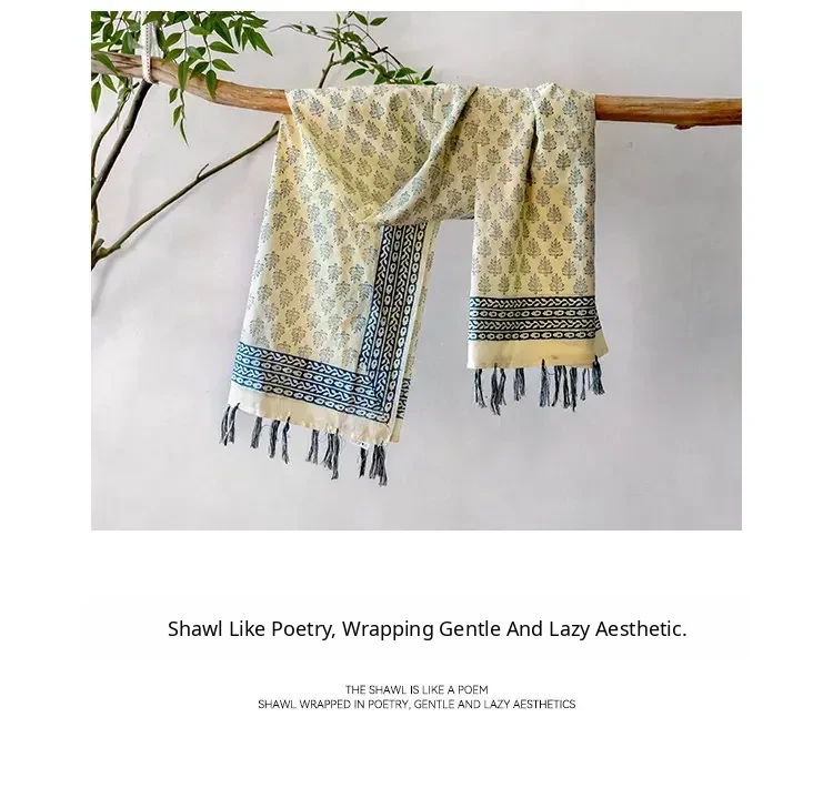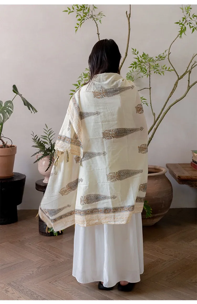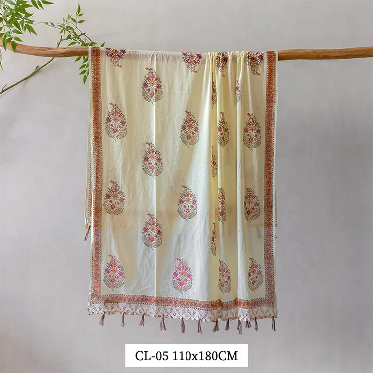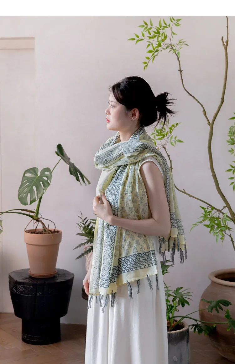 Visual Flavor Handcrafted Printed Scarf Beach Towel Sun Protection Shawl - Luxuriously Soft Cotton, Imported from India