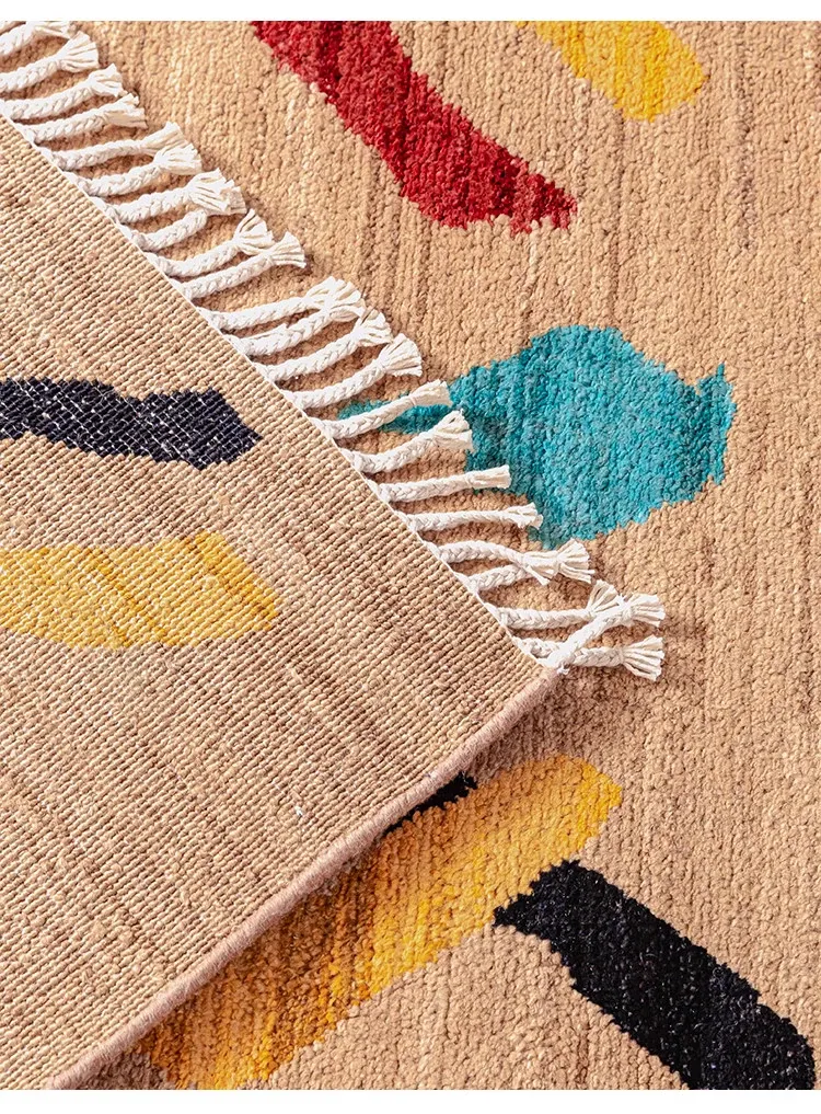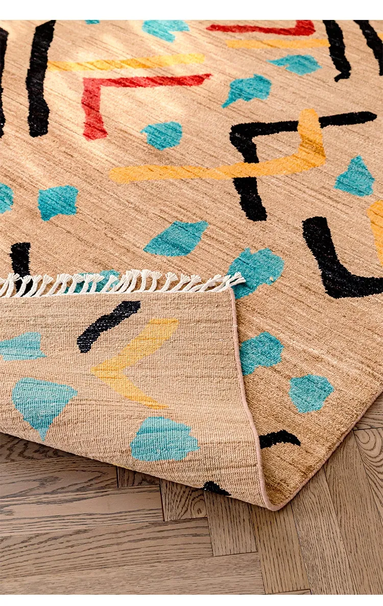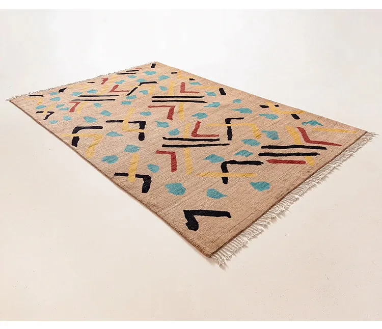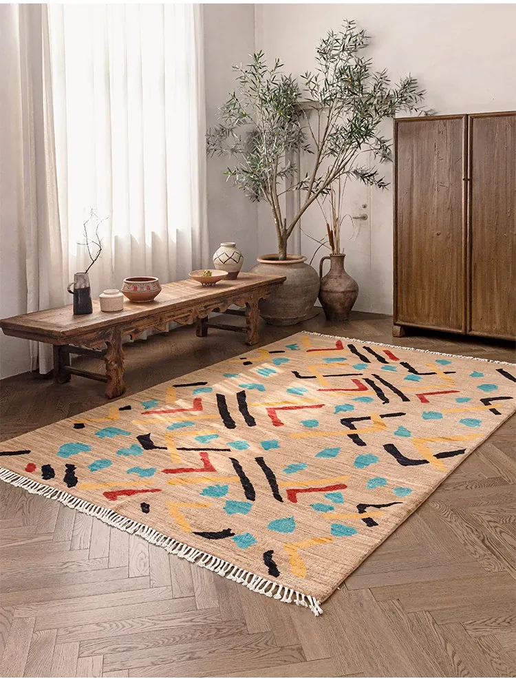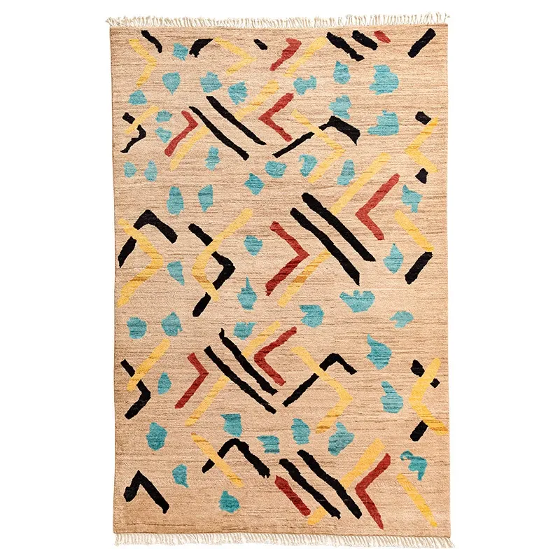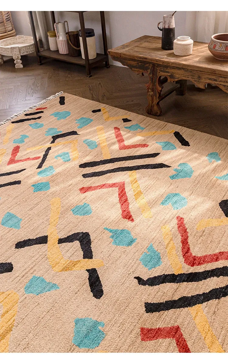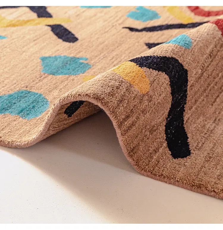 Visual Flavor: Hand-Knotted Afghan Wool Rug - Modern Wabi-Sabi Style, Colorful Living Room Carpet, Imported Elegance