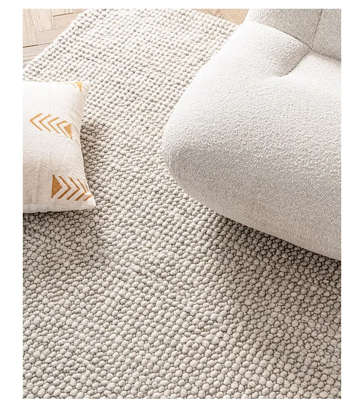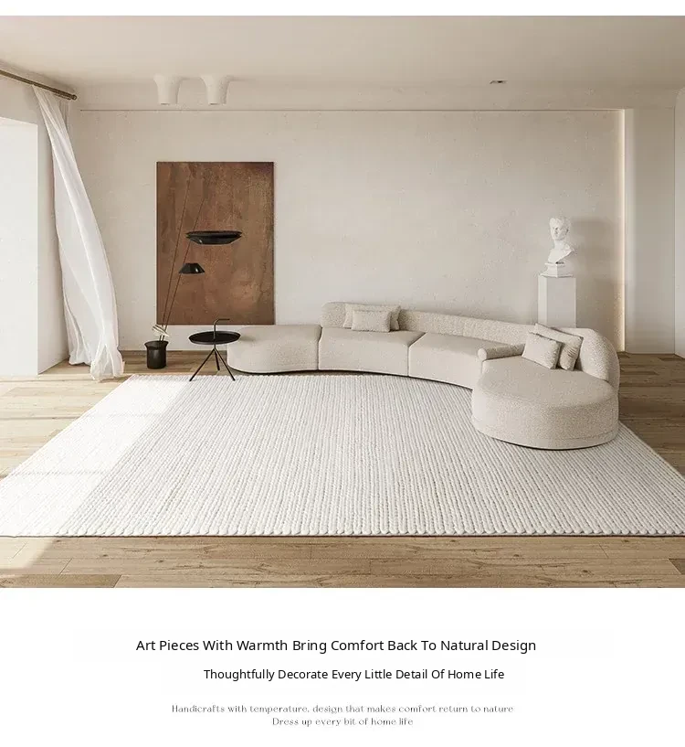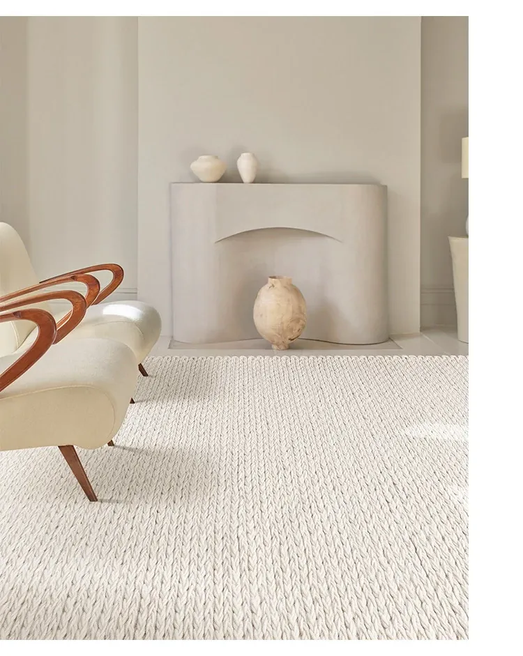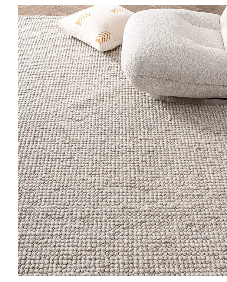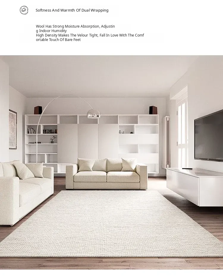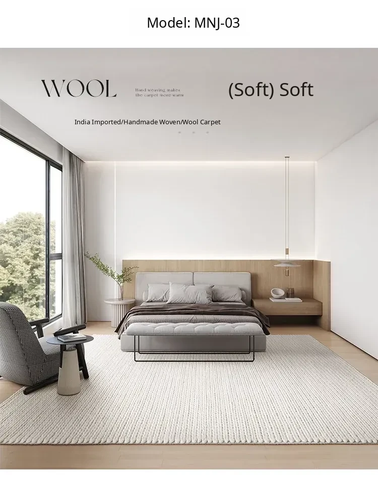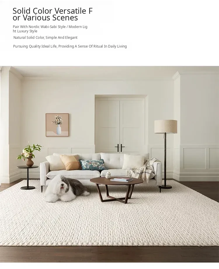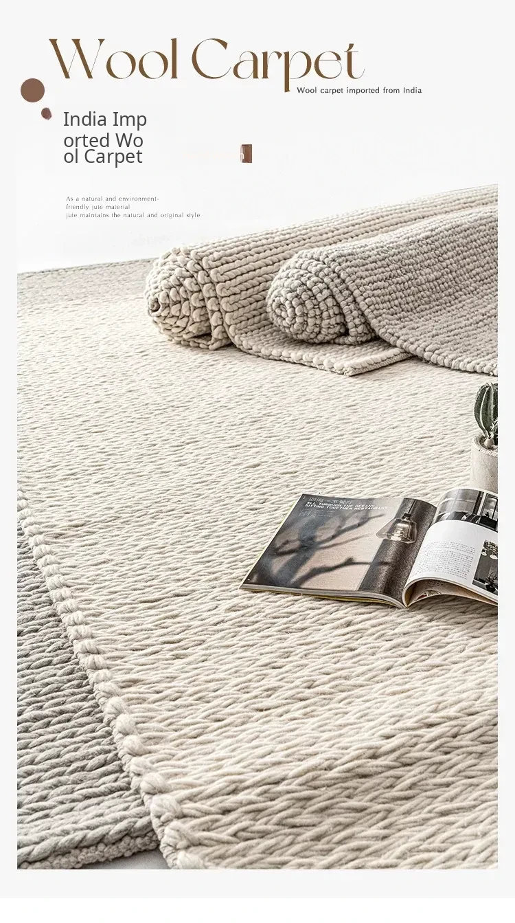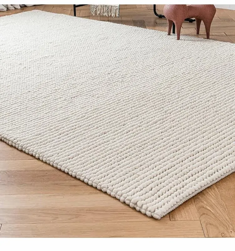 Visual Flavor Handmade Indian Wool Carpet - Luxurious Creamy Style Plush Area Rug for Bedroom - Thick Solid Color Design