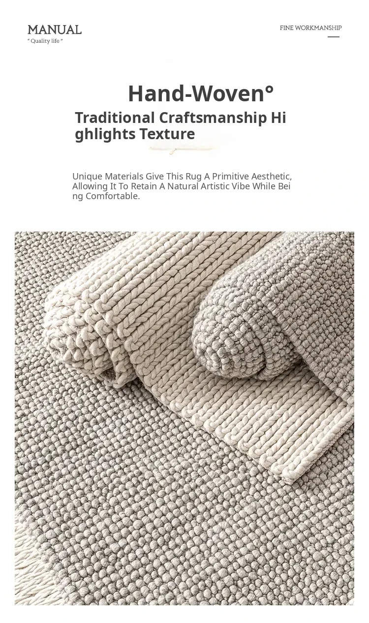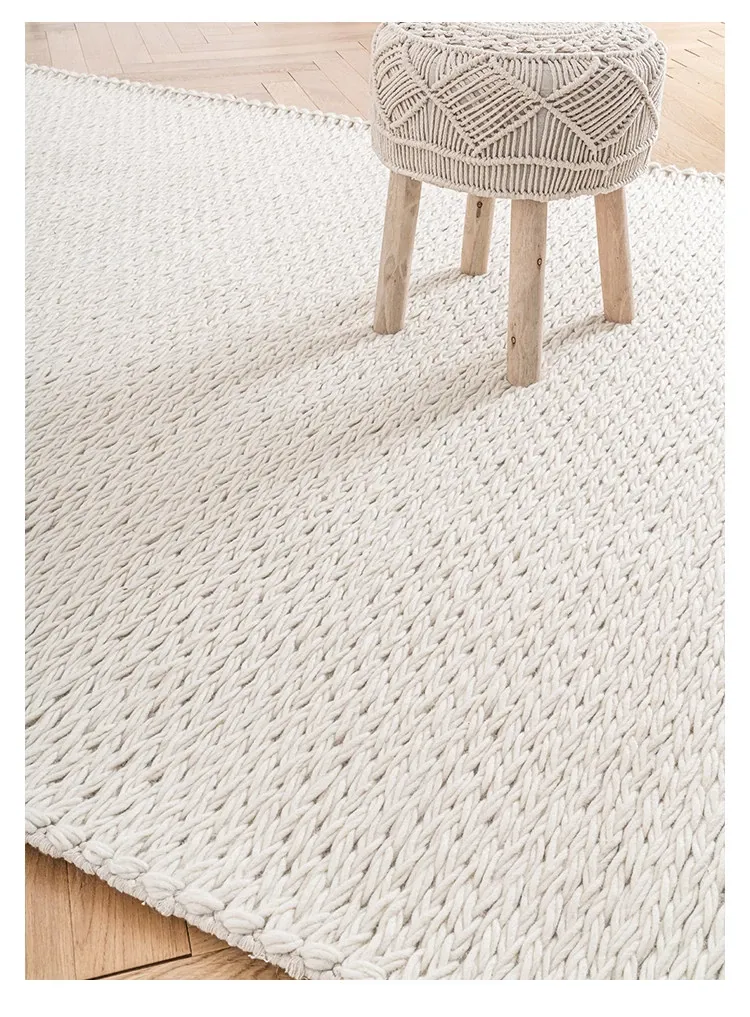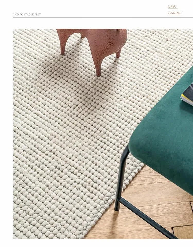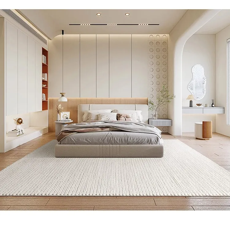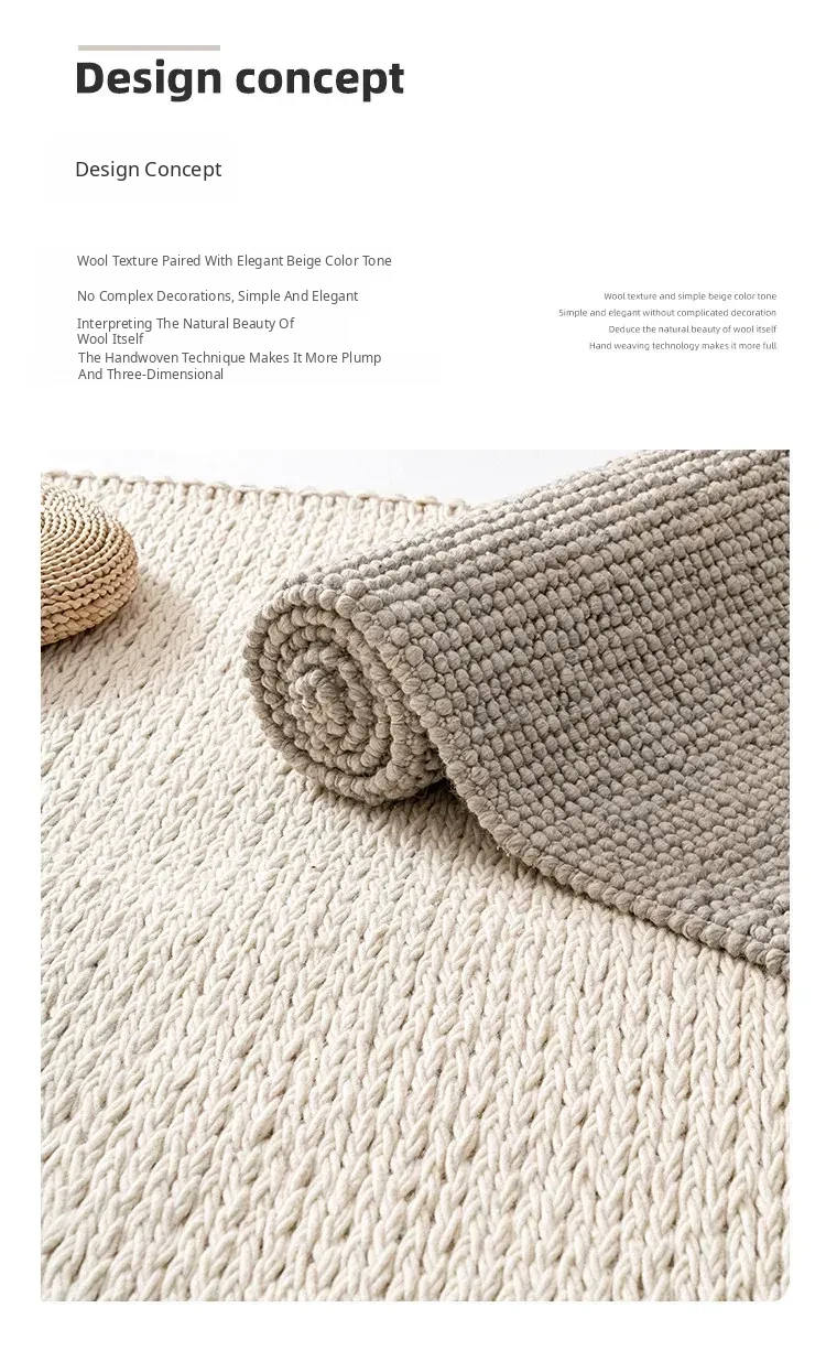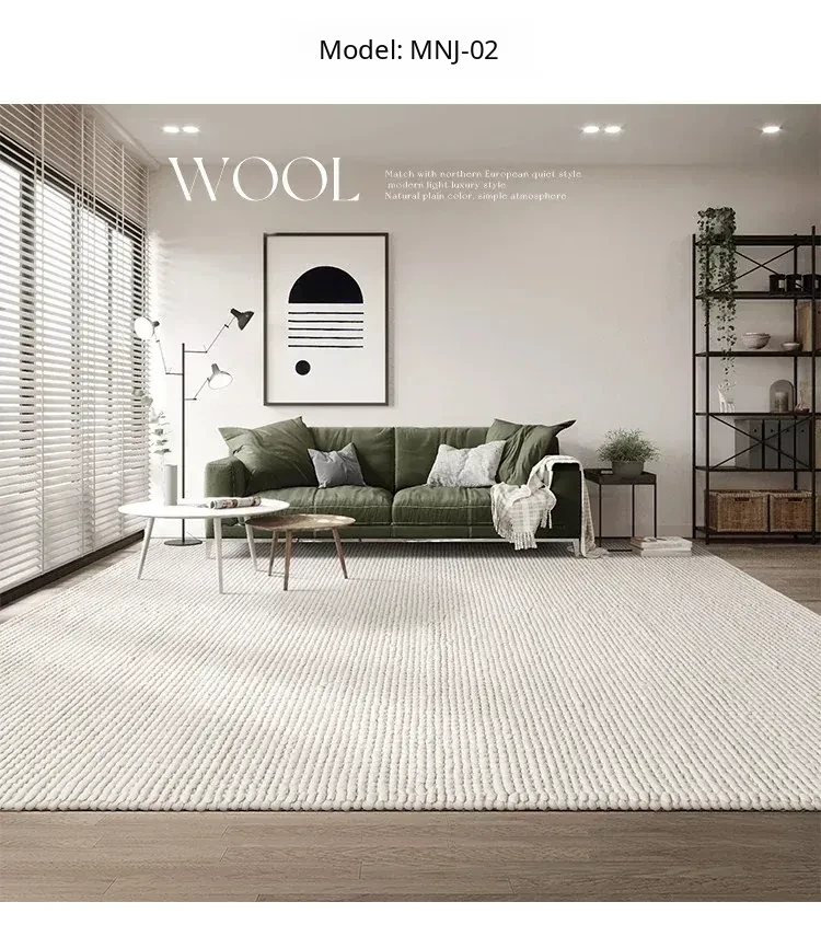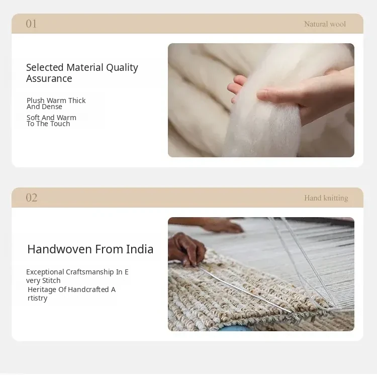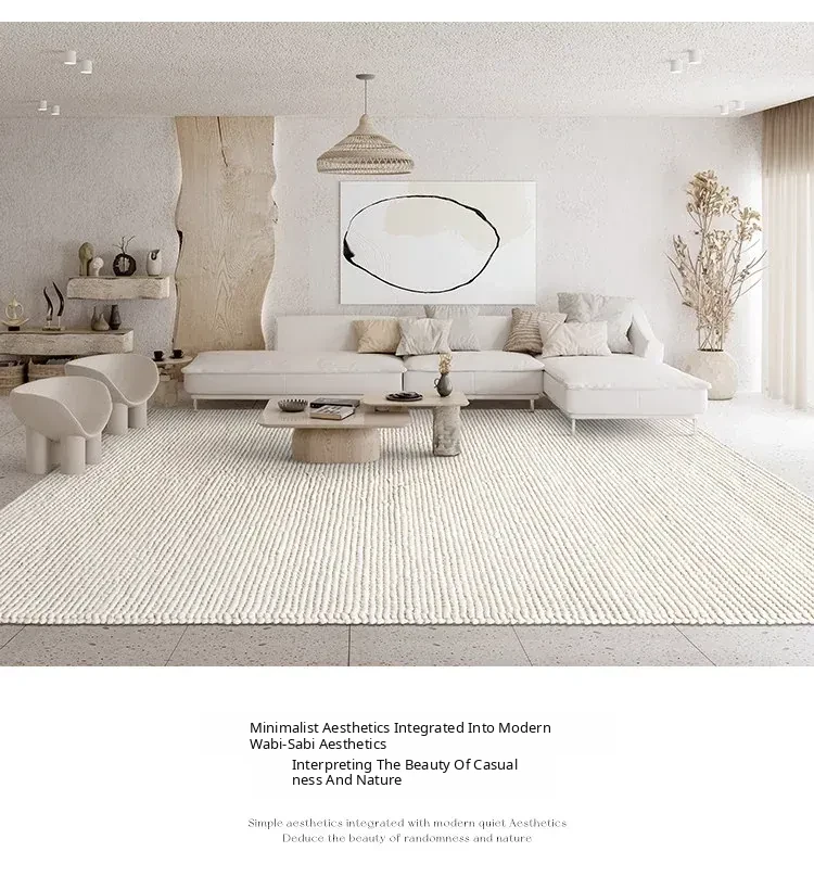 Visual Flavor Handmade Indian Wool Carpet - Luxurious Creamy Style Plush Area Rug for Bedroom - Thick Solid Color Design