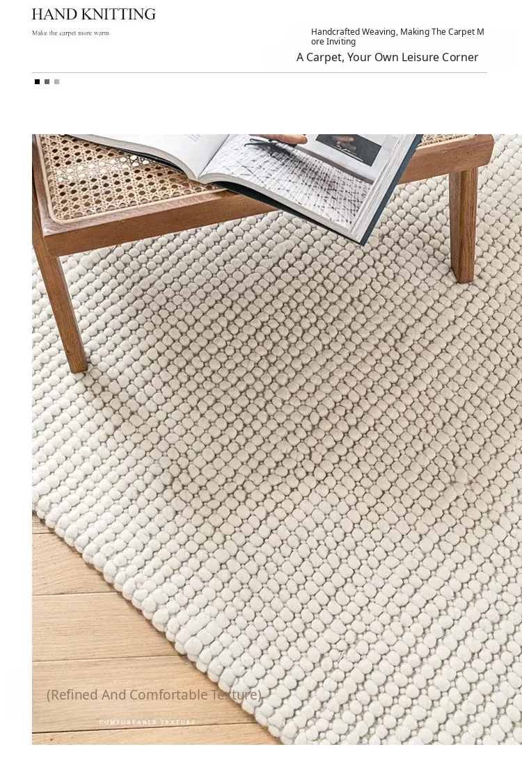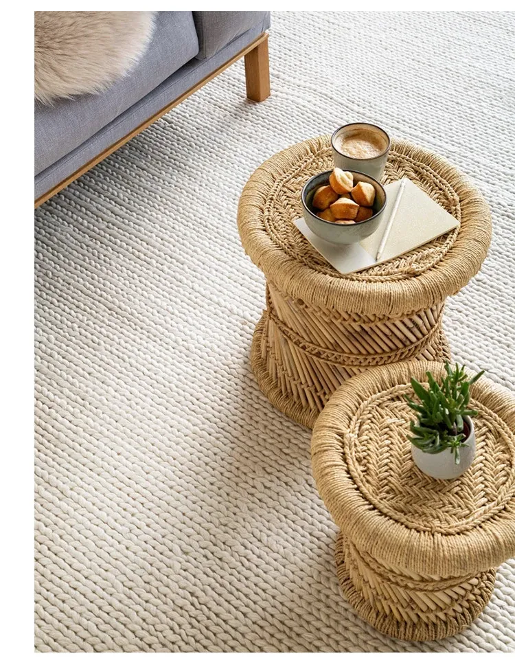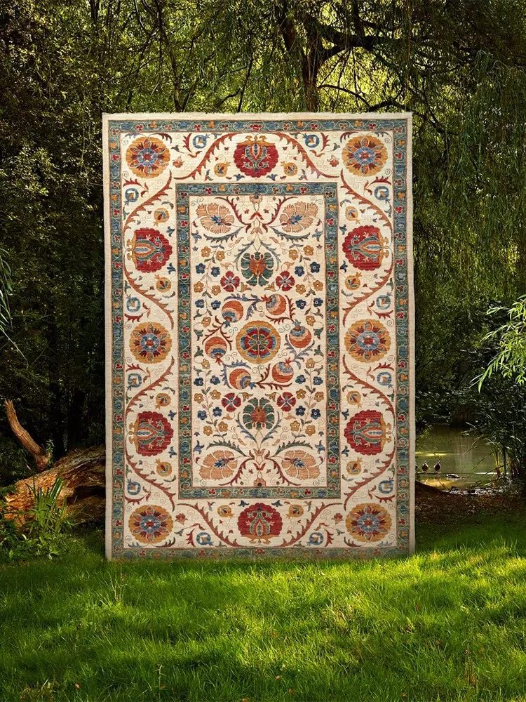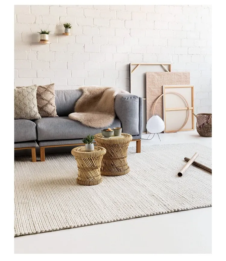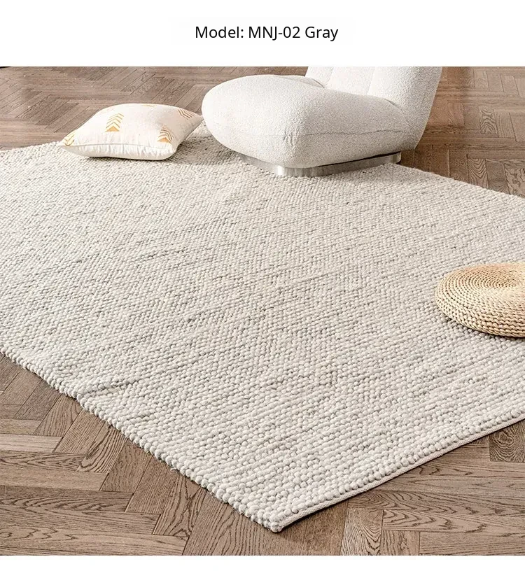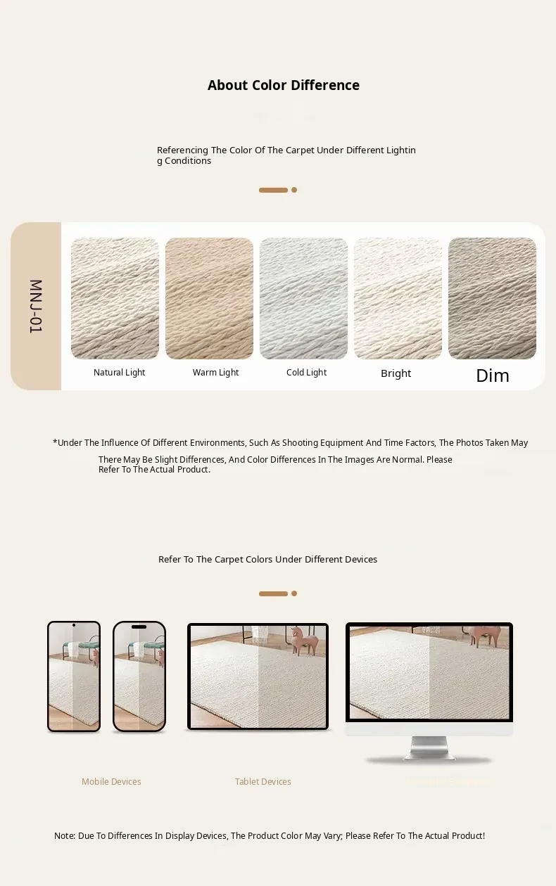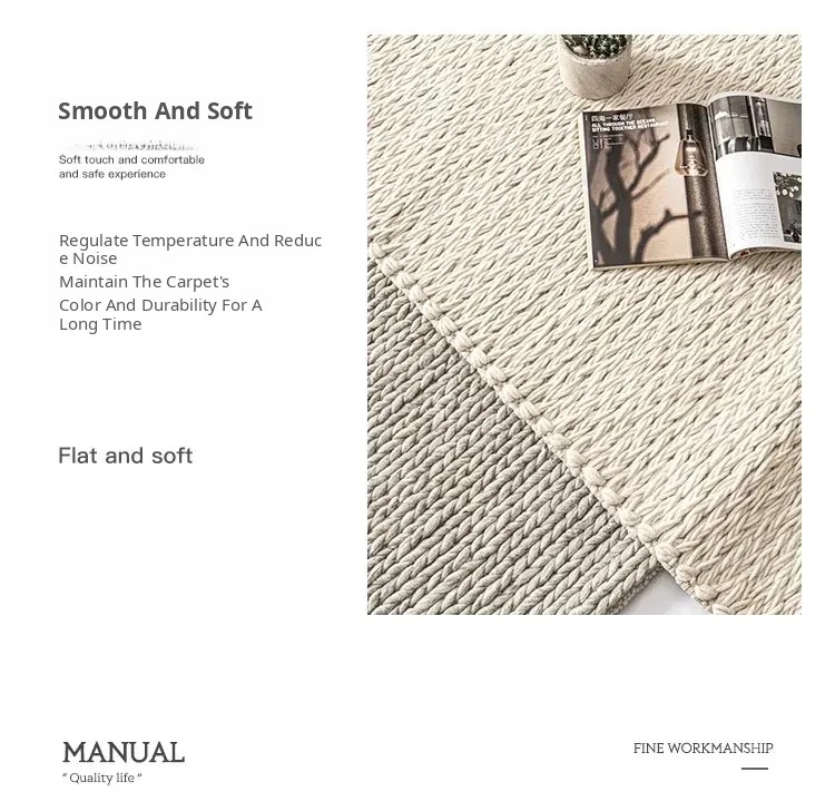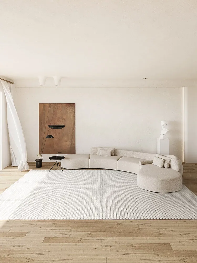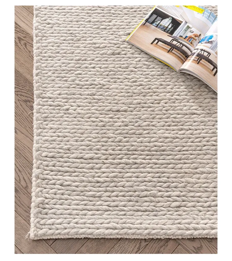 Visual Flavor Handmade Indian Wool Carpet - Luxurious Creamy Style Plush Area Rug for Bedroom - Thick Solid Color Design