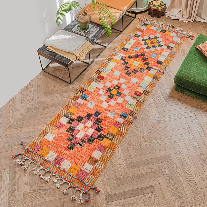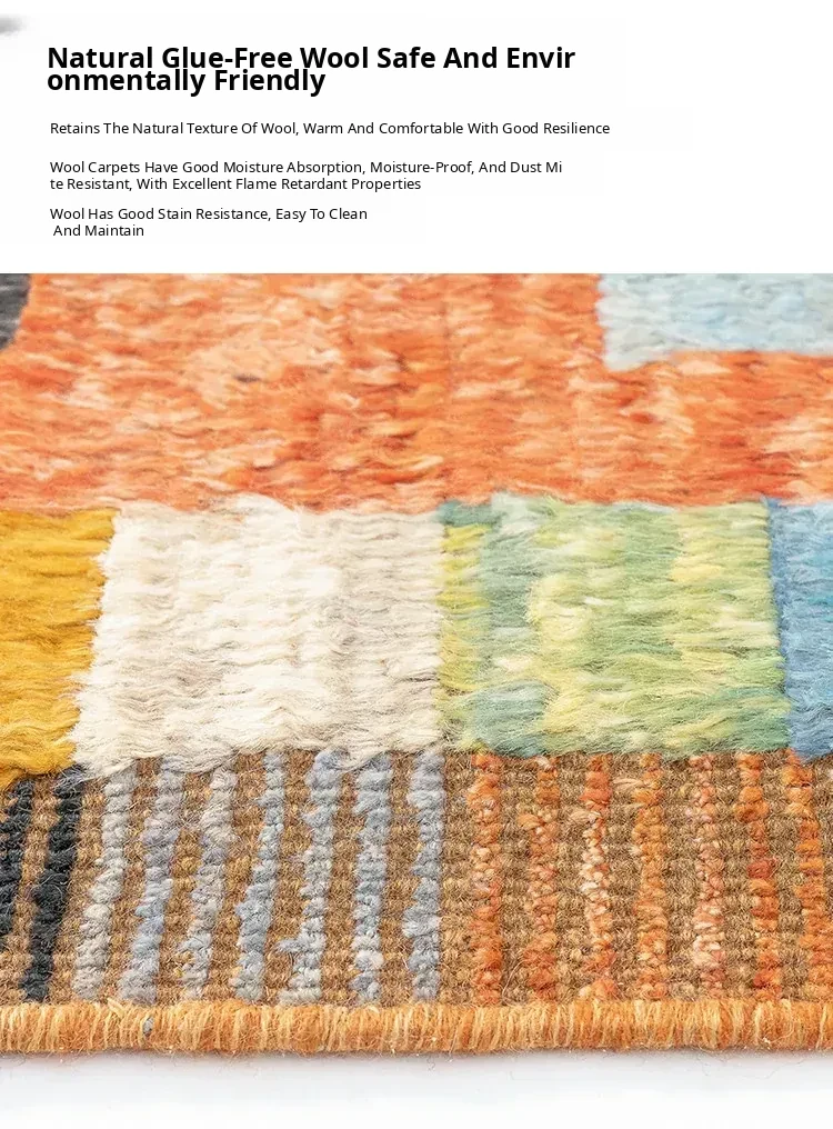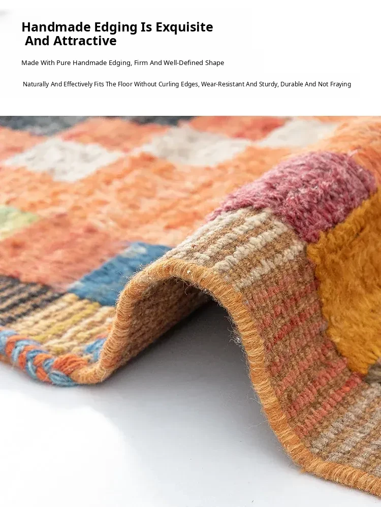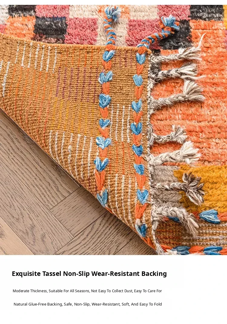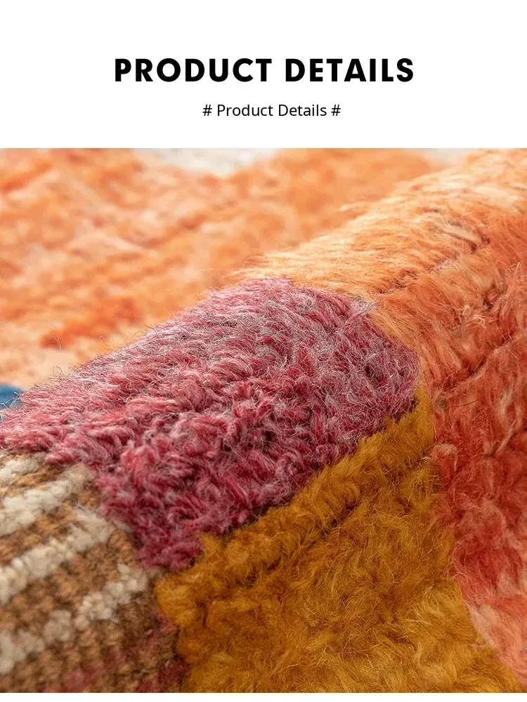 Visual Flavor: Handmade Moroccan-Style Long Wool Rug - No Glue, No Formaldehyde, Imported Afghan Sheep Wool, Perfect for Your Bedroom!