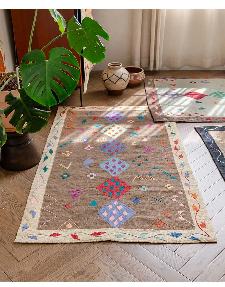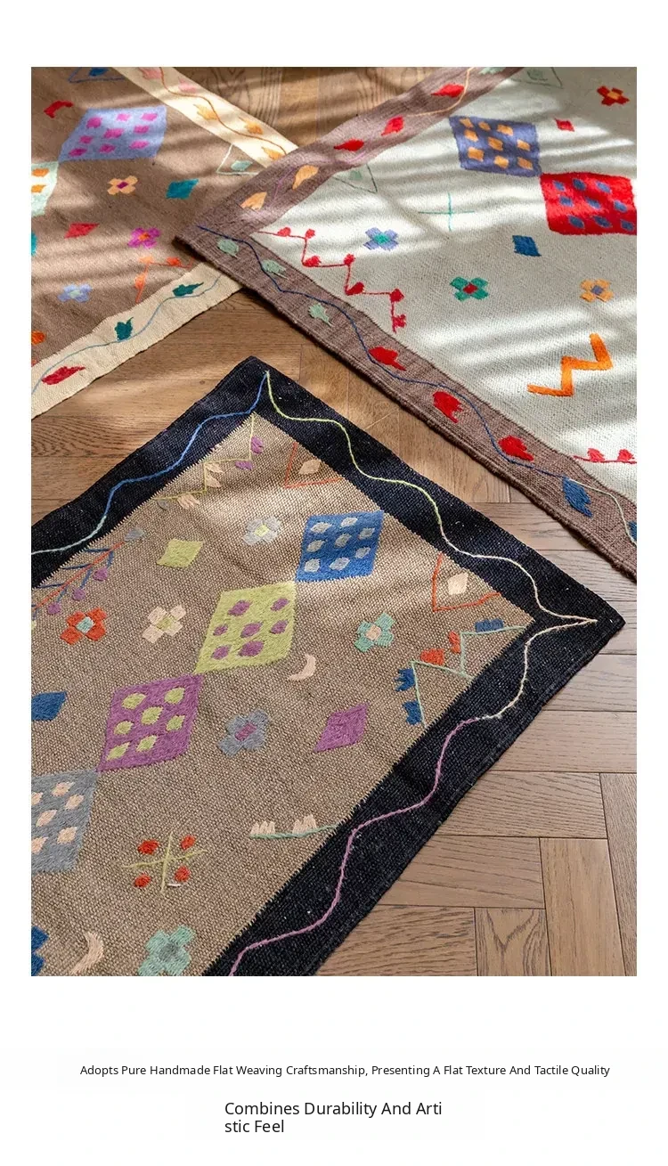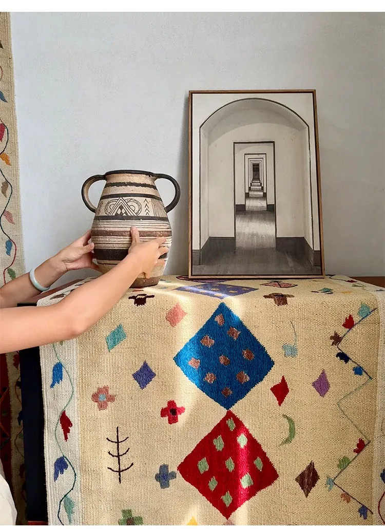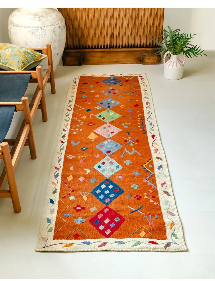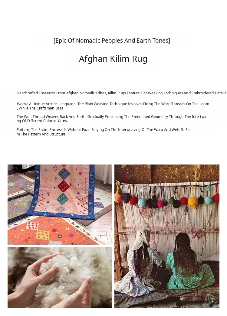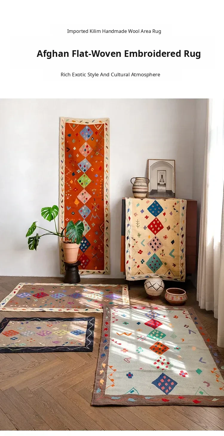 Visual Flavor: Handwoven Afghan Wool Kilim Rug - Bohemian Style Long Tapestry for Living Room Decor
