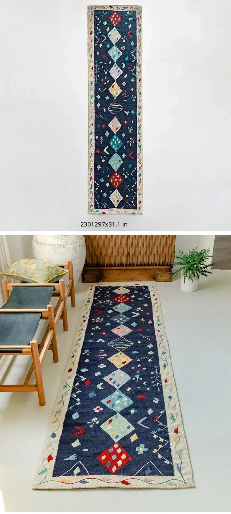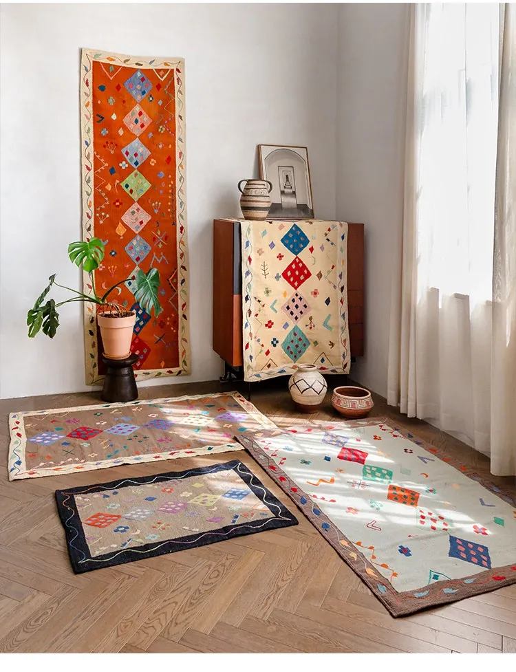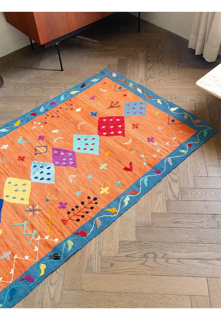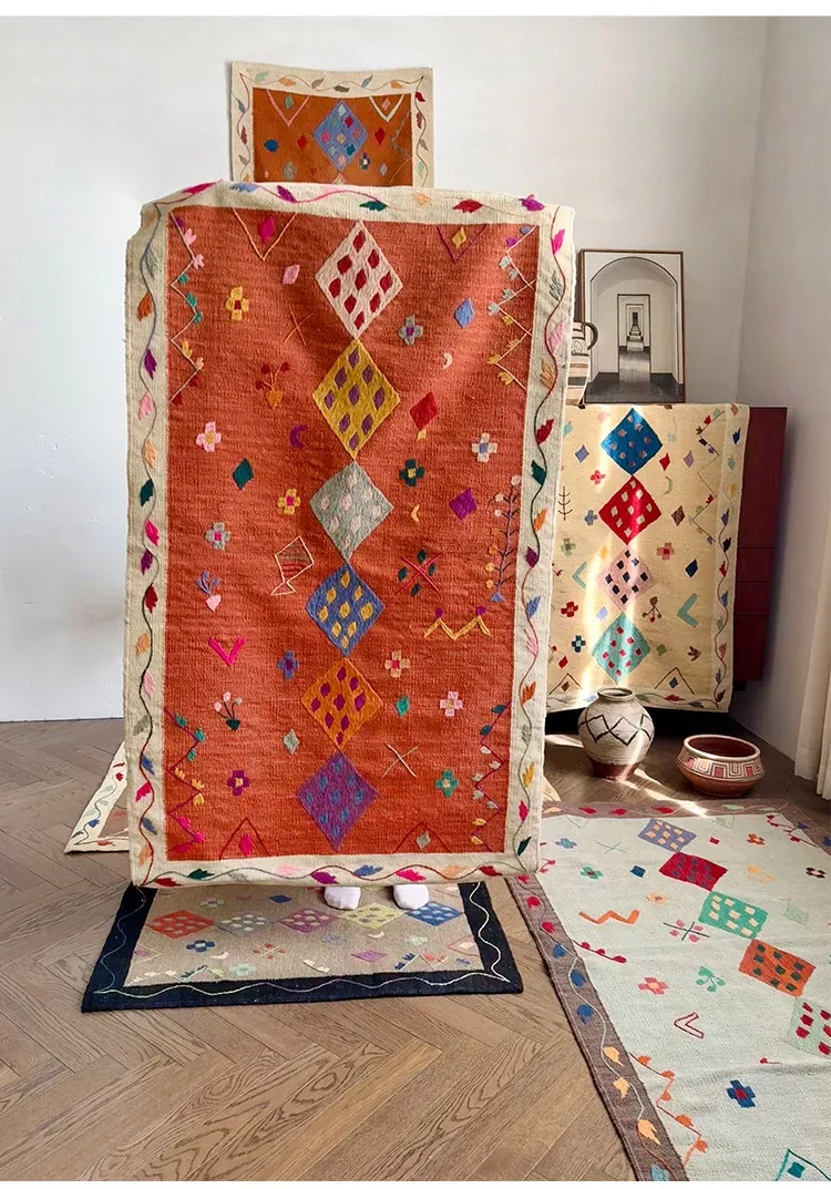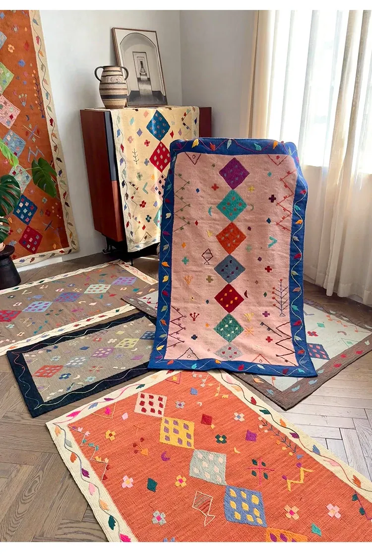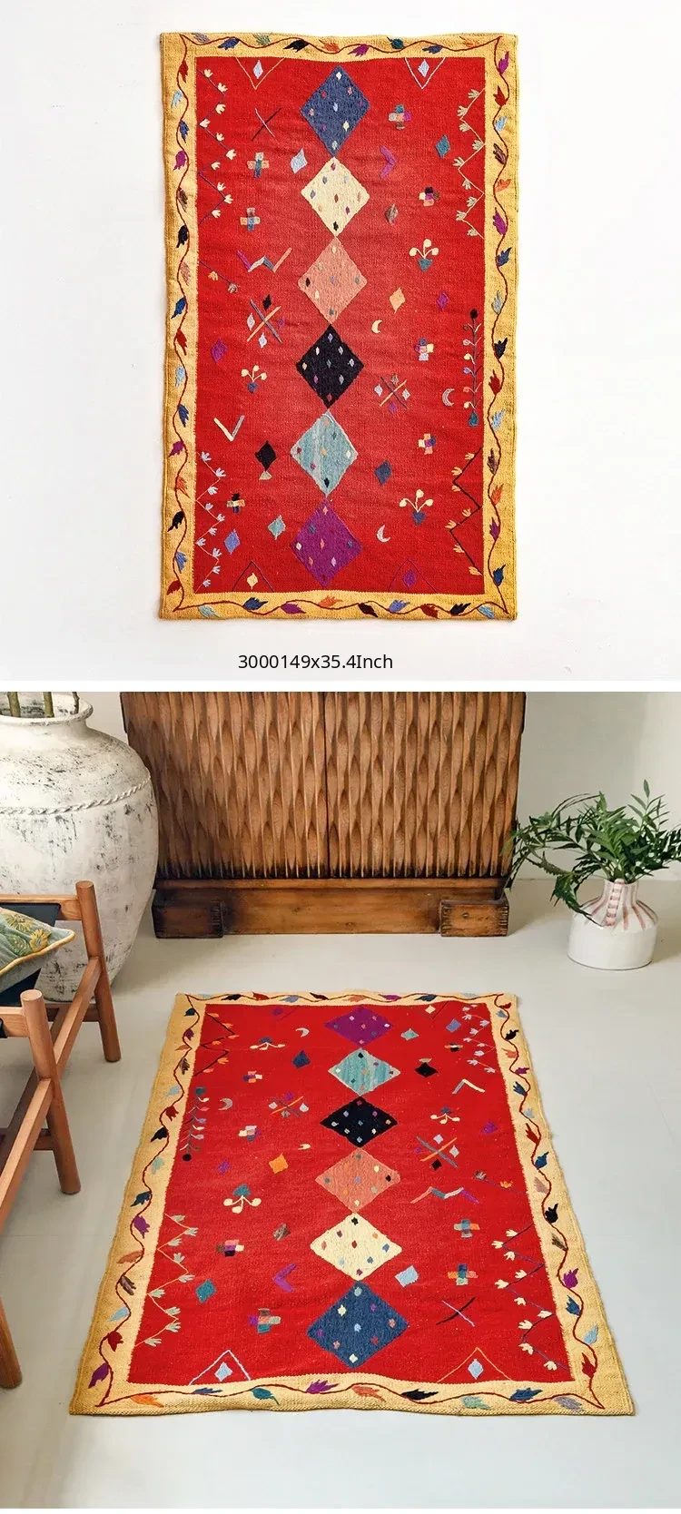 Visual Flavor: Handwoven Afghan Wool Kilim Rug - Bohemian Style Long Tapestry for Living Room Decor