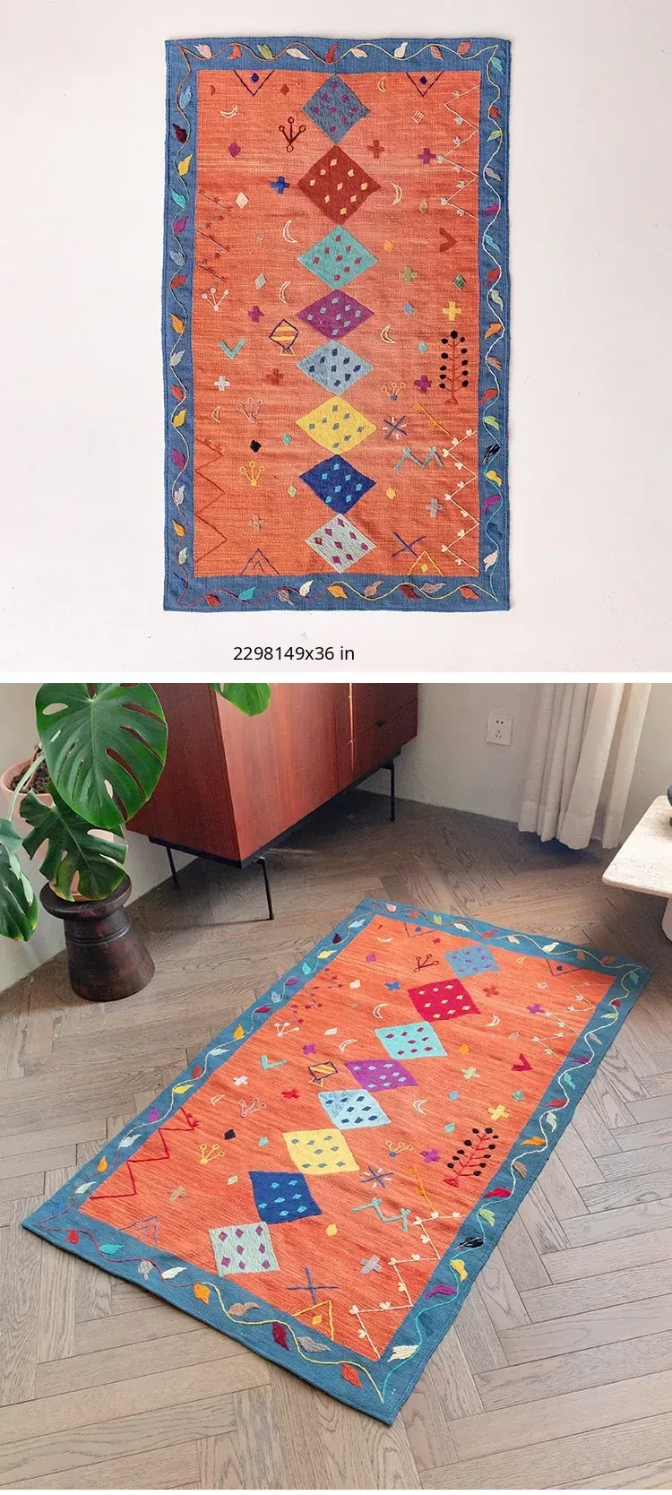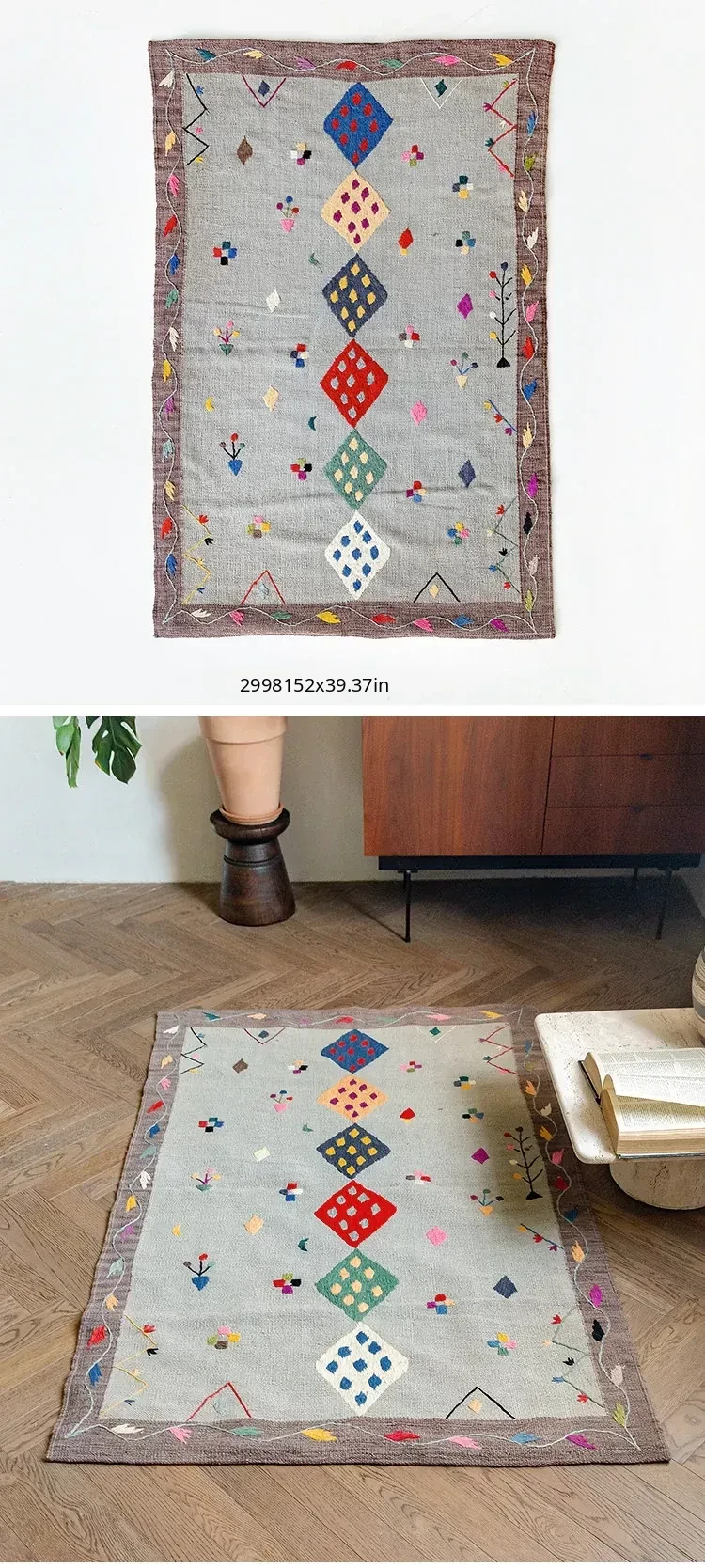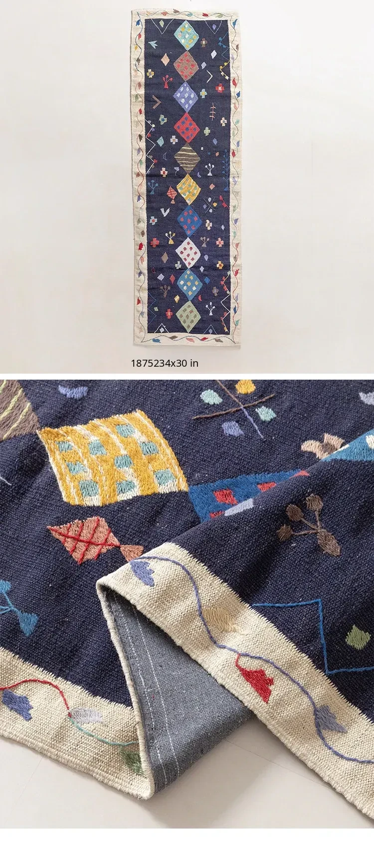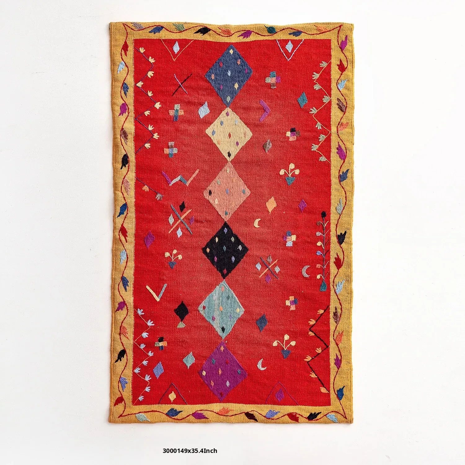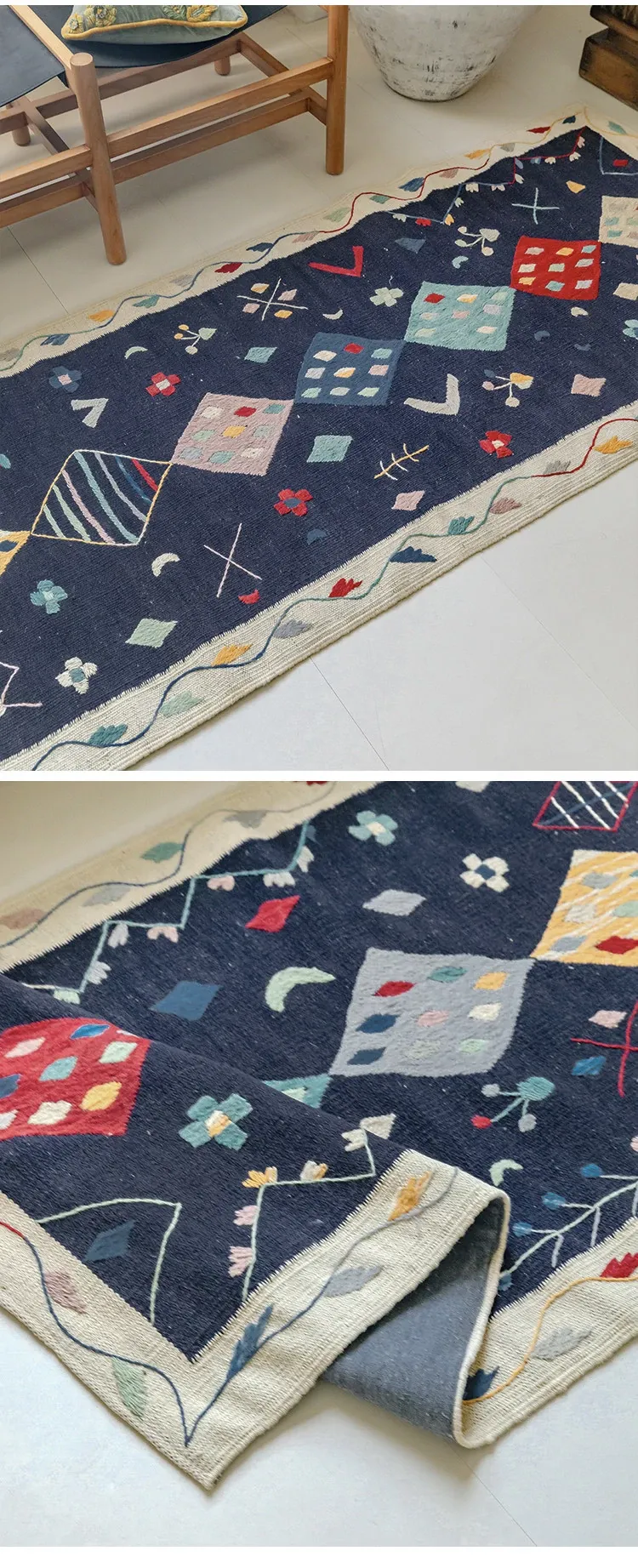 Visual Flavor: Handwoven Afghan Wool Kilim Rug - Bohemian Style Long Tapestry for Living Room Decor