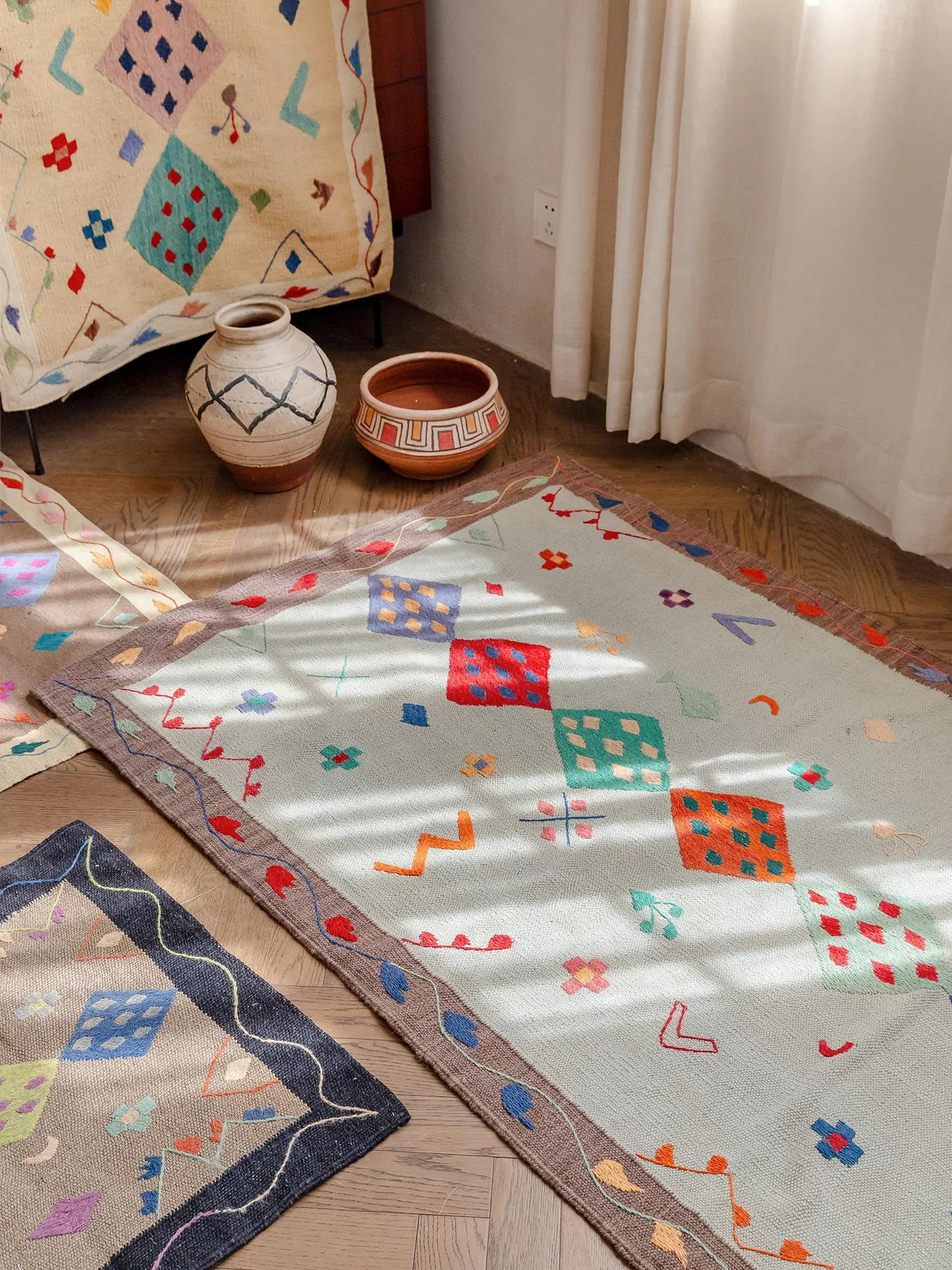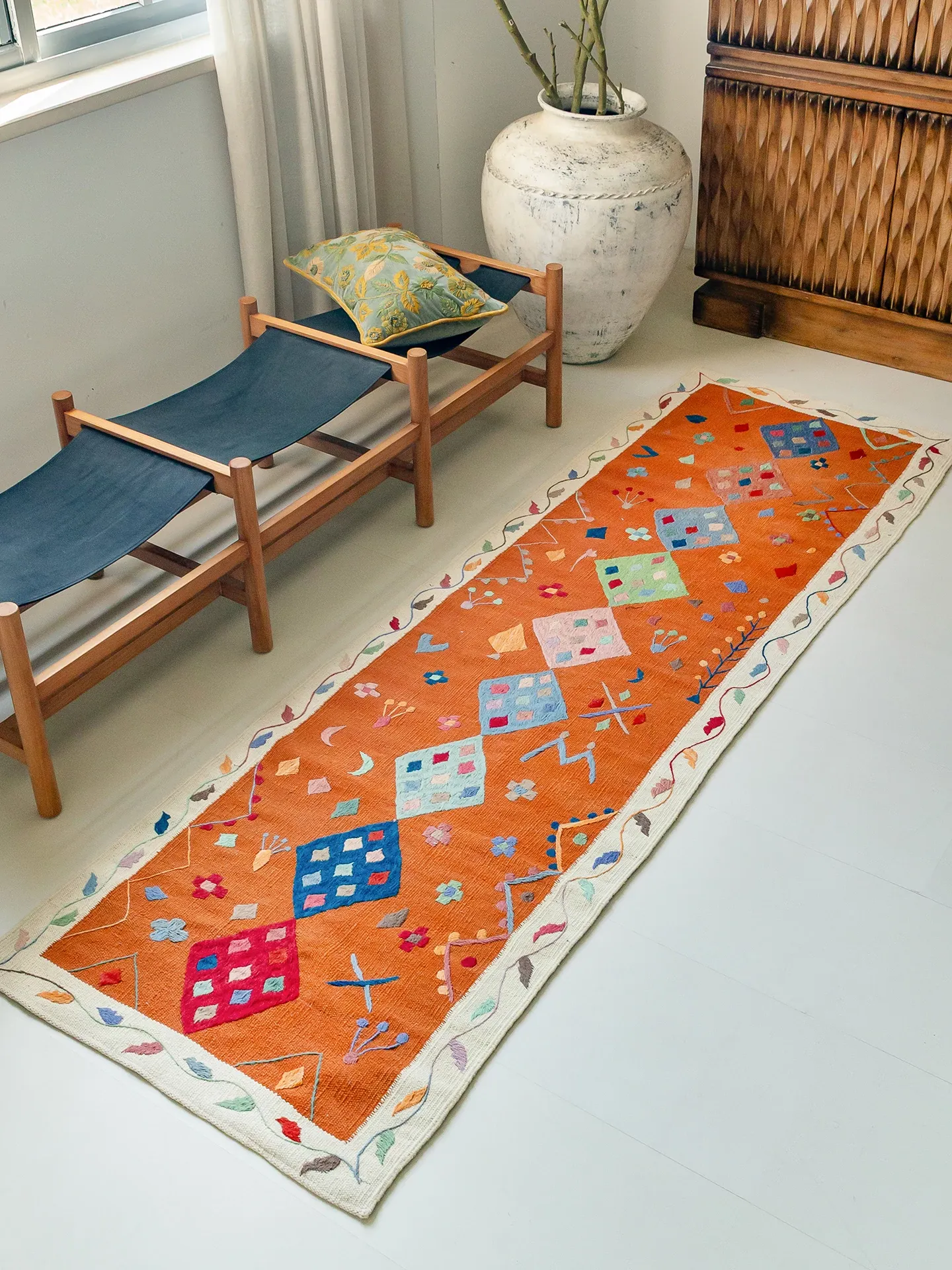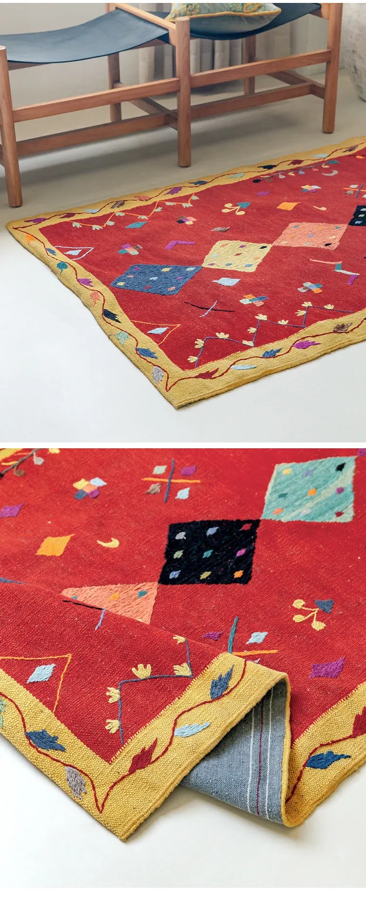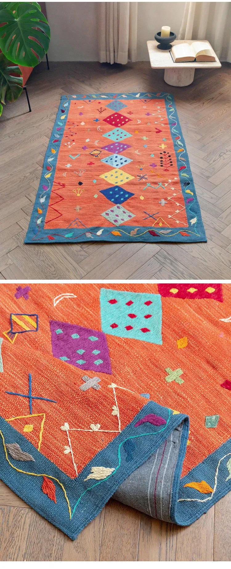 Visual Flavor: Handwoven Afghan Wool Kilim Rug - Bohemian Style Long Tapestry for Living Room Decor