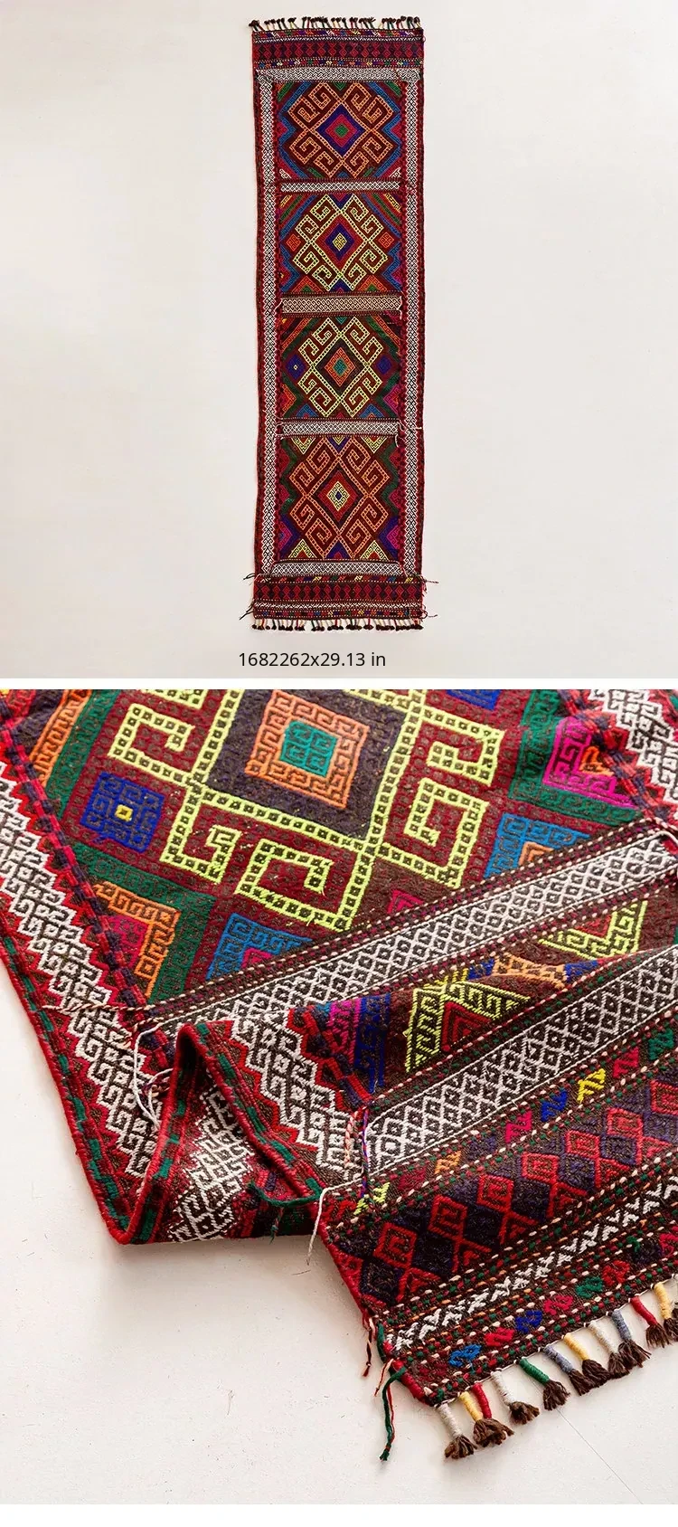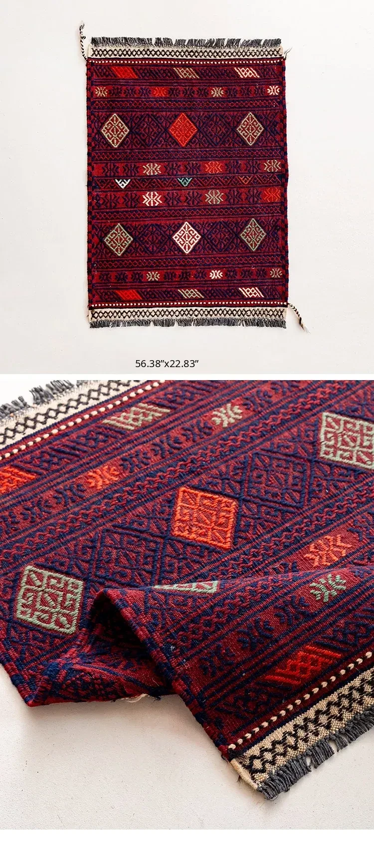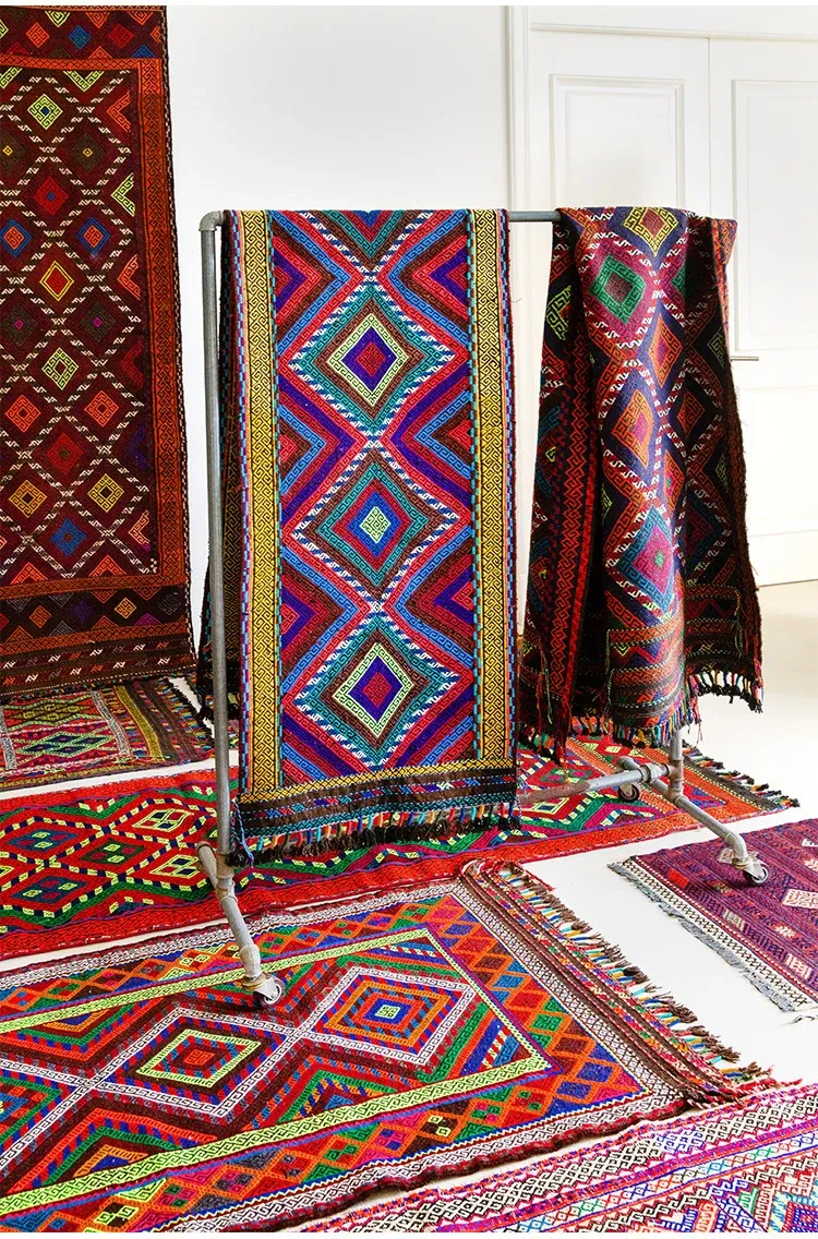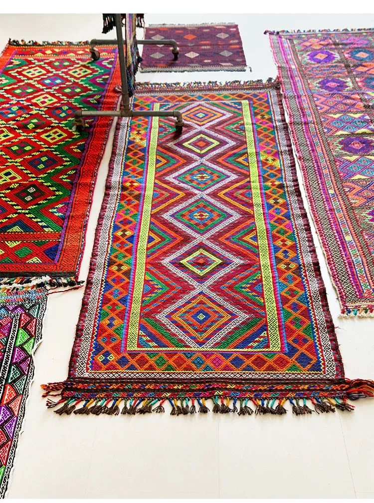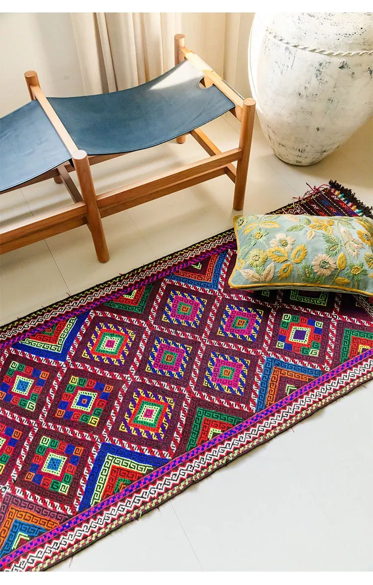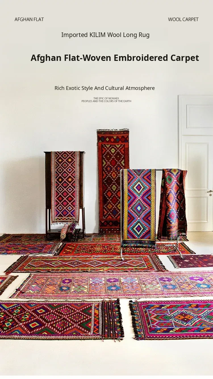 Visual Flavor: Handwoven Afghan Wool Red Kilim Bohemian Area Rug - Perfect for Living Room and Hallway Decor