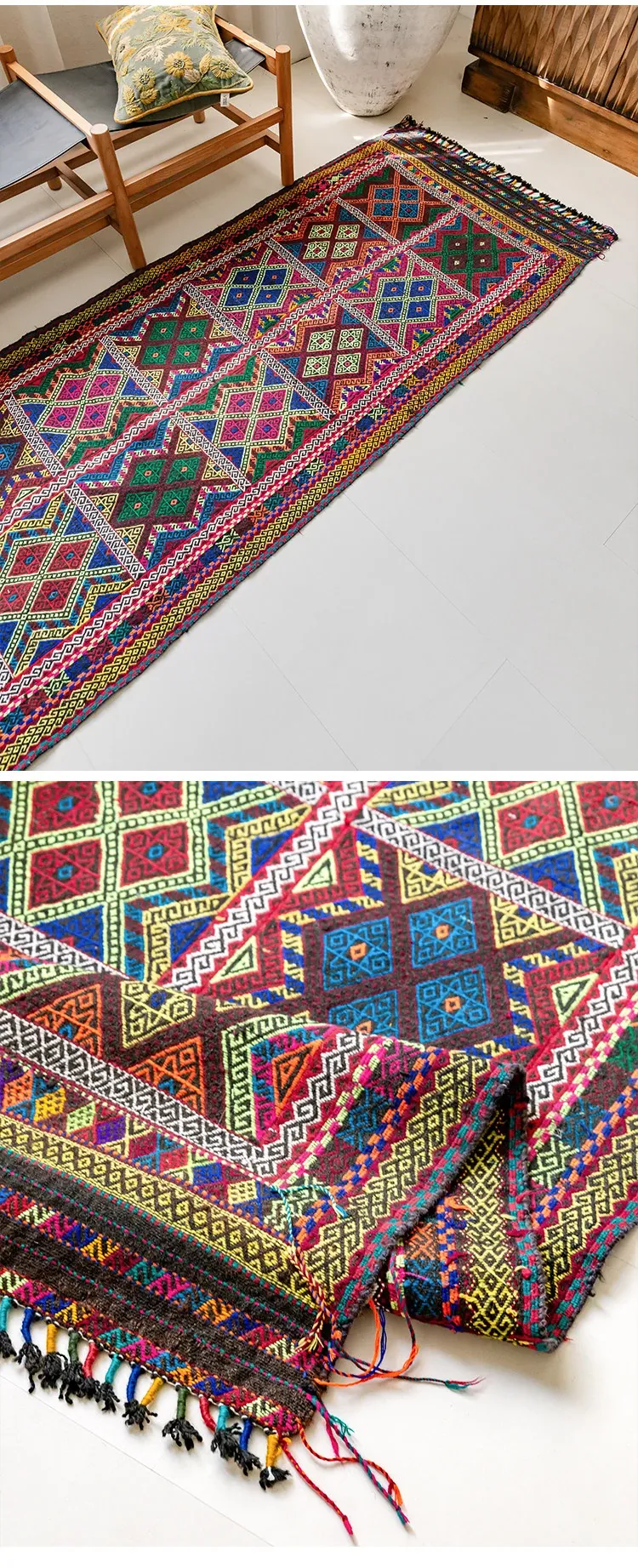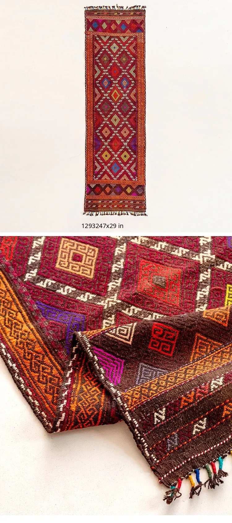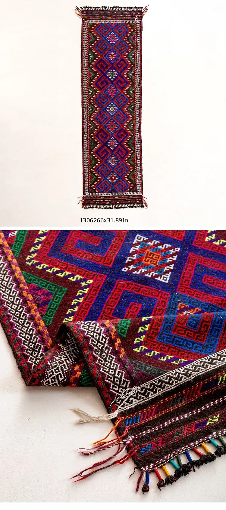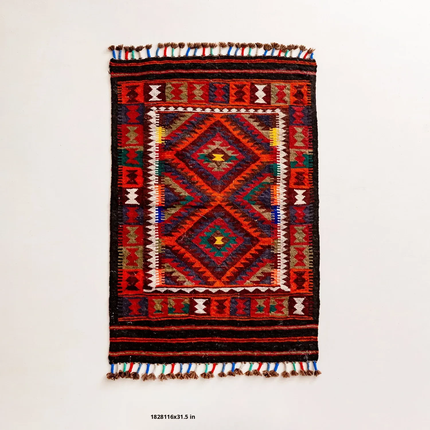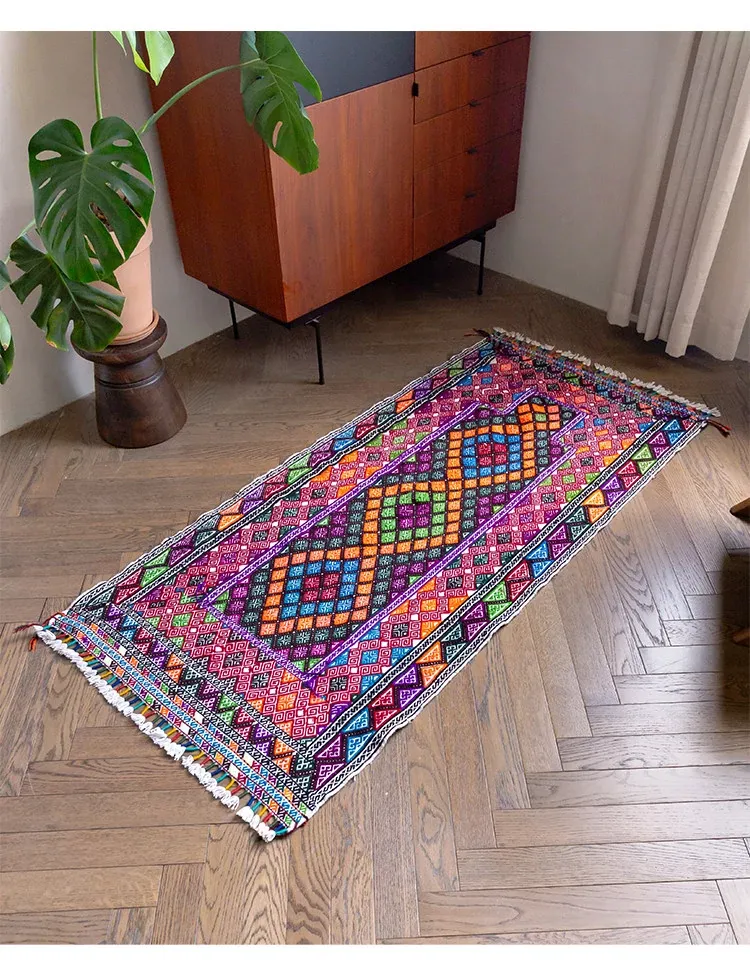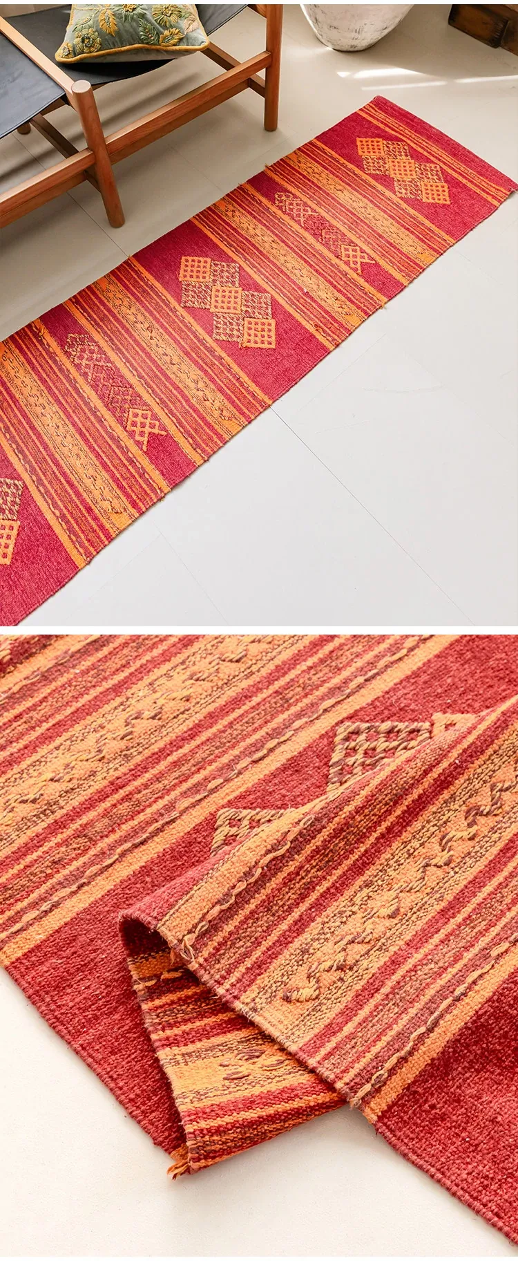 Visual Flavor: Handwoven Afghan Wool Red Kilim Bohemian Area Rug - Perfect for Living Room and Hallway Decor