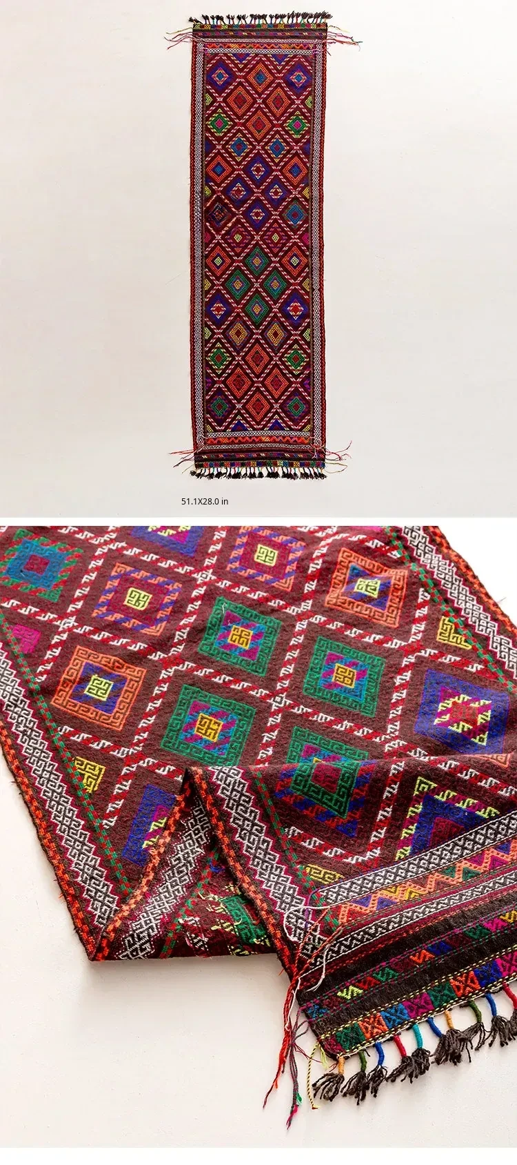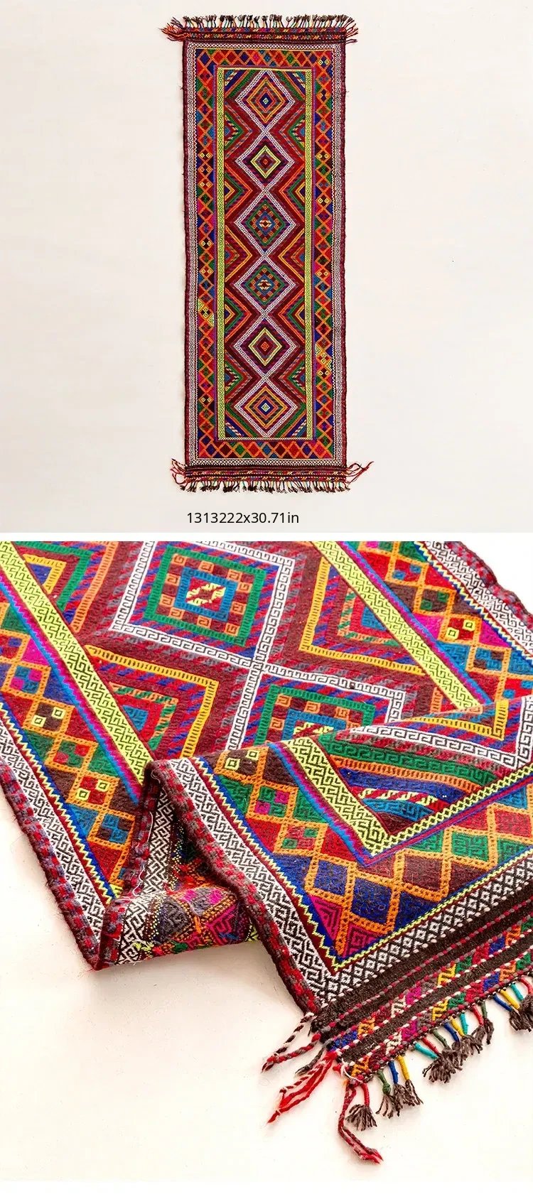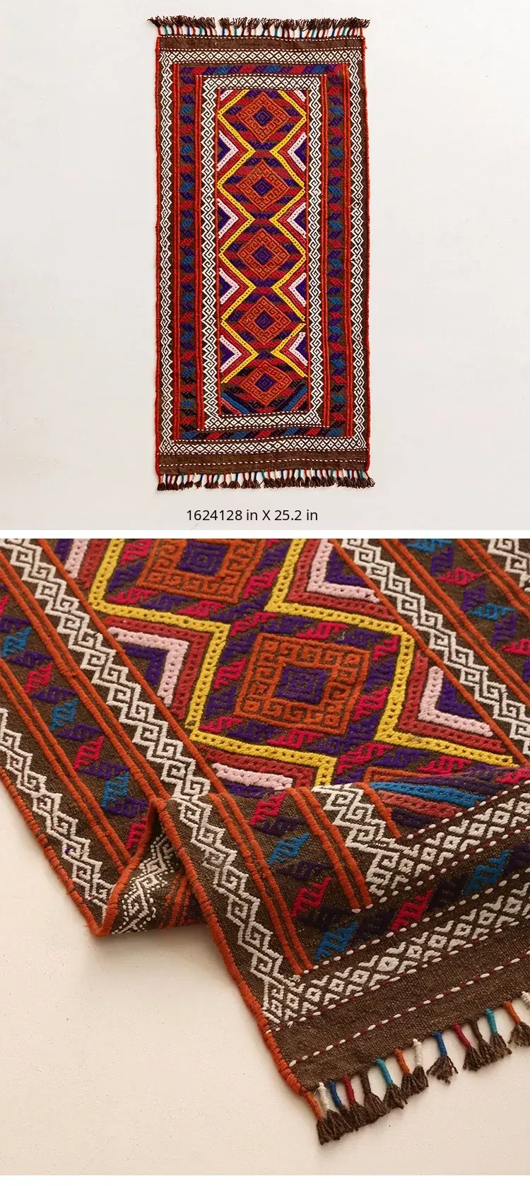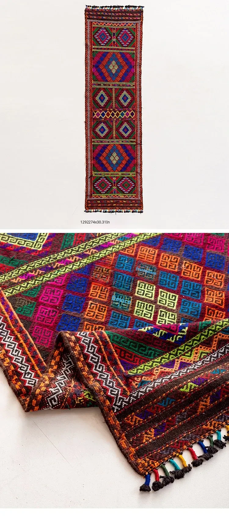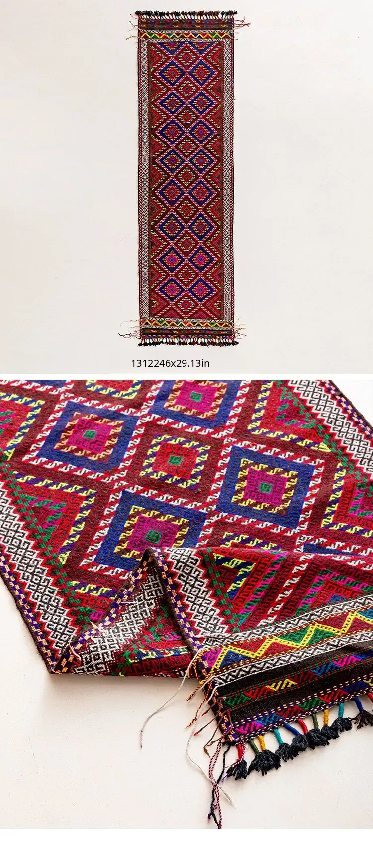Visual Flavor: Handwoven Afghan Wool Red Kilim Bohemian Area Rug - Perfect for Living Room and Hallway Decor