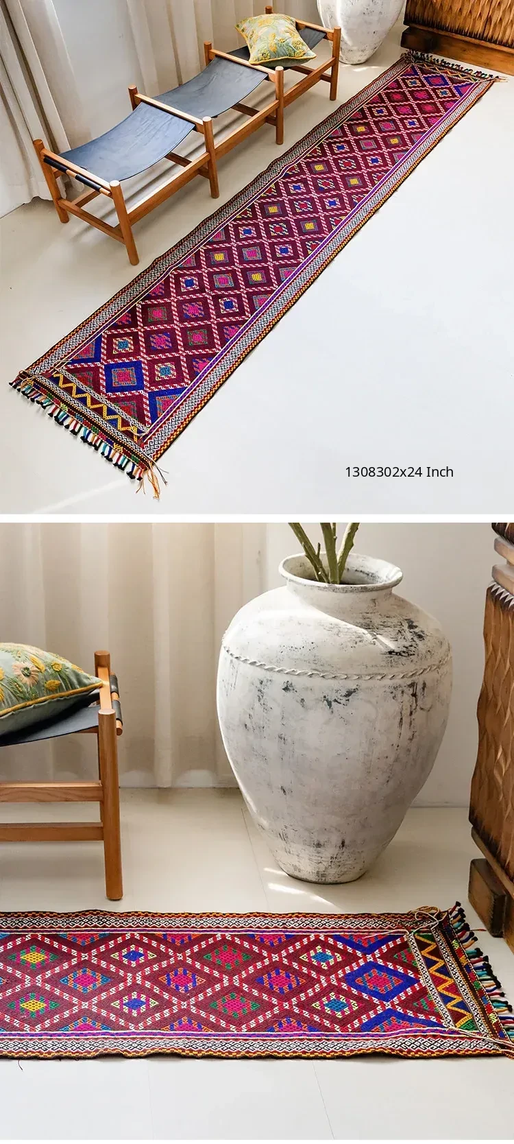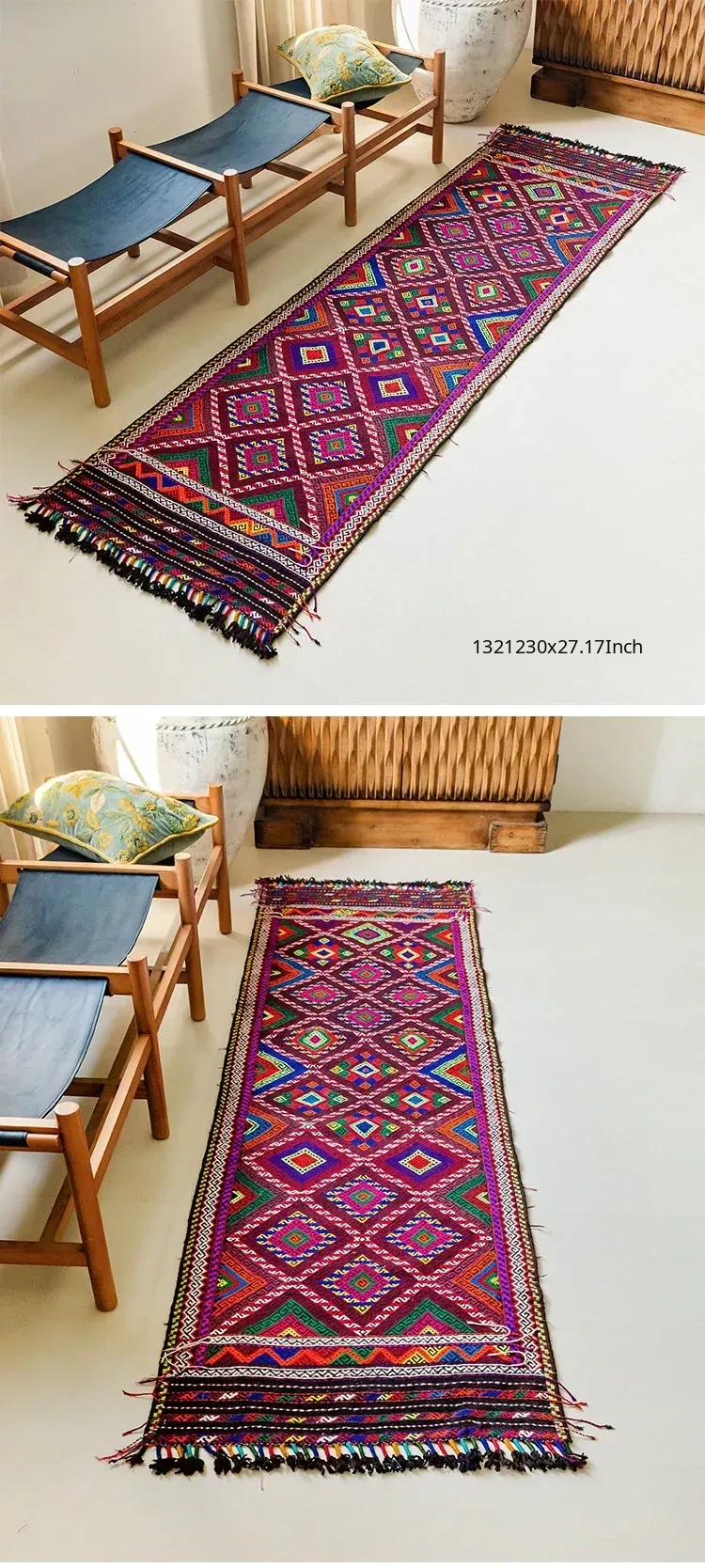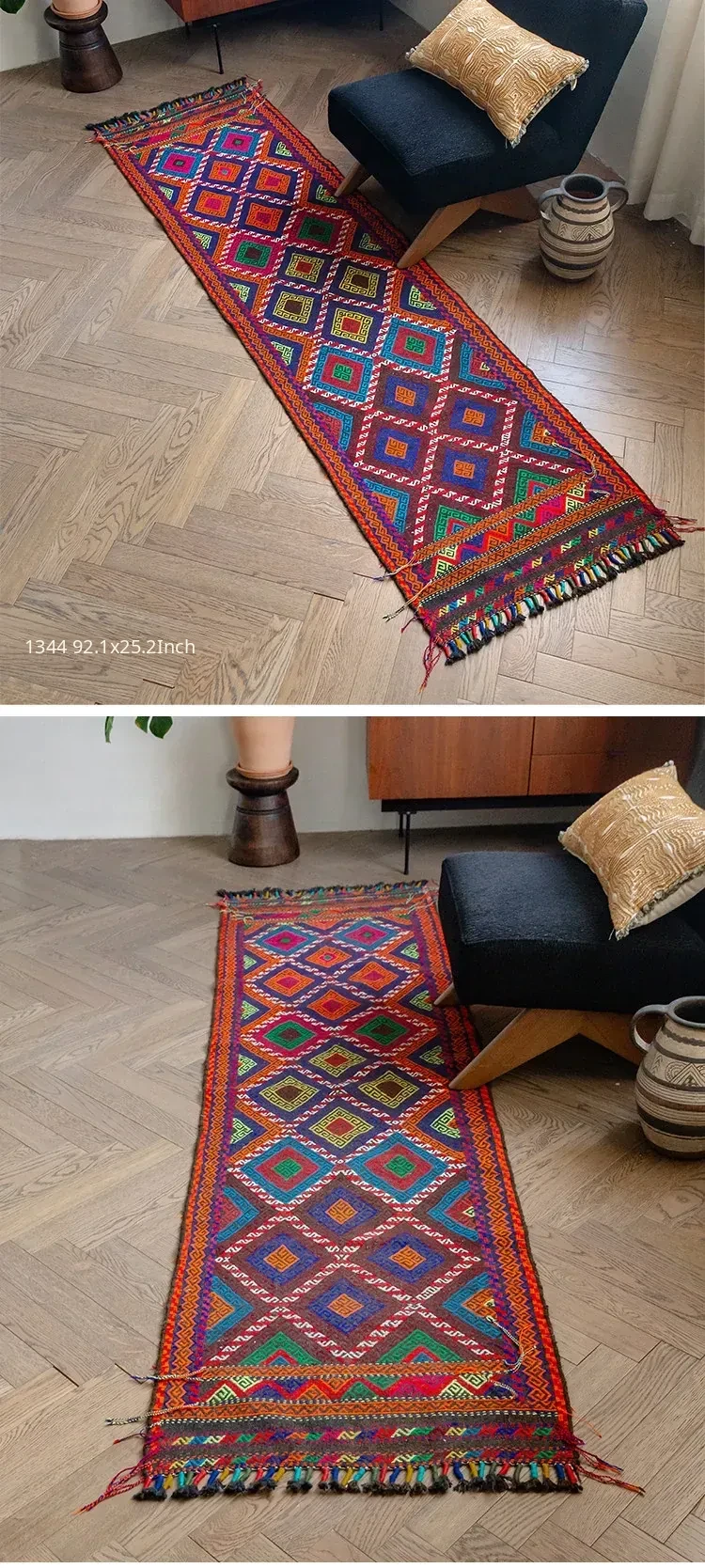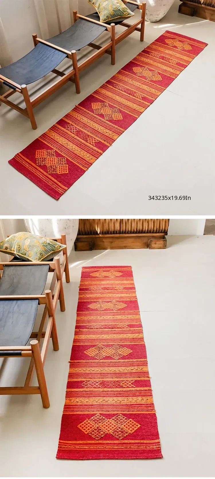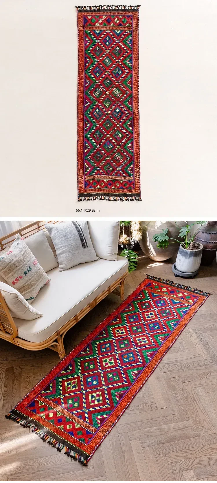 Visual Flavor: Handwoven Afghan Wool Red Kilim Bohemian Area Rug - Perfect for Living Room and Hallway Decor