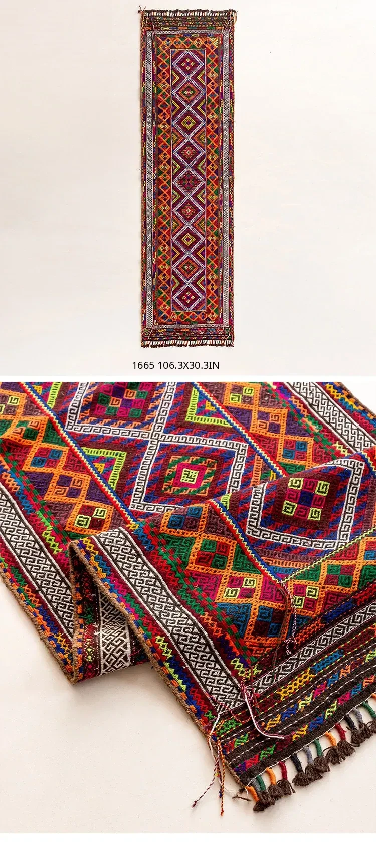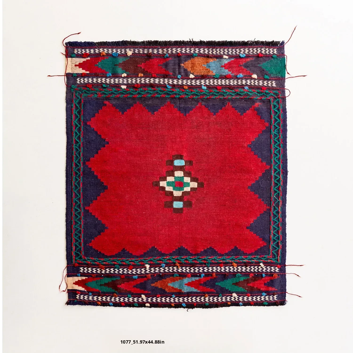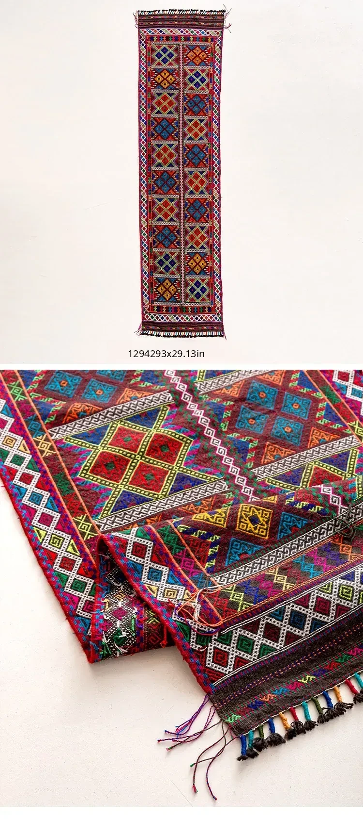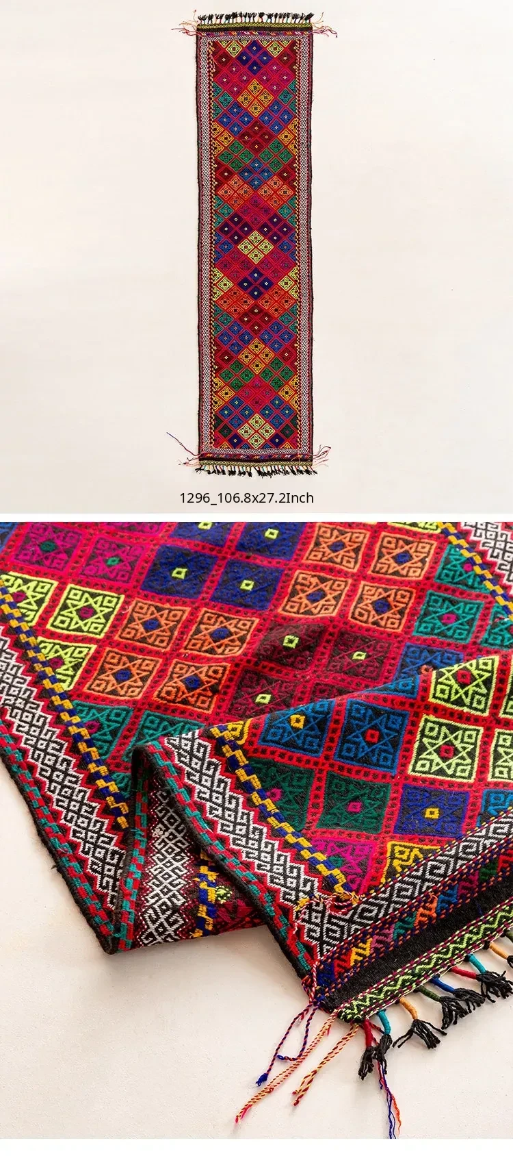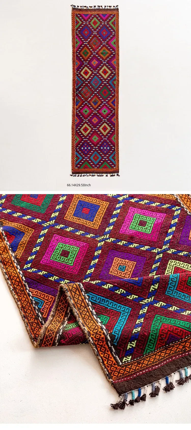Visual Flavor: Handwoven Afghan Wool Red Kilim Bohemian Area Rug - Perfect for Living Room and Hallway Decor
