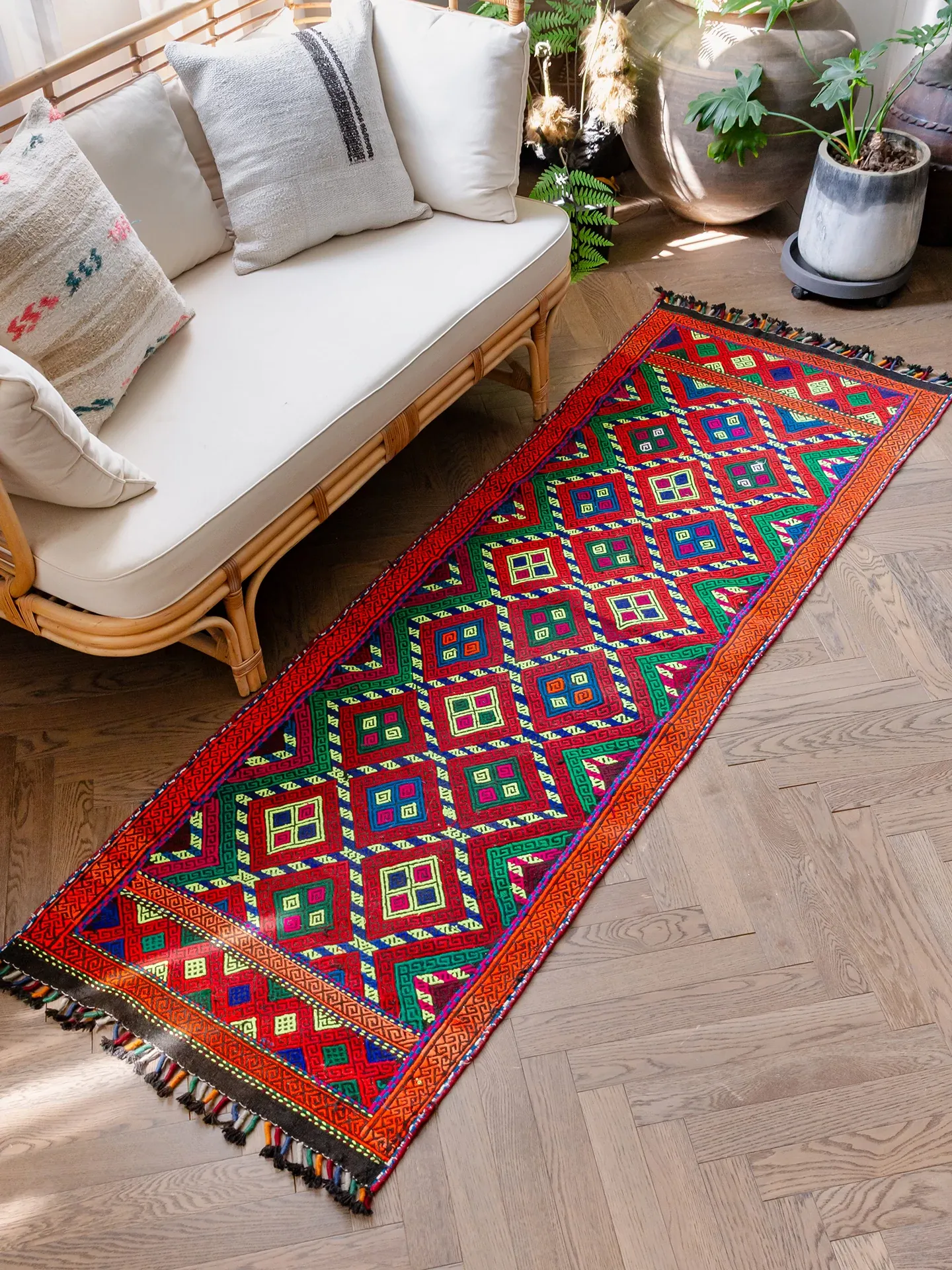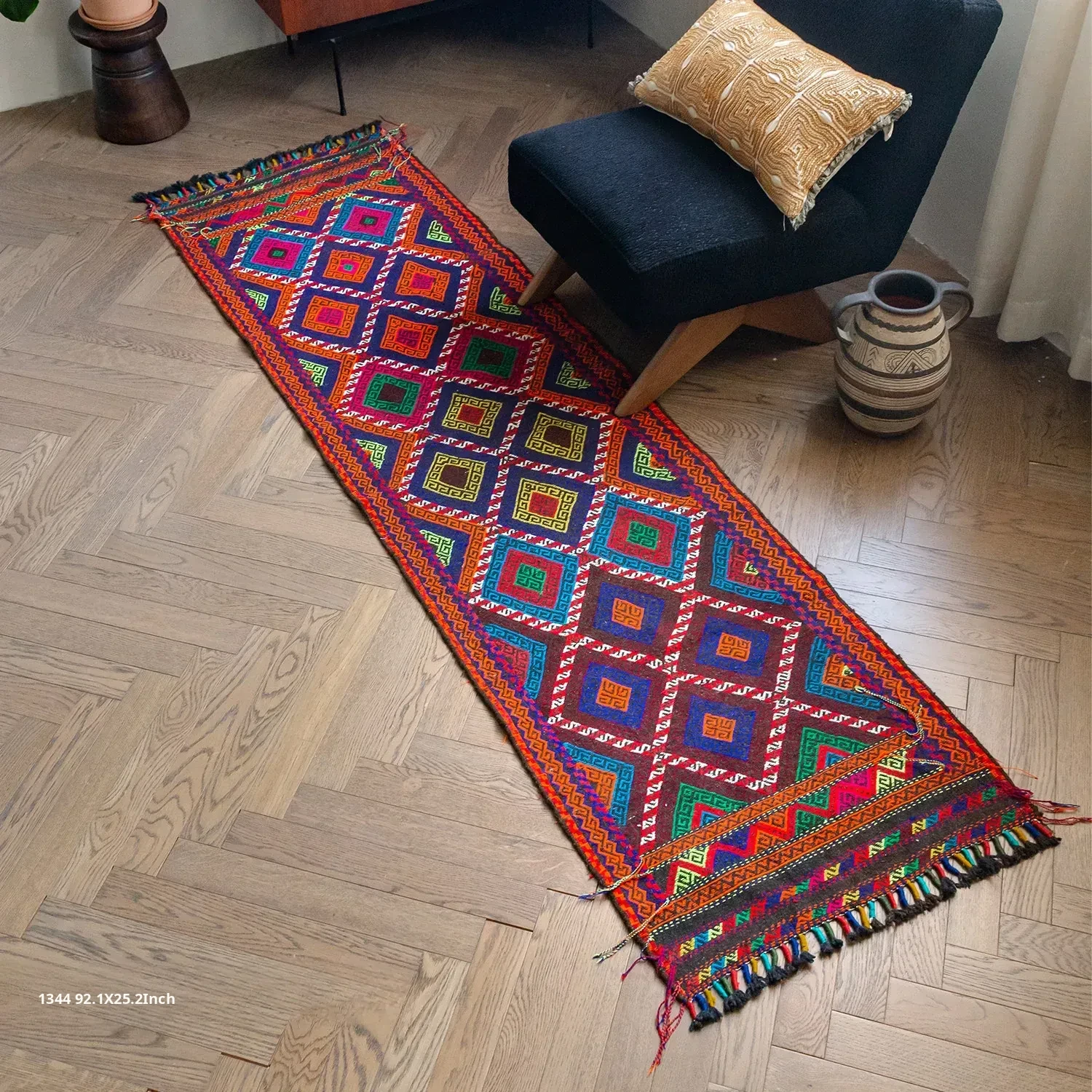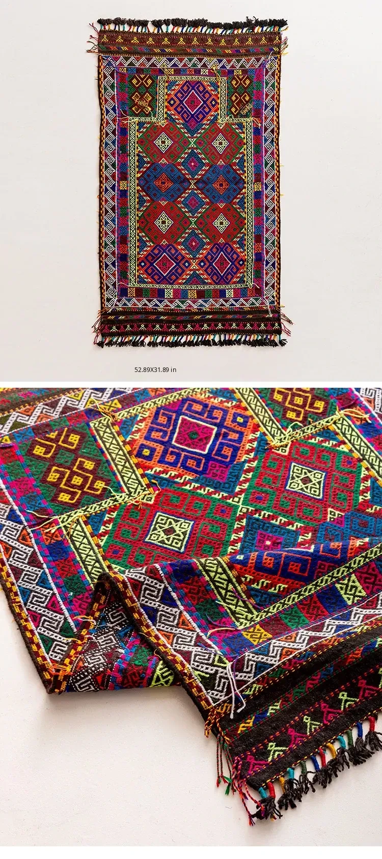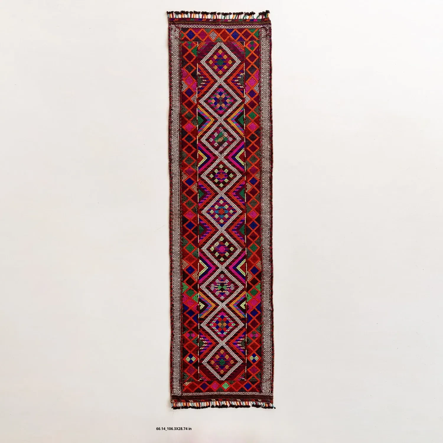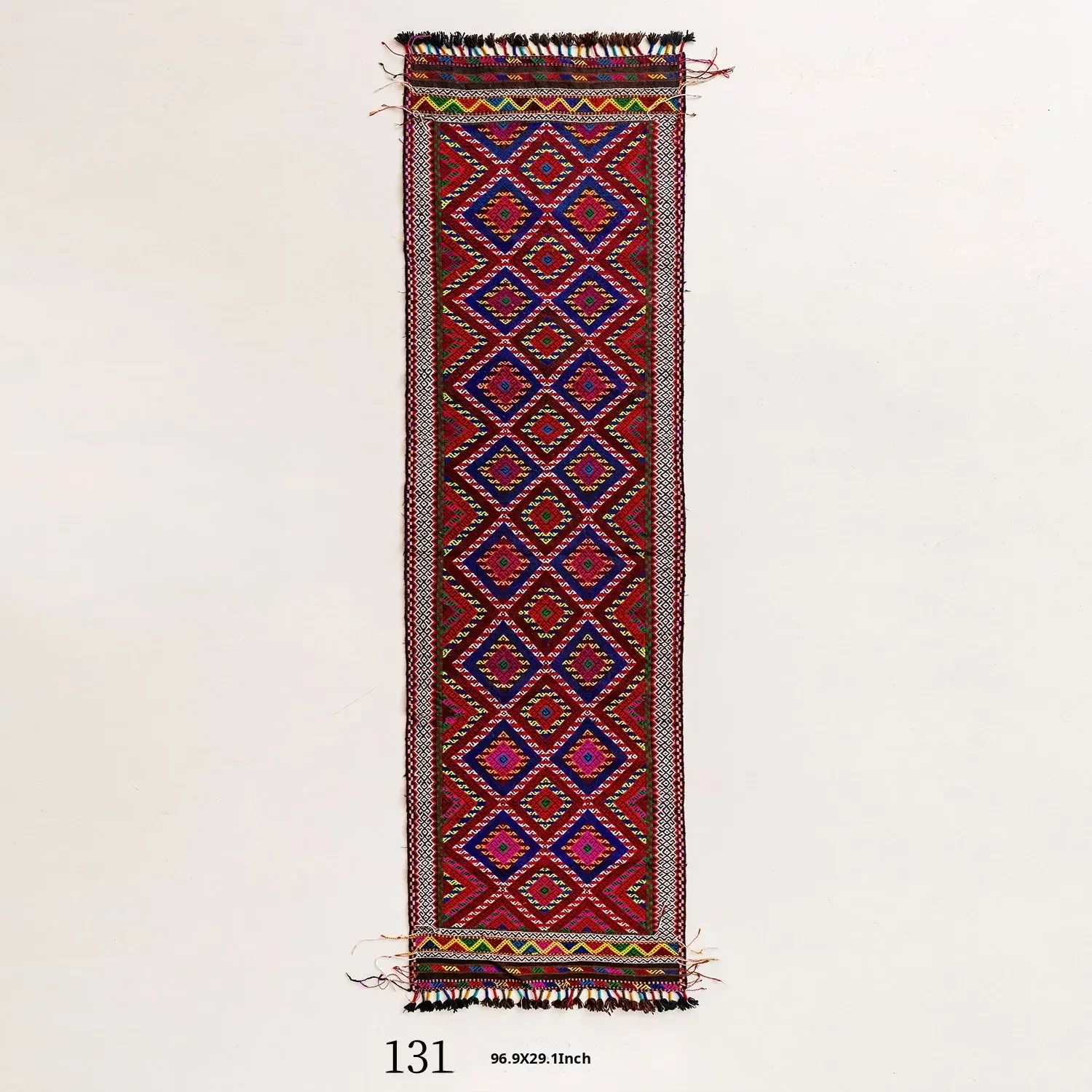 Visual Flavor: Handwoven Afghan Wool Red Kilim Bohemian Area Rug - Perfect for Living Room and Hallway Decor