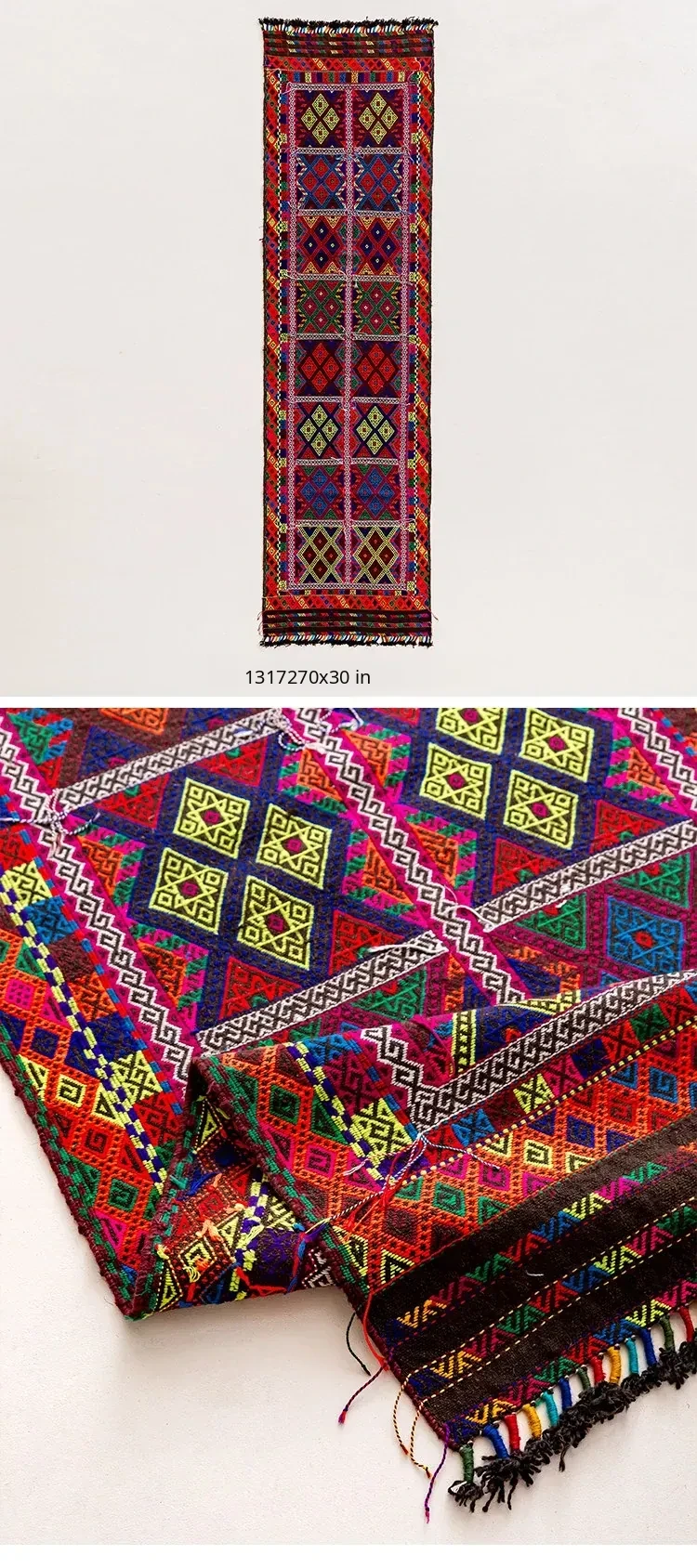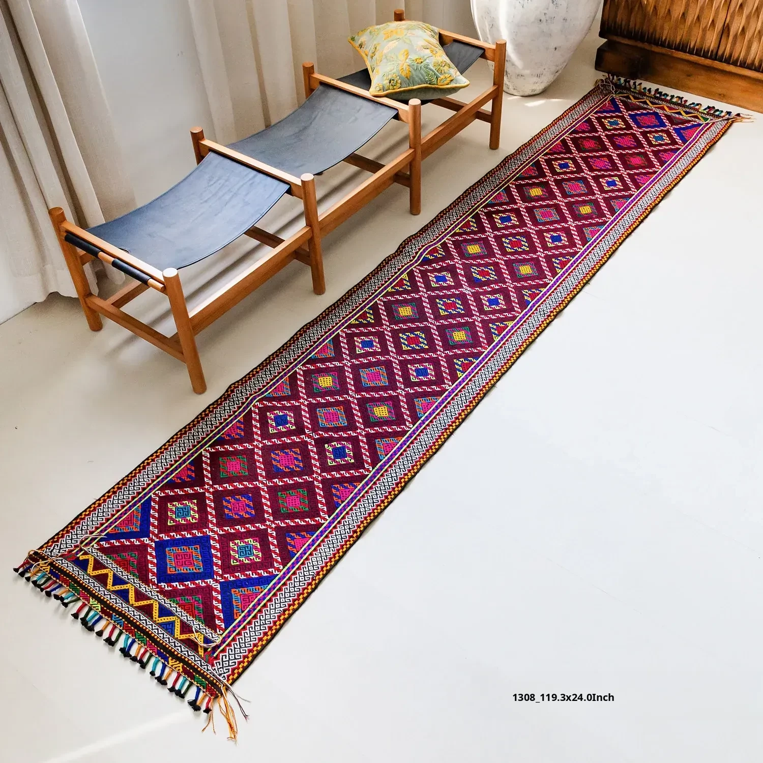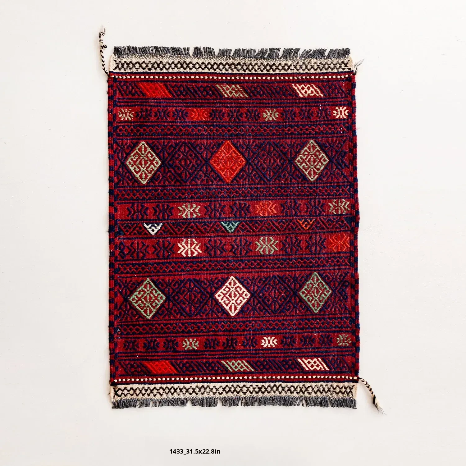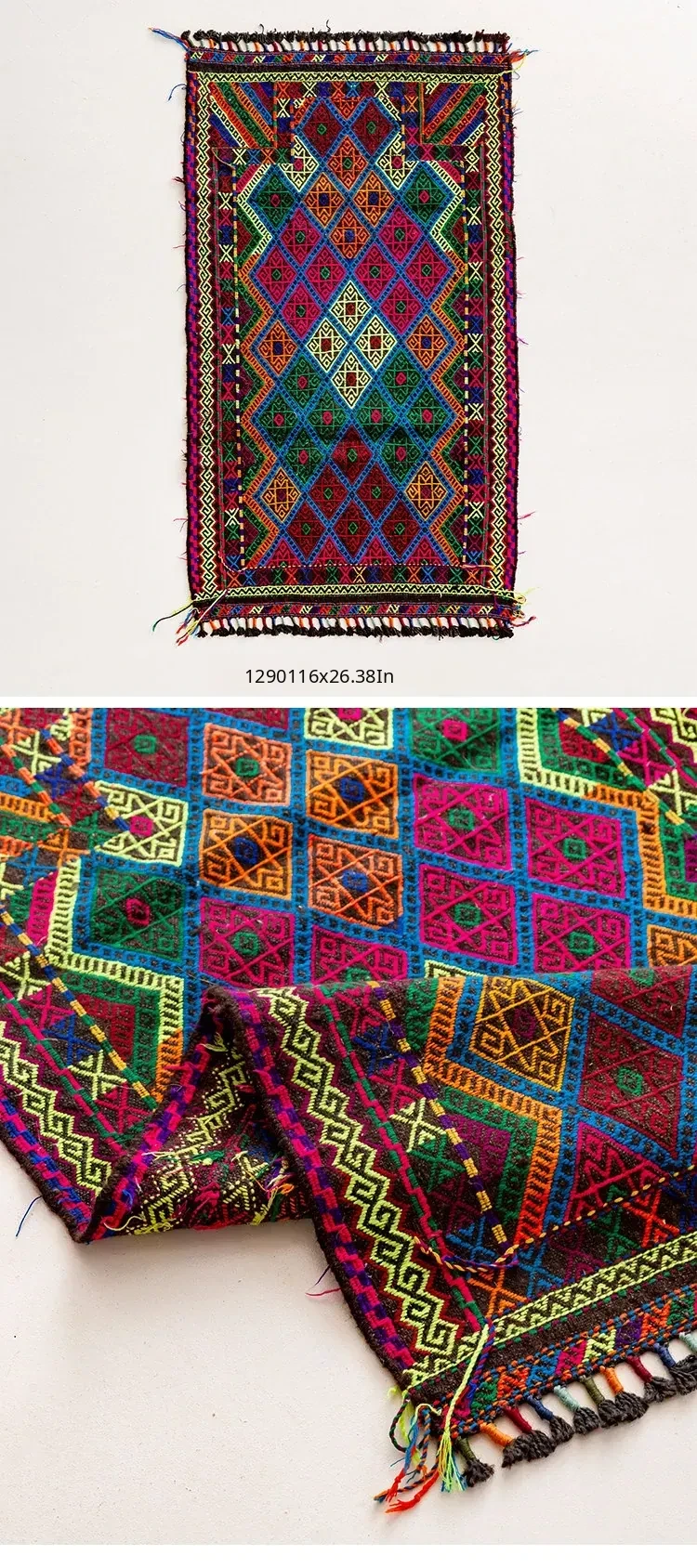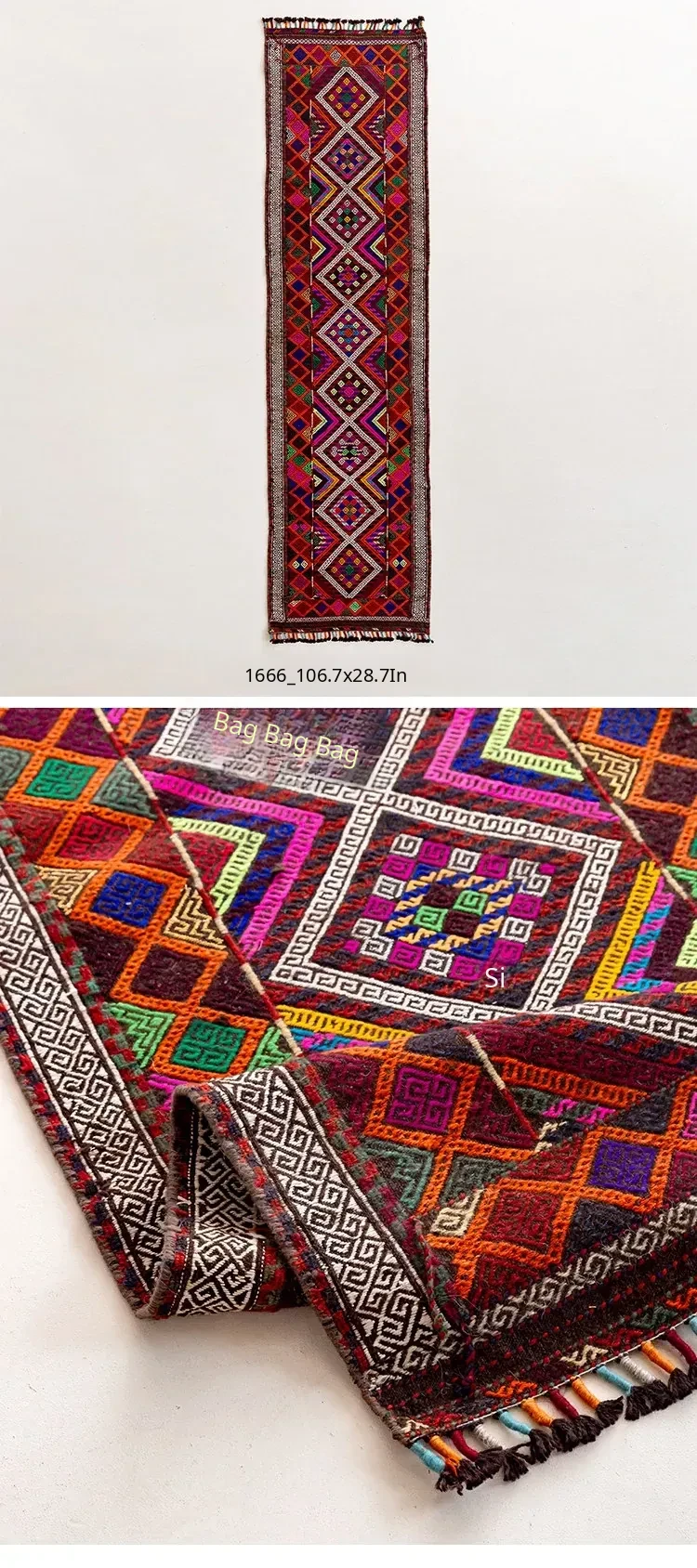 Visual Flavor: Handwoven Afghan Wool Red Kilim Bohemian Area Rug - Perfect for Living Room and Hallway Decor