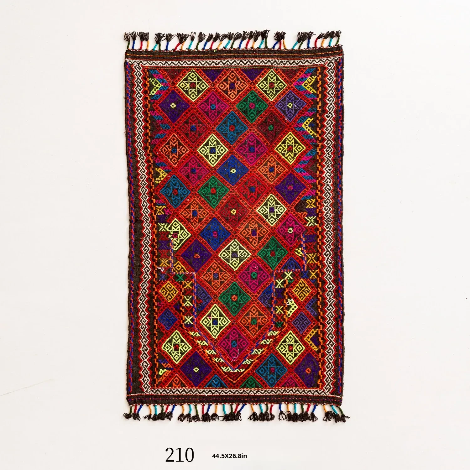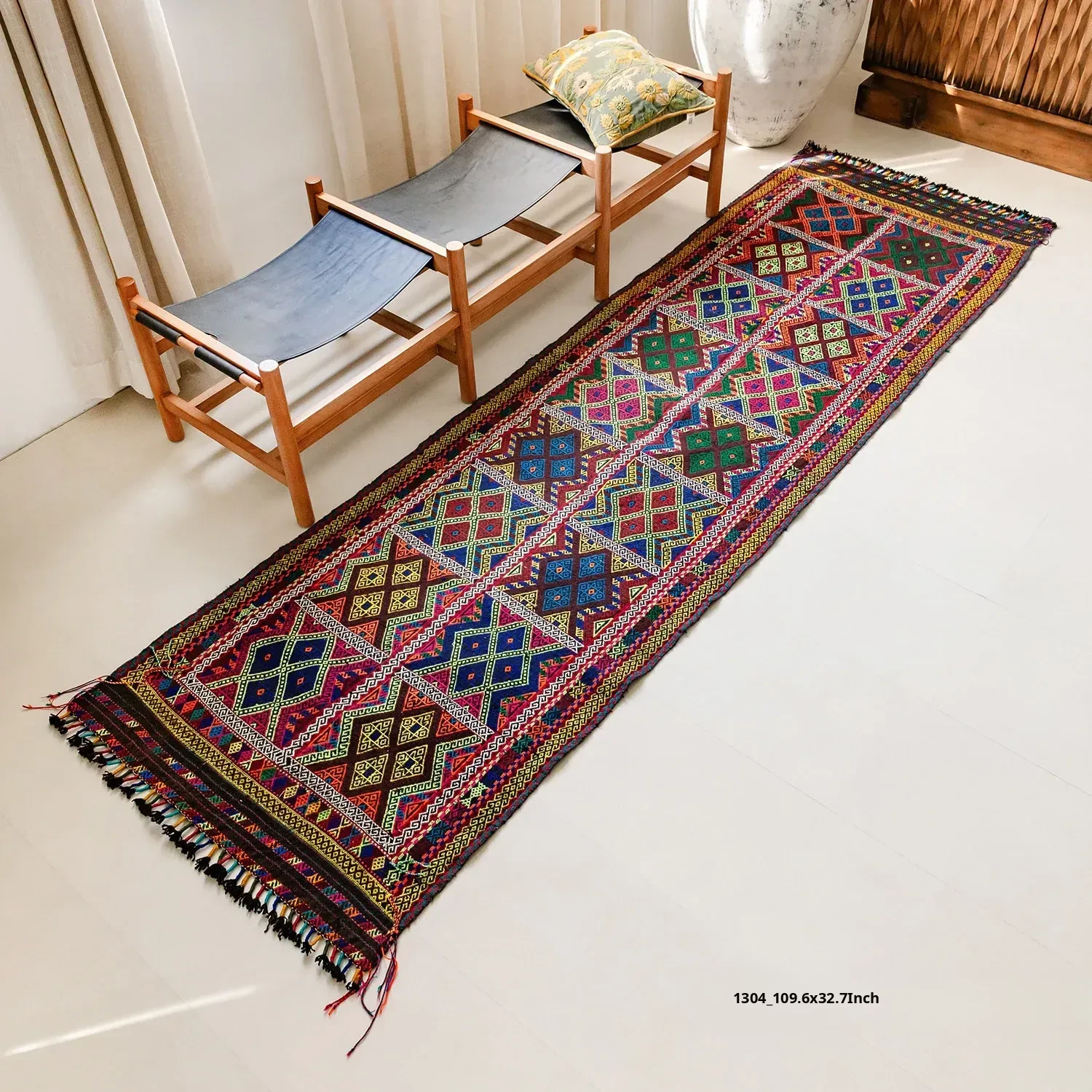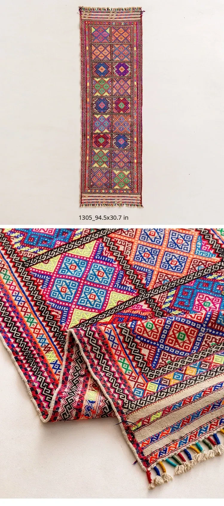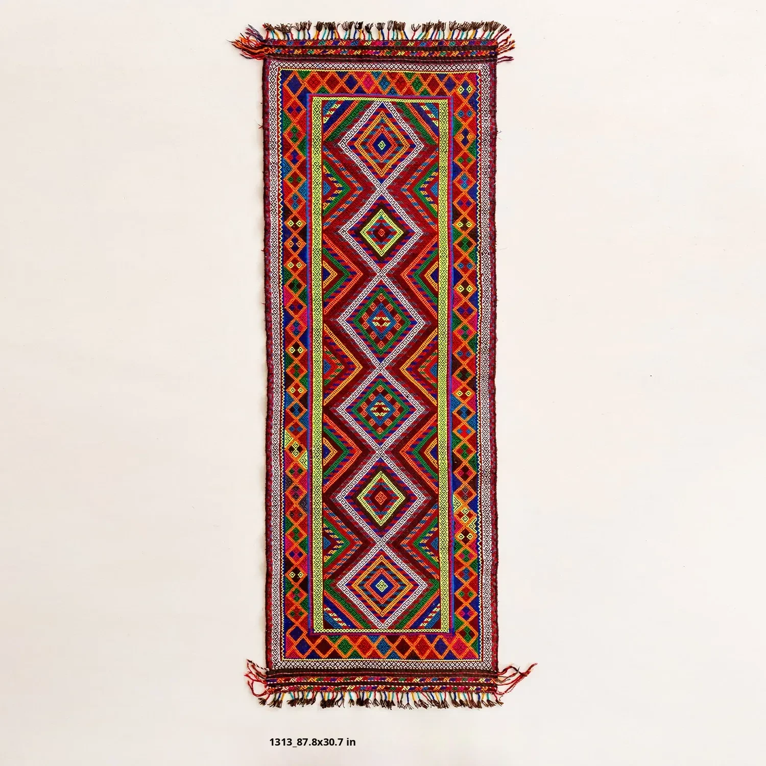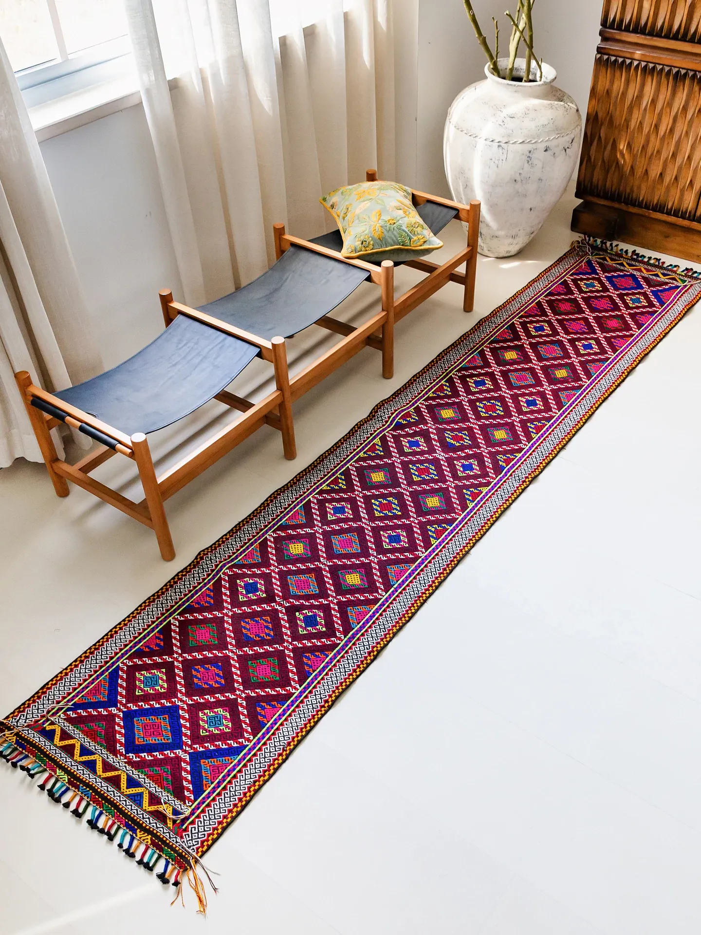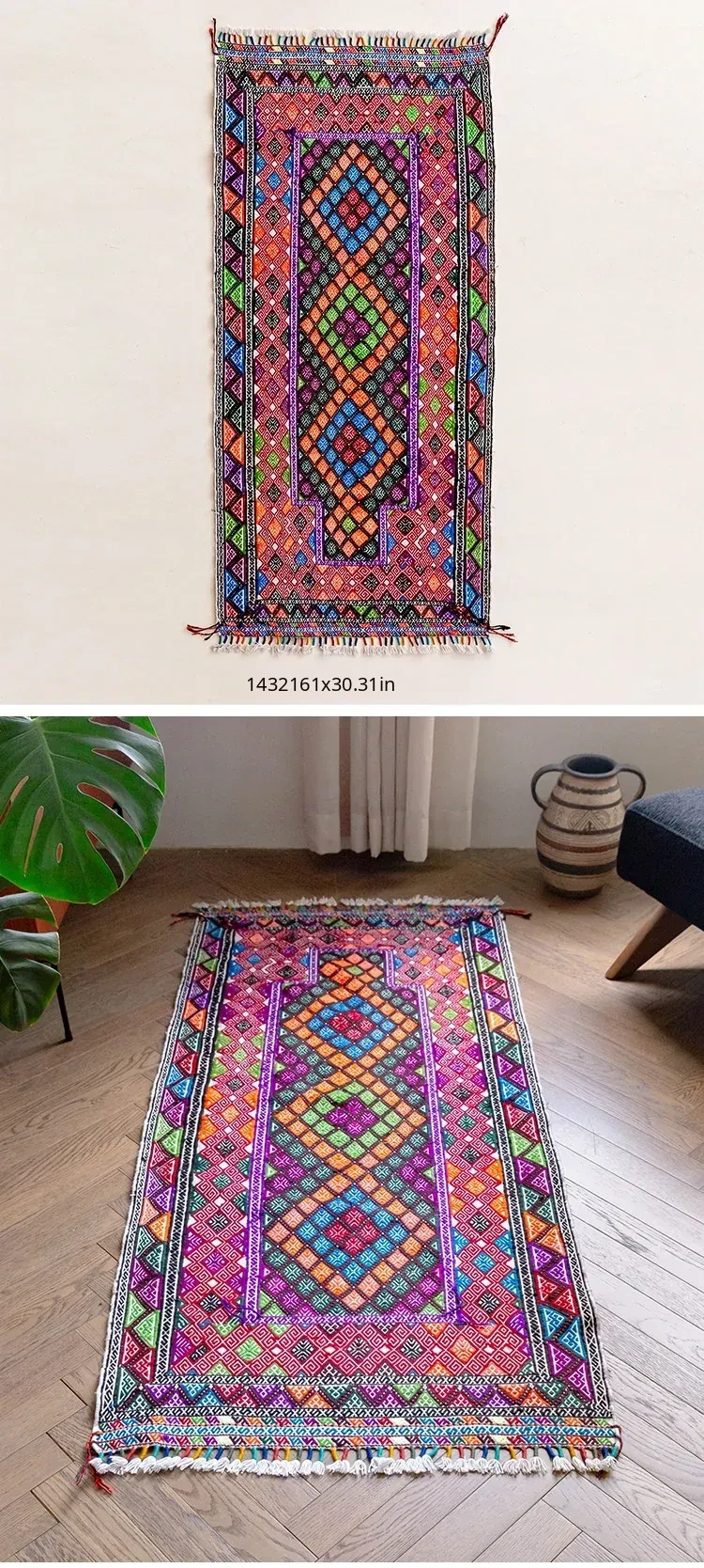 Visual Flavor: Handwoven Afghan Wool Red Kilim Bohemian Area Rug - Perfect for Living Room and Hallway Decor