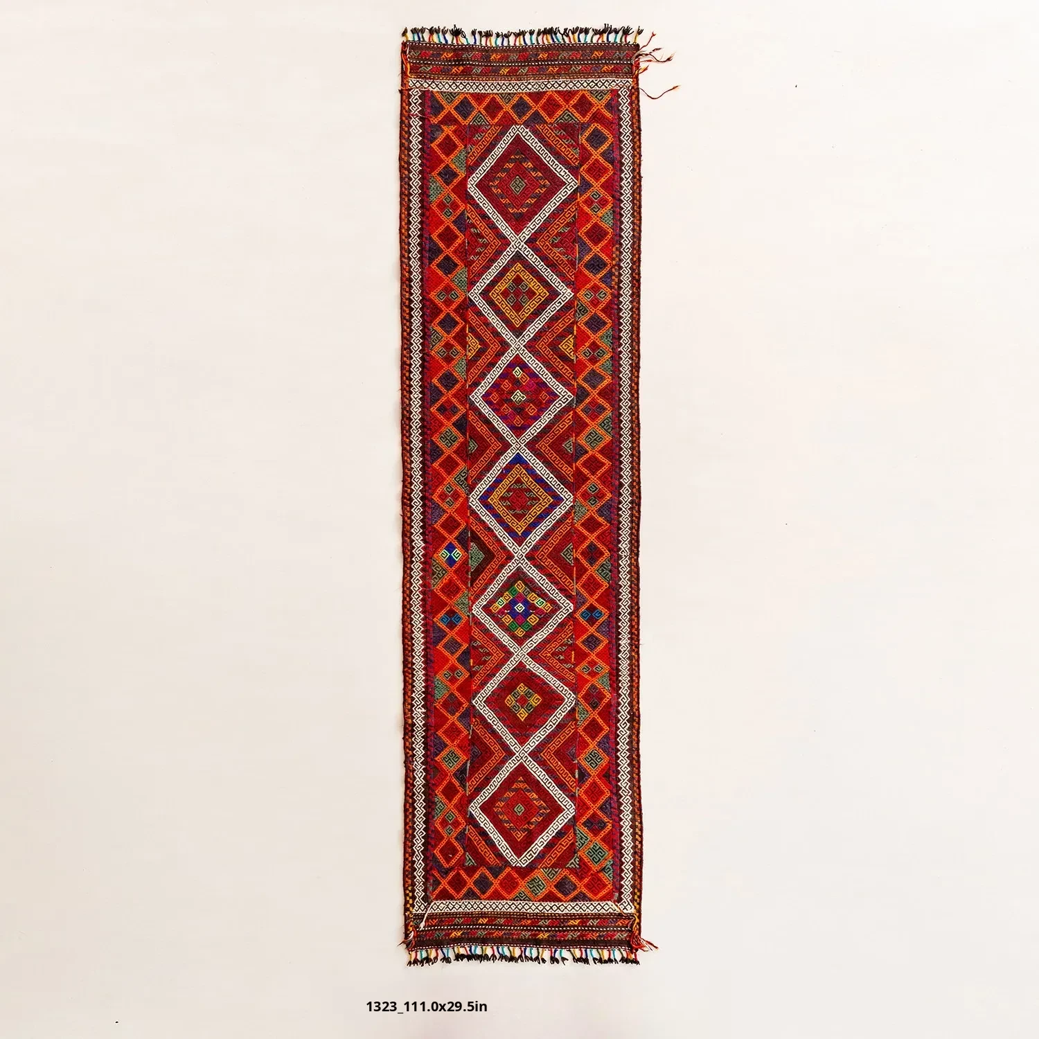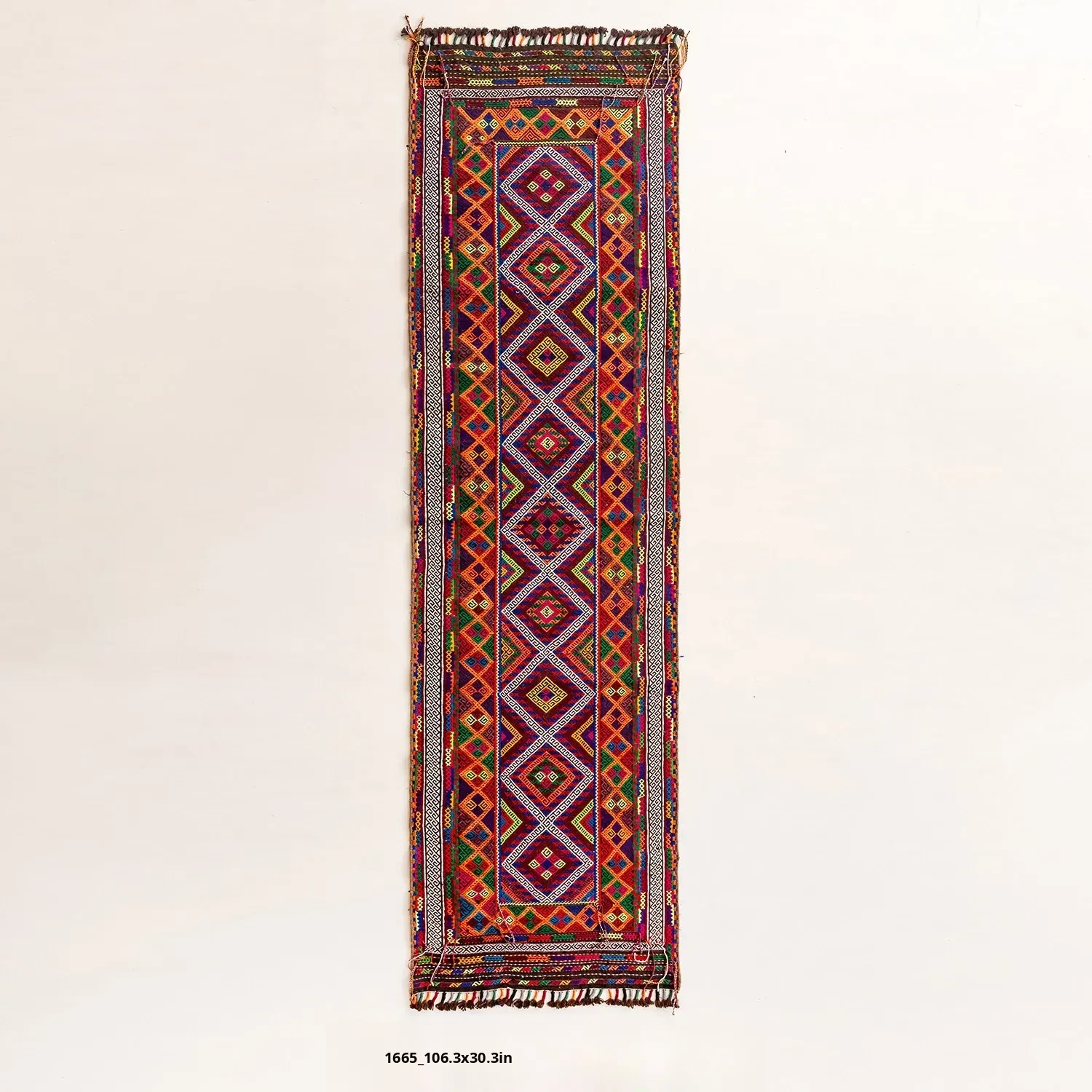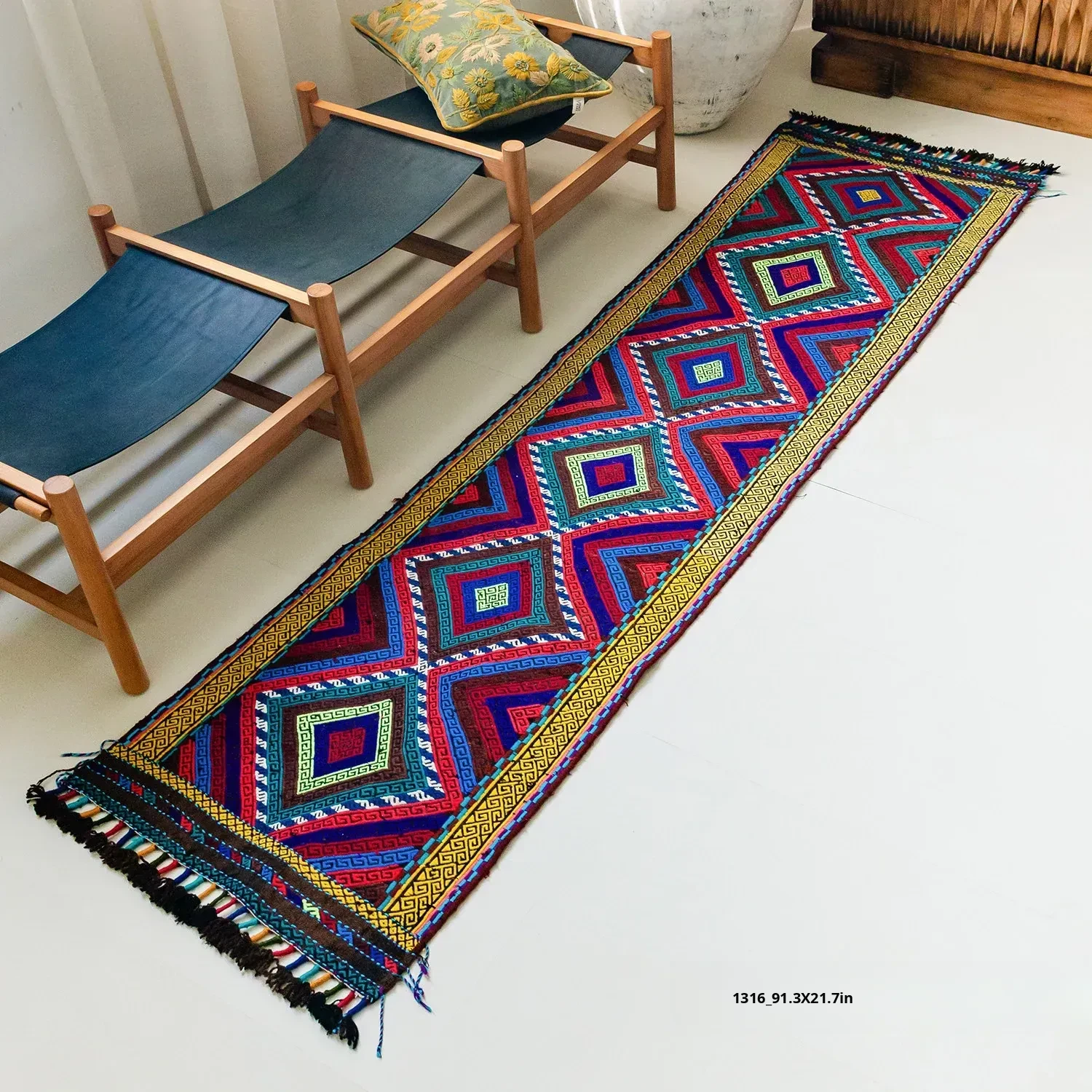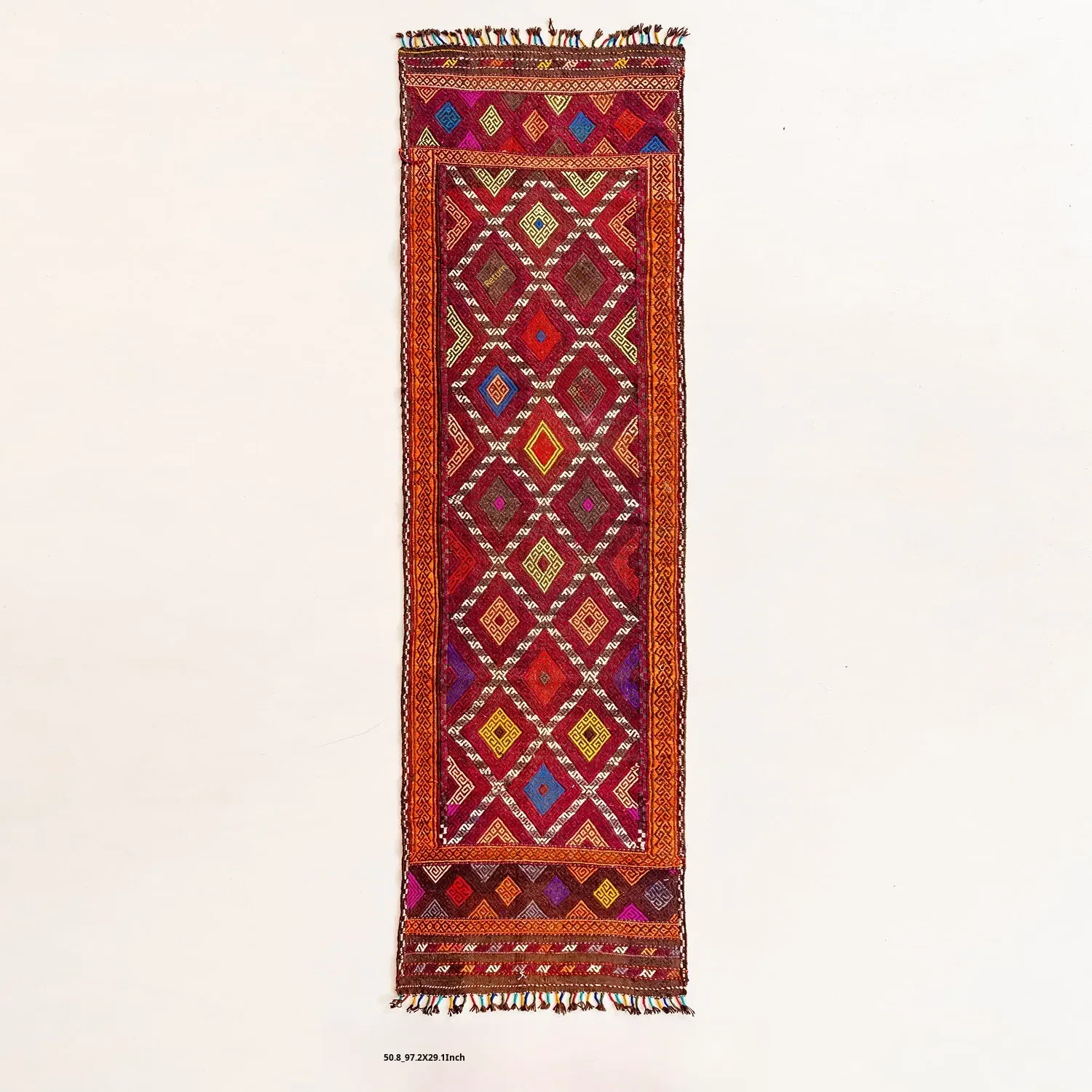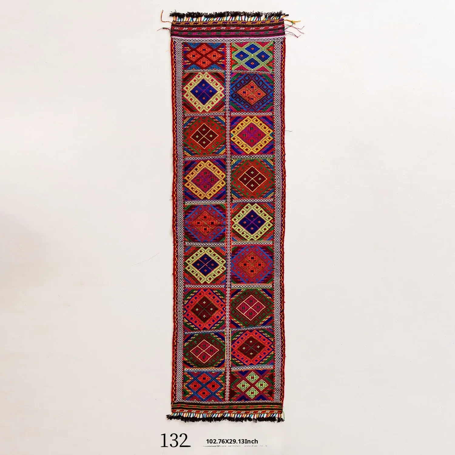 Visual Flavor: Handwoven Afghan Wool Red Kilim Bohemian Area Rug - Perfect for Living Room and Hallway Decor