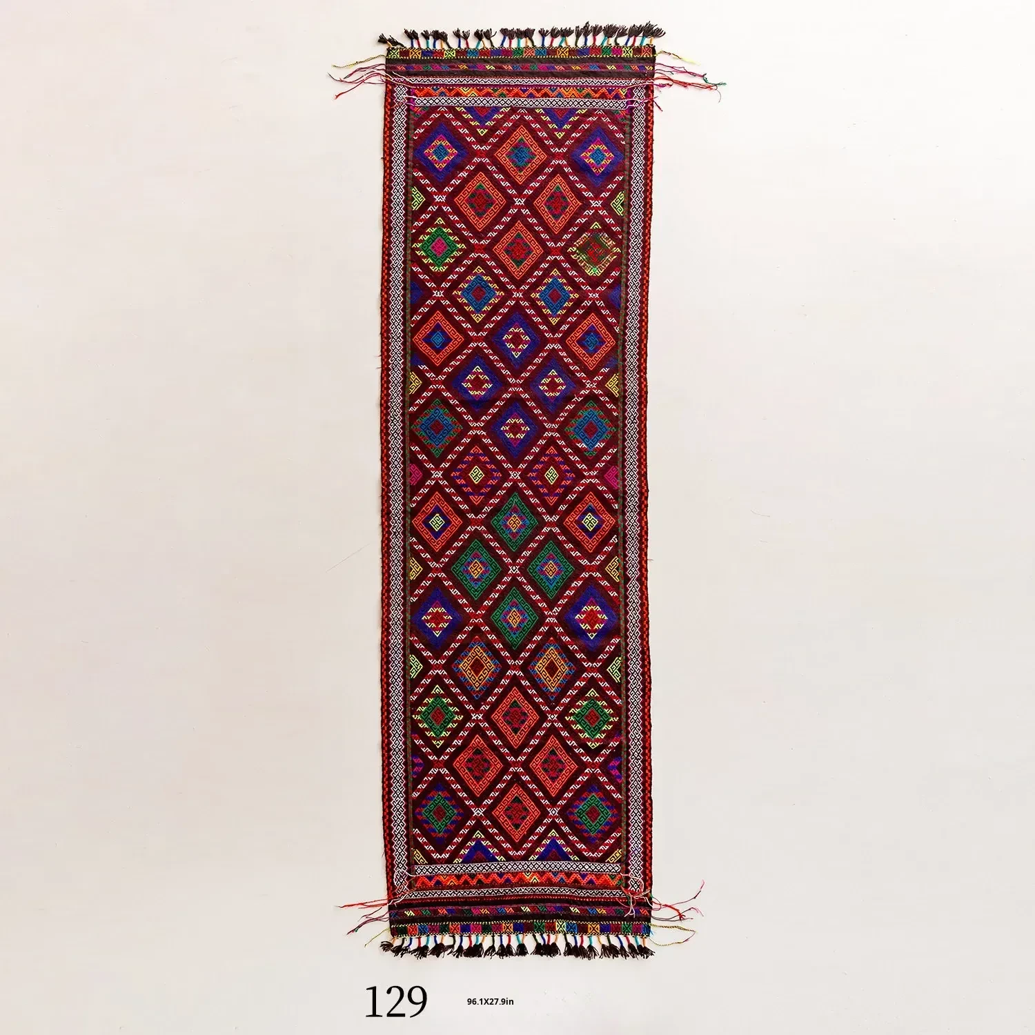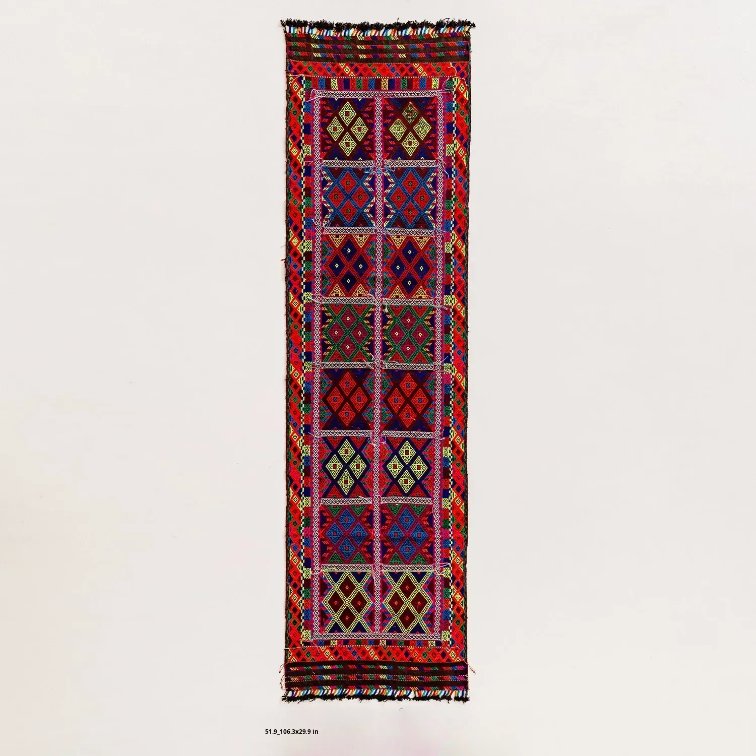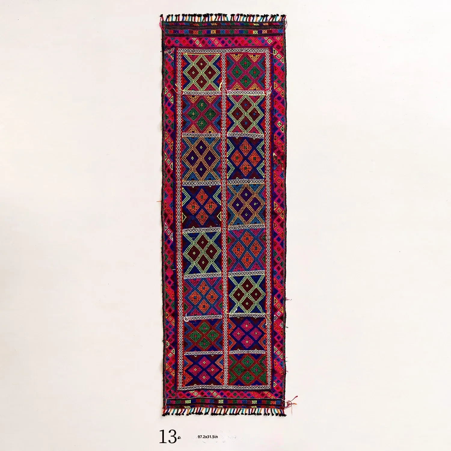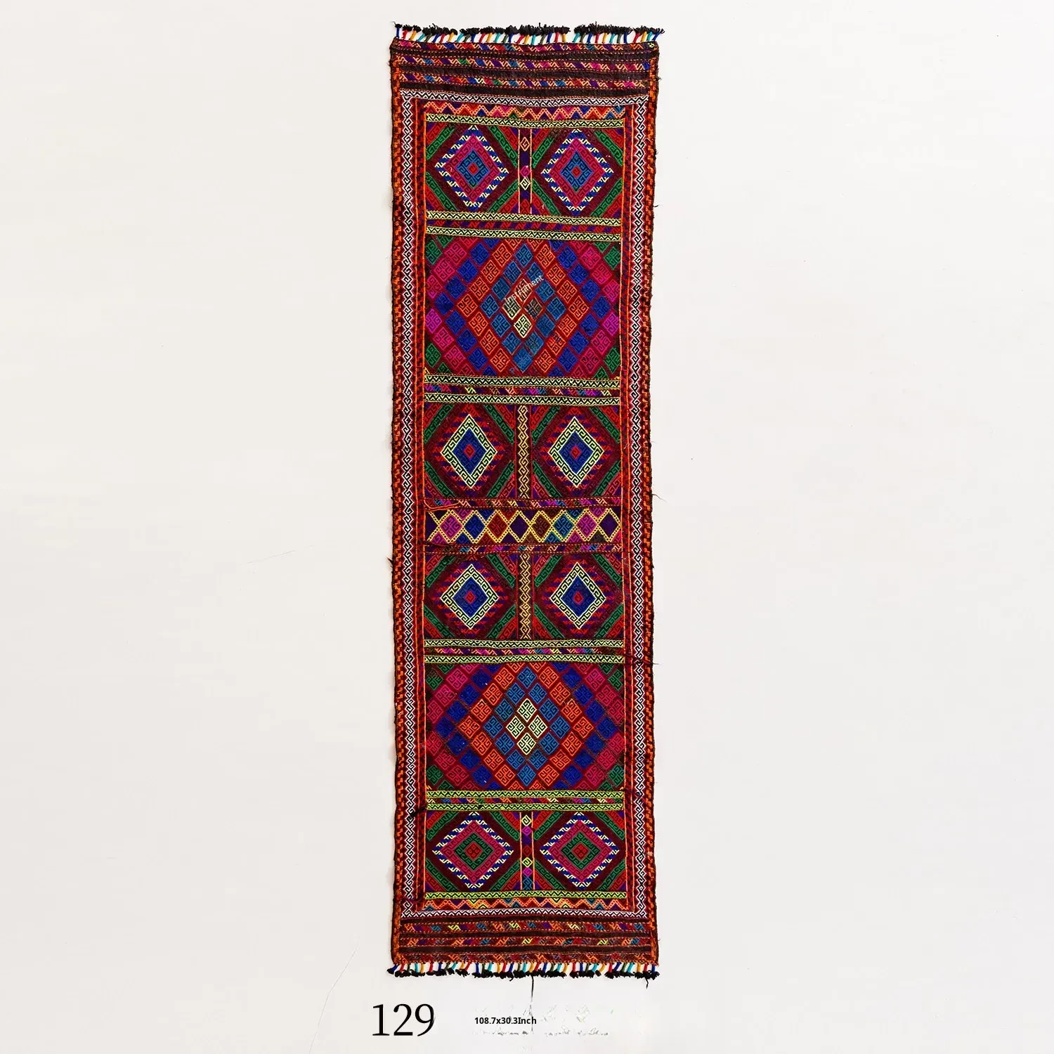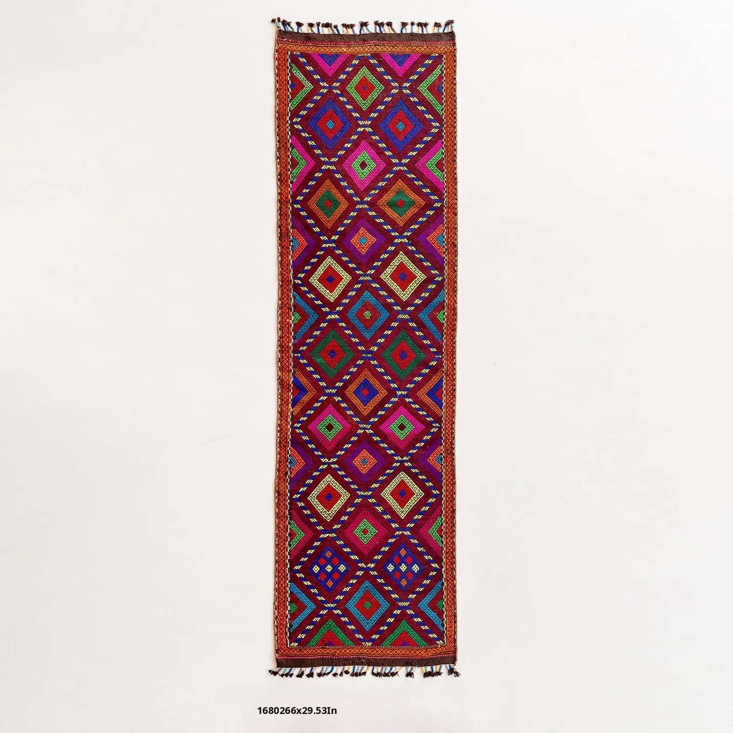 Visual Flavor: Handwoven Afghan Wool Red Kilim Bohemian Area Rug - Perfect for Living Room and Hallway Decor