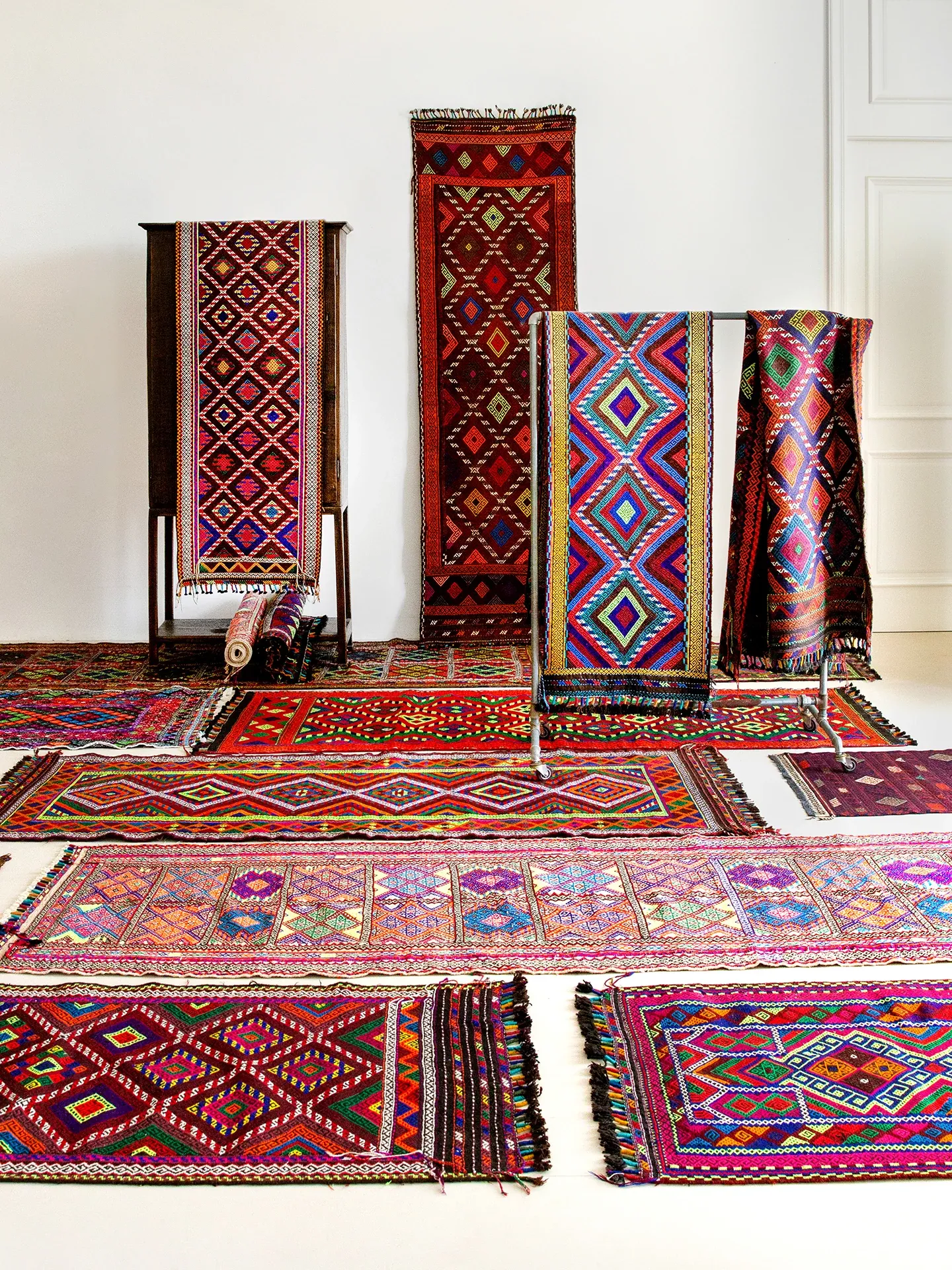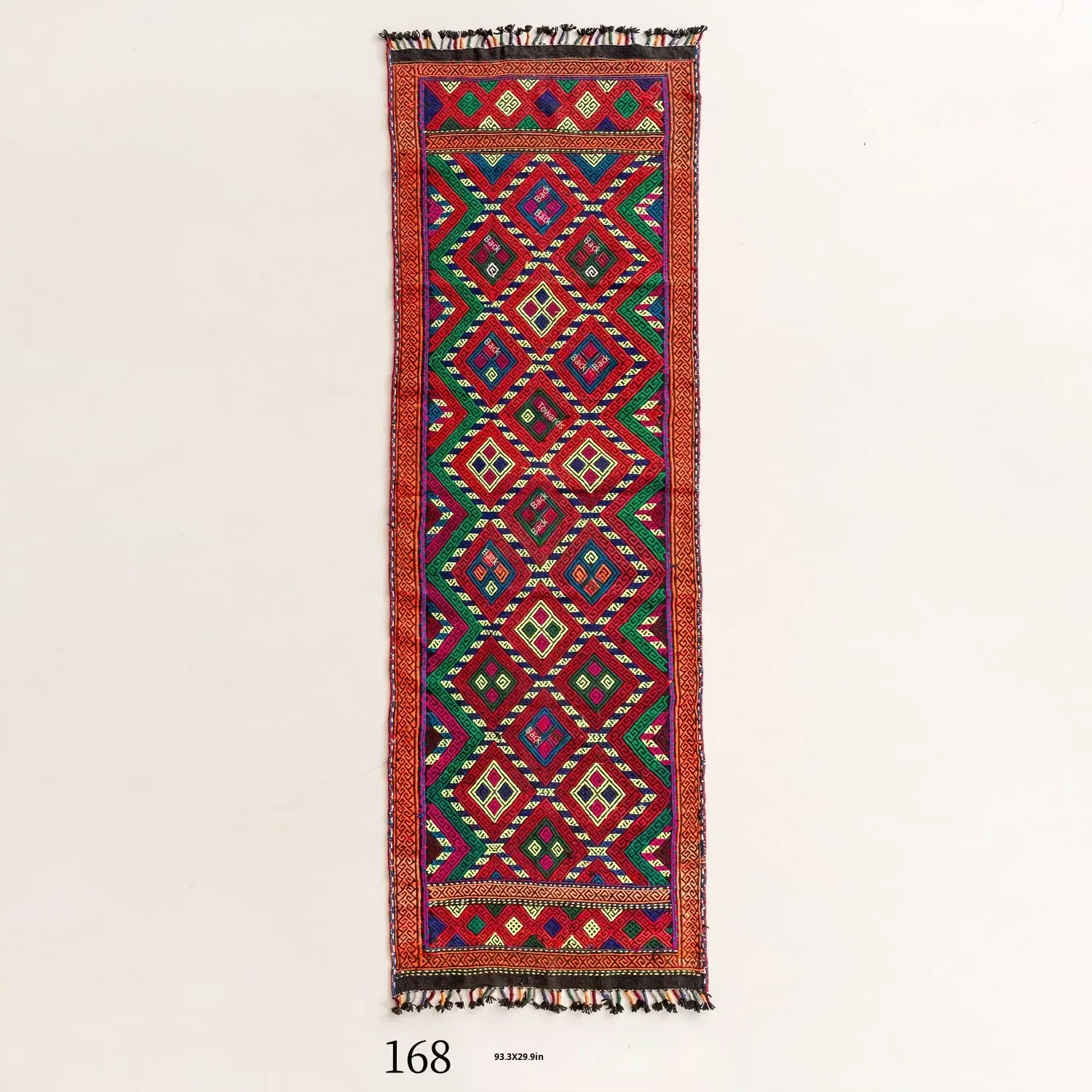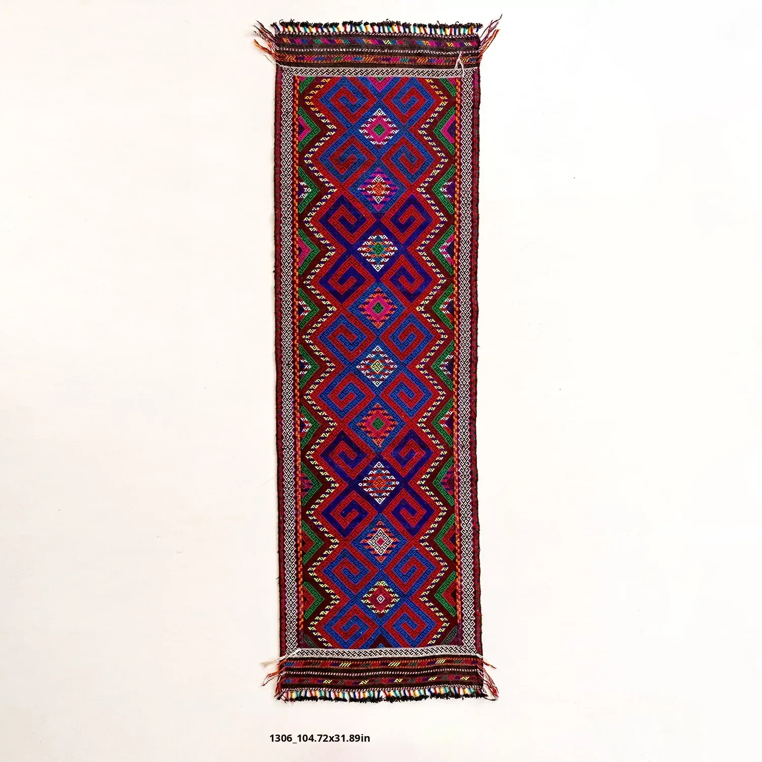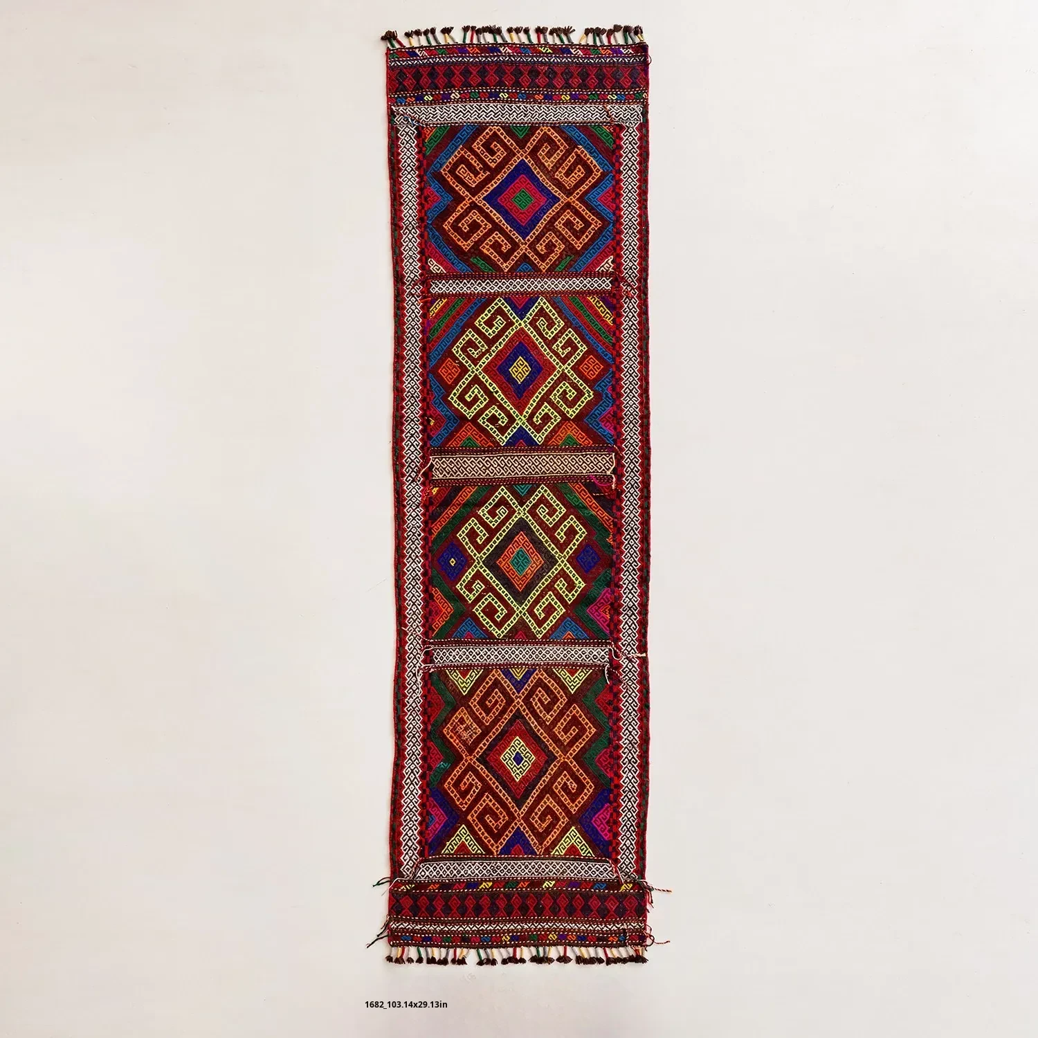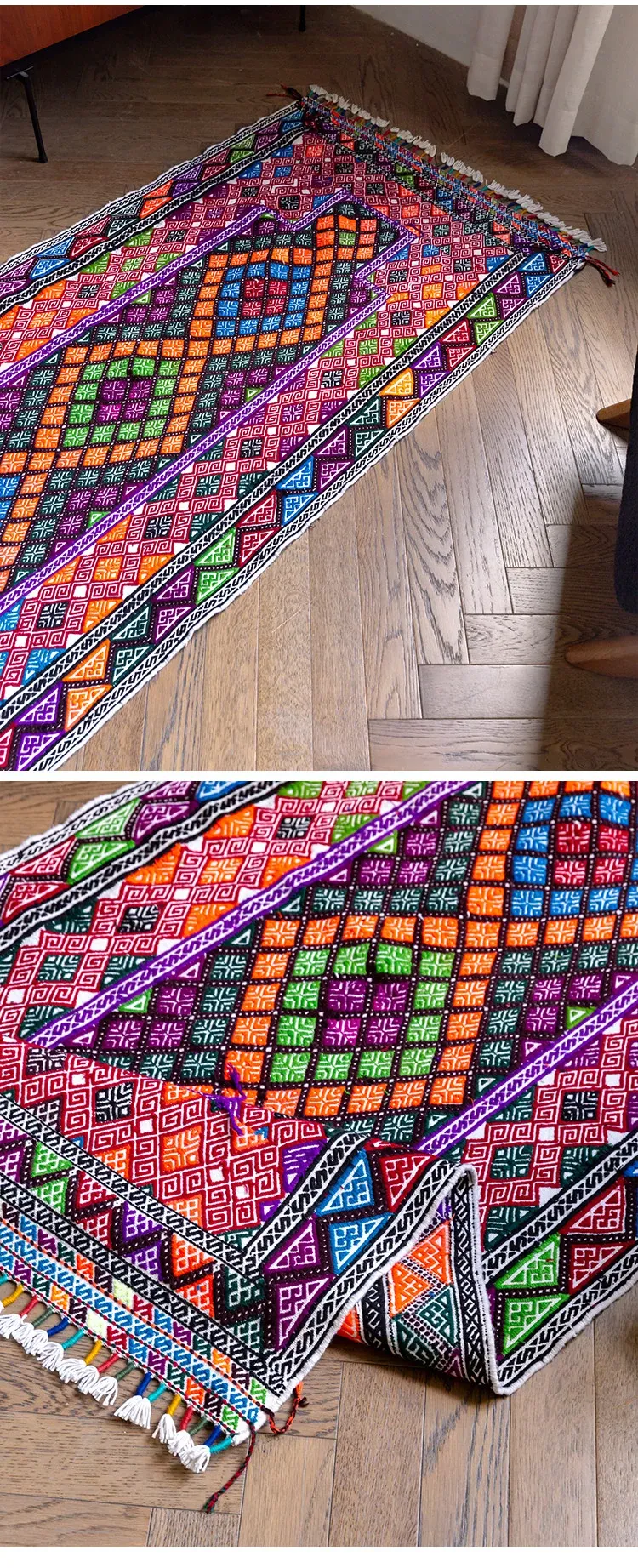 Visual Flavor: Handwoven Afghan Wool Red Kilim Bohemian Area Rug - Perfect for Living Room and Hallway Decor