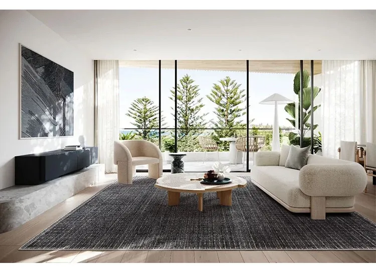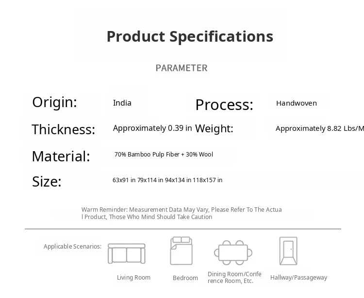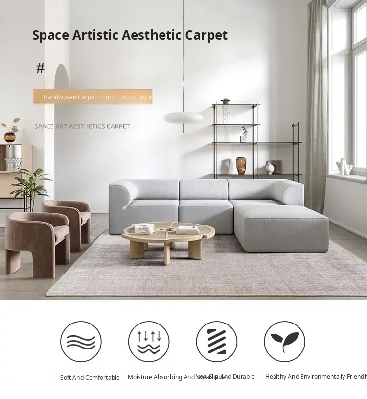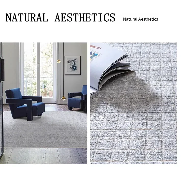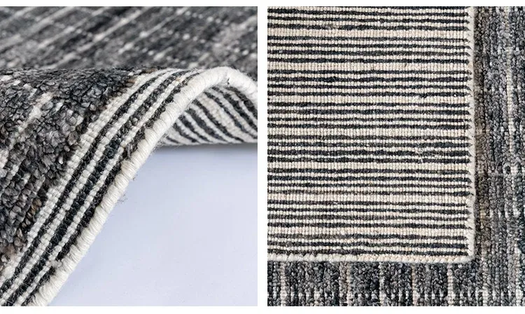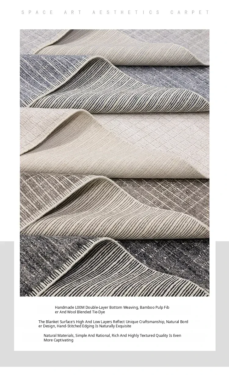 Visual Flavor: Handwoven Imported Wool and Silk Modern Japanese Minimalist Area Rug for Living Room - Eco-Friendly Coffee Table Mat