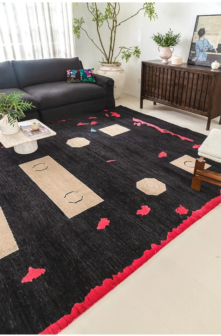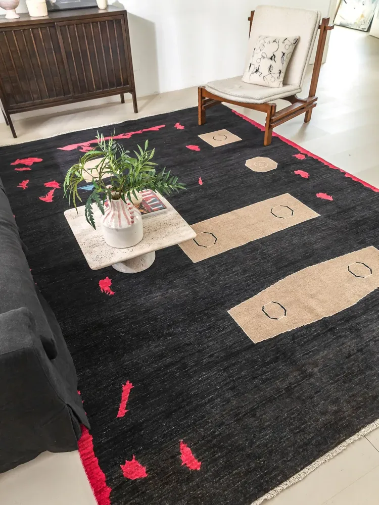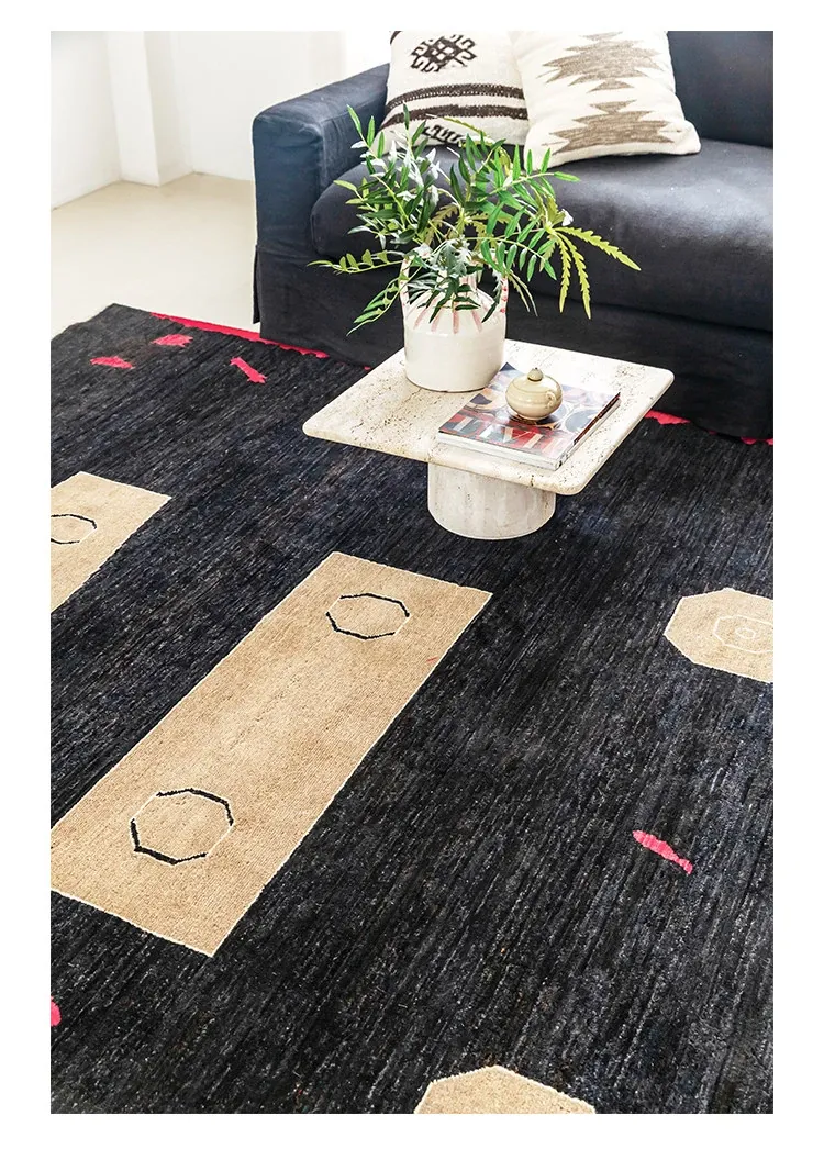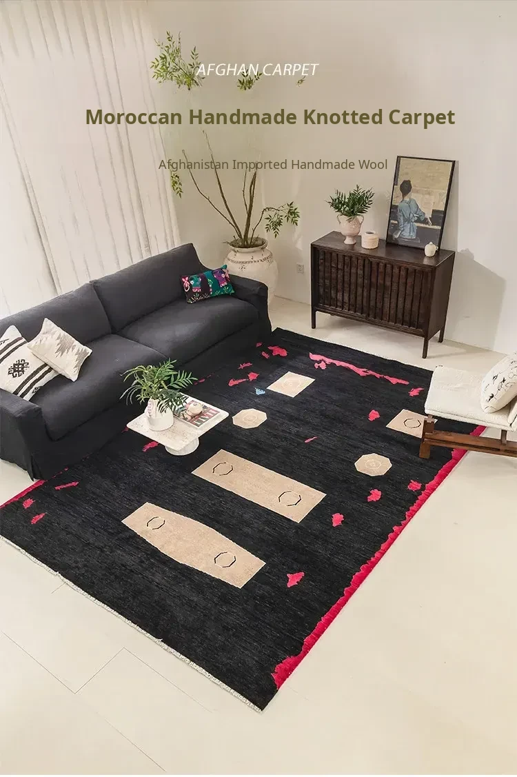 Visual Flavor: Imported Afghan Handwoven Wabi-Sabi Style Wool Rug - Minimalist Moroccan Carpet for Your Living Room