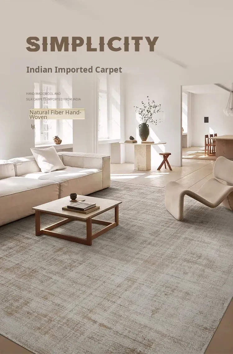 Visual Flavor: Imported Handcrafted Silk Modern Luxury Area Rug for Villa Living Room - Glue-Free, Exquisite Handcrafted Touch