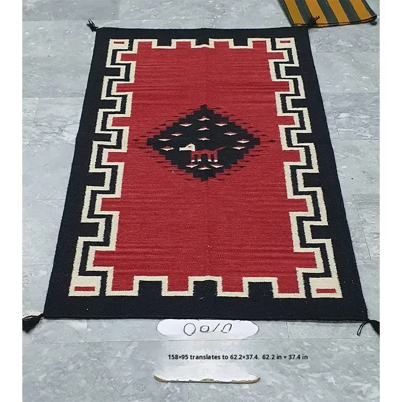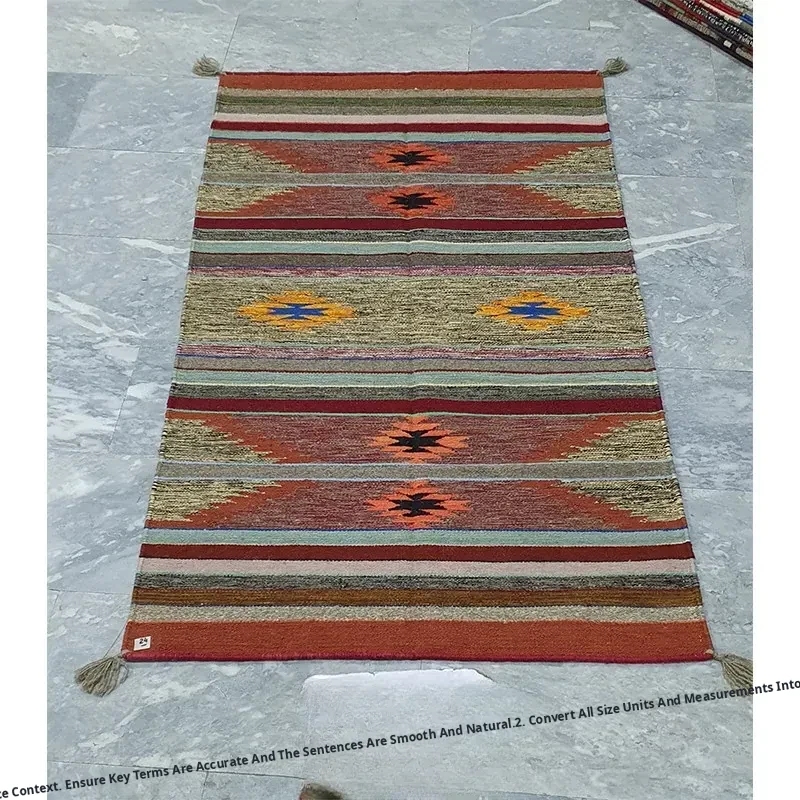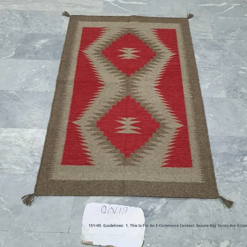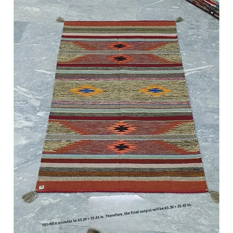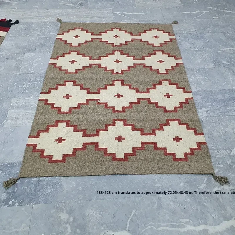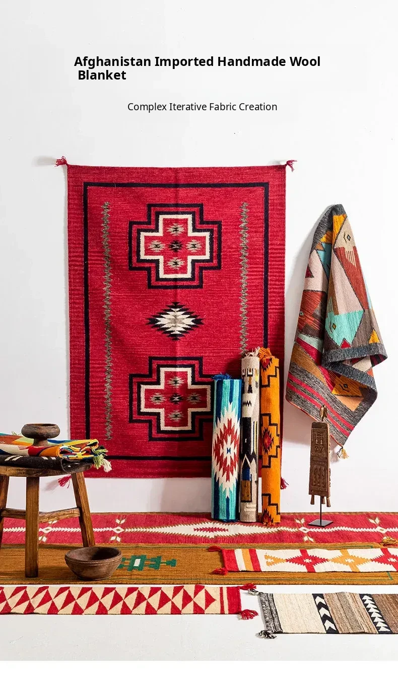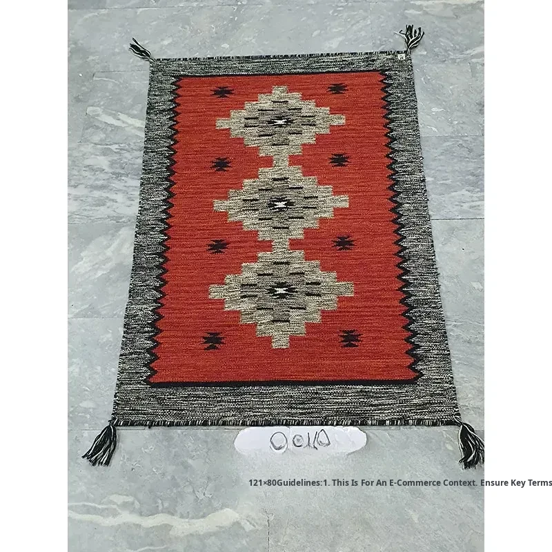 Visual Flavor: Imported Handmade No Glue Wool Red Kilim Rug - Bohemian Style for Living Room and Bedside Décor