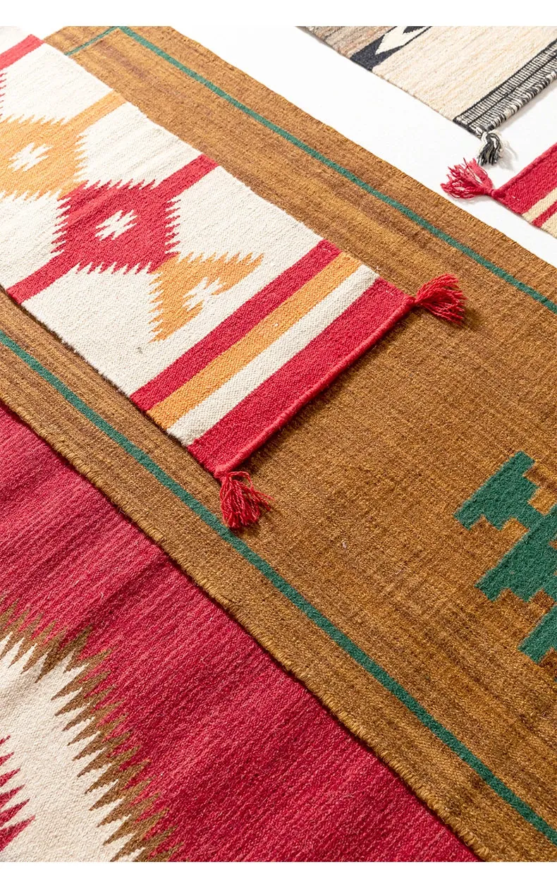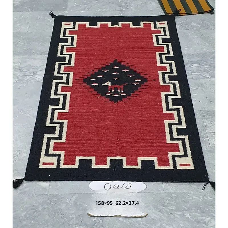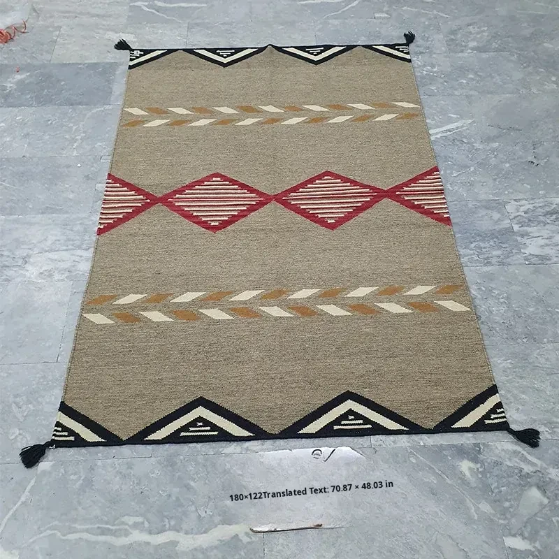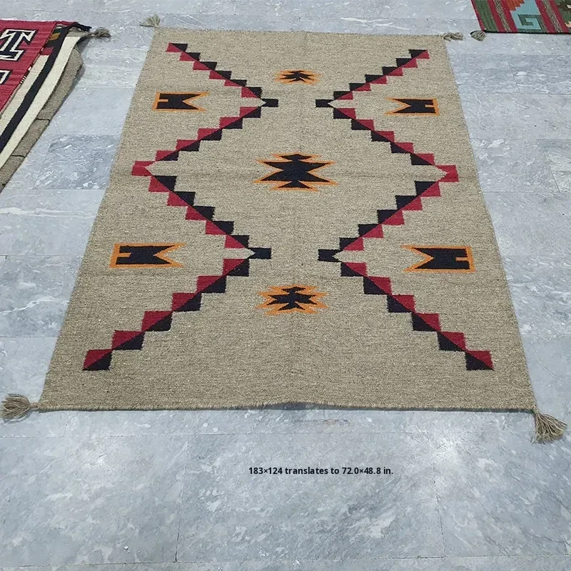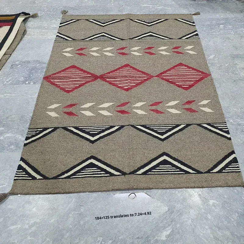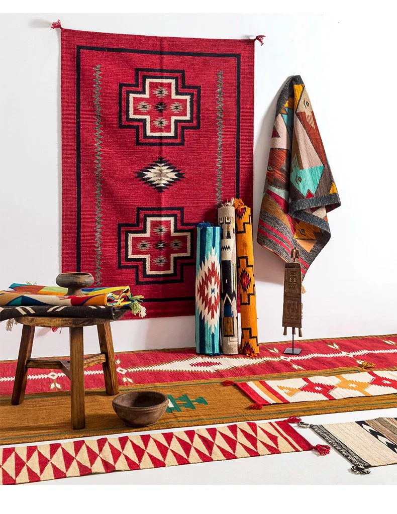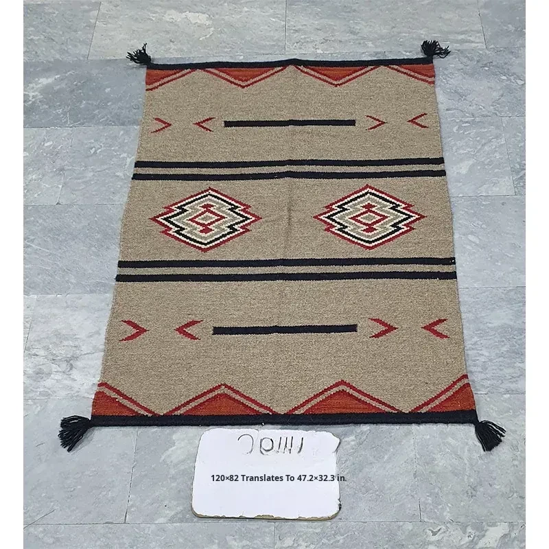 Visual Flavor: Imported Handmade No Glue Wool Red Kilim Rug - Bohemian Style for Living Room and Bedside Décor