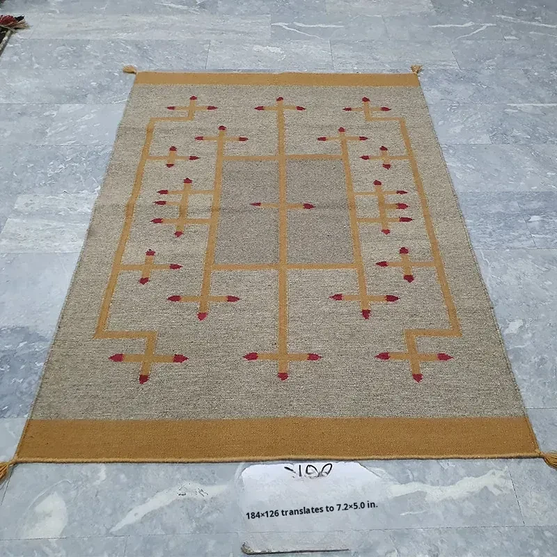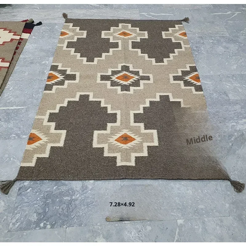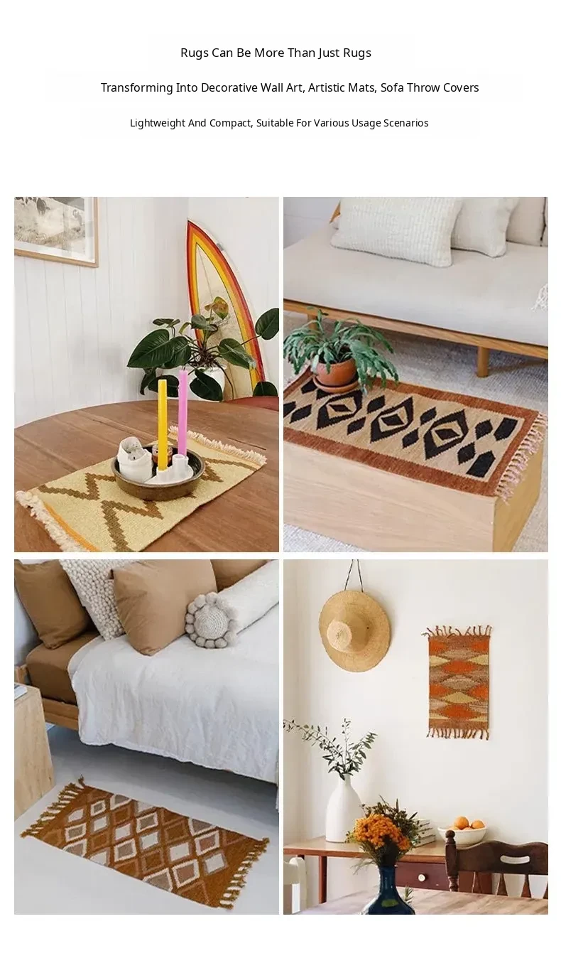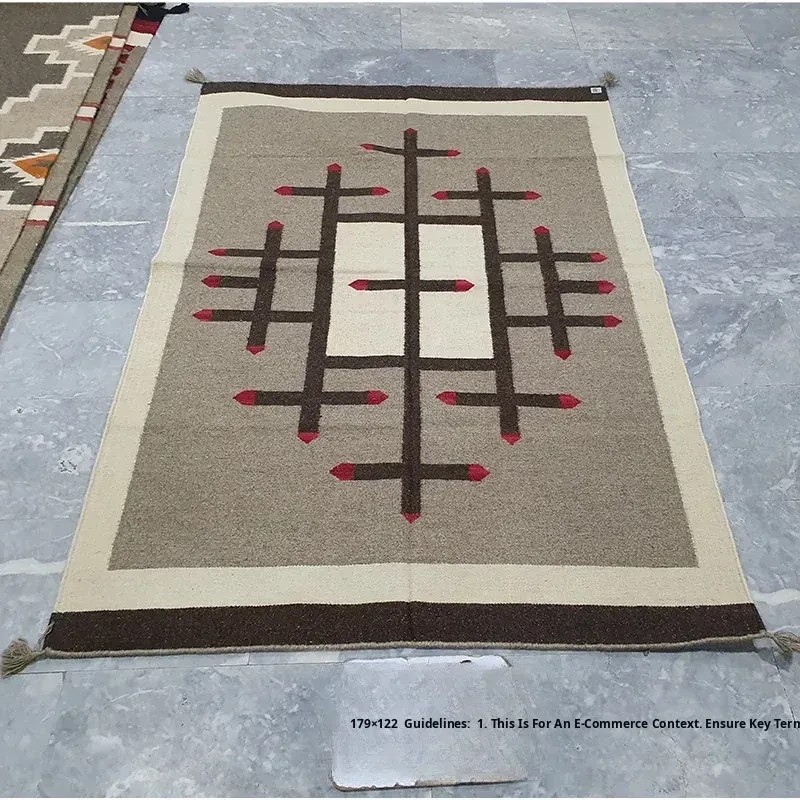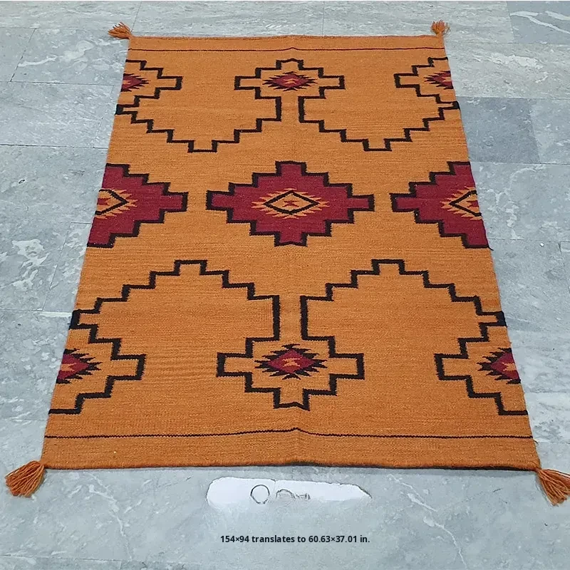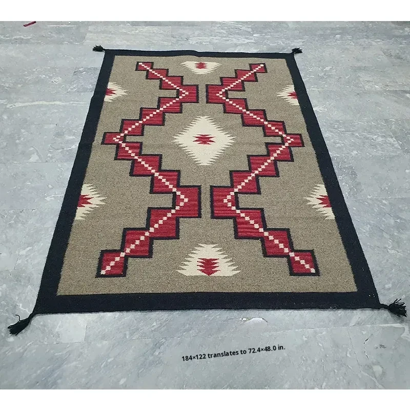 Visual Flavor: Imported Handmade No Glue Wool Red Kilim Rug - Bohemian Style for Living Room and Bedside Décor