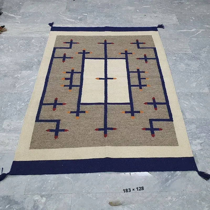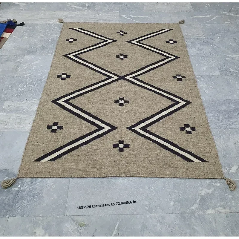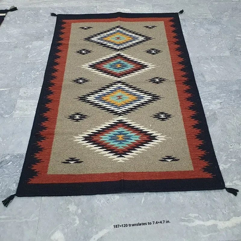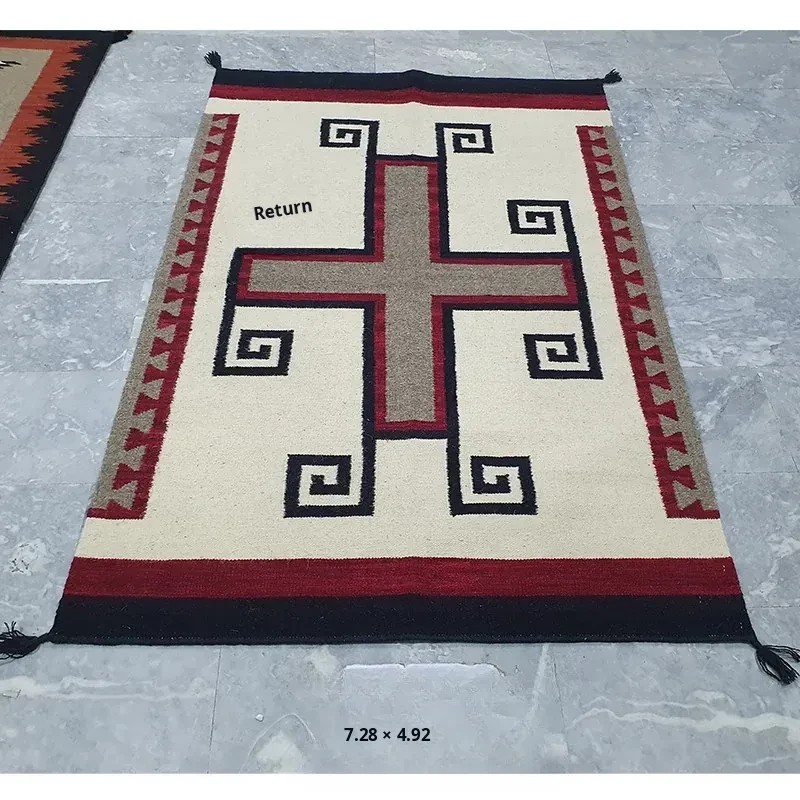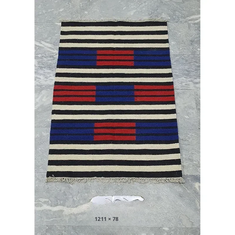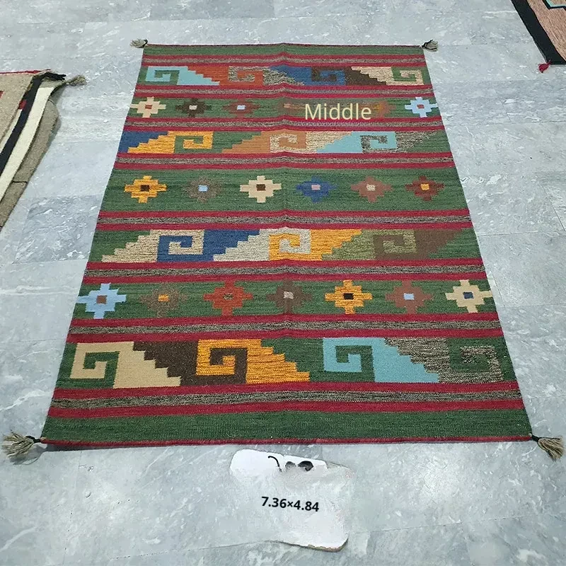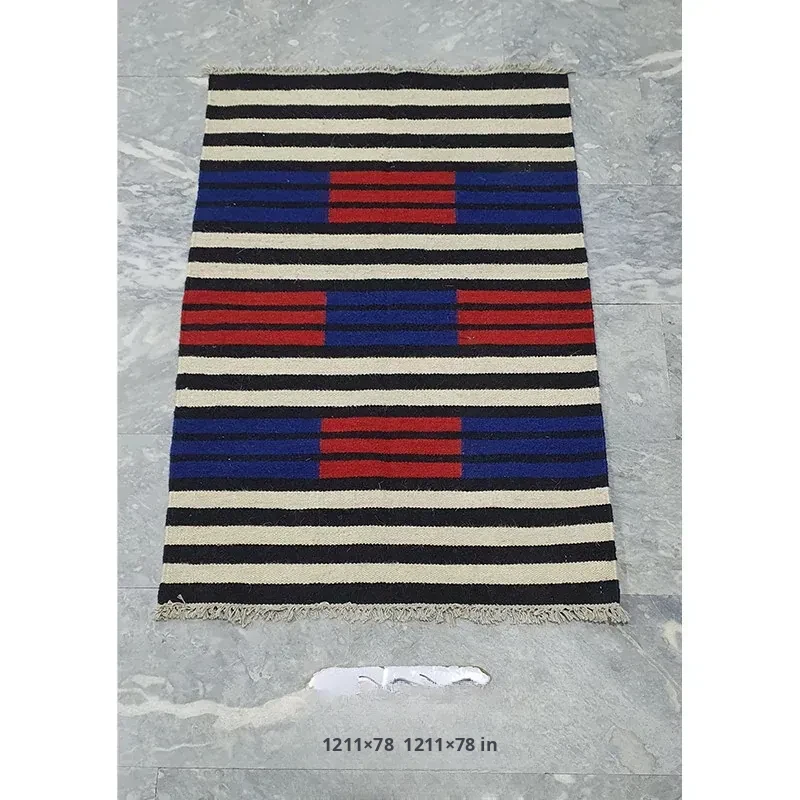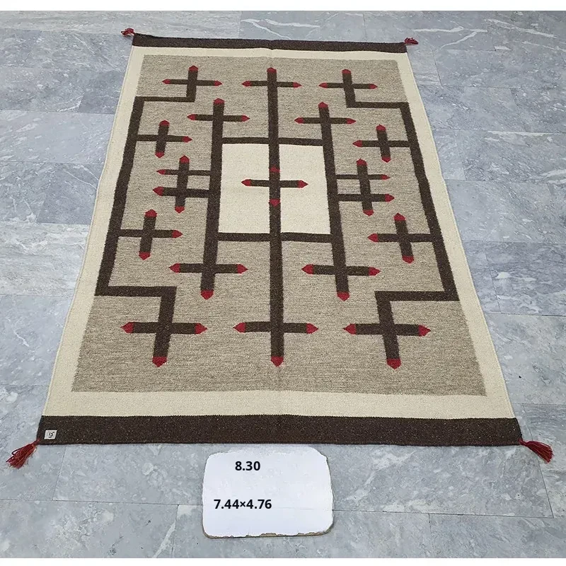 Visual Flavor: Imported Handmade No Glue Wool Red Kilim Rug - Bohemian Style for Living Room and Bedside Décor