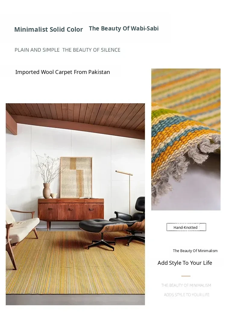 Visual Flavor: Imported Handmade Pakistani Wool Nordic Minimalist Area Rug - Perfect for Living Room, Tea Table, Bedroom, and Hallway Mat