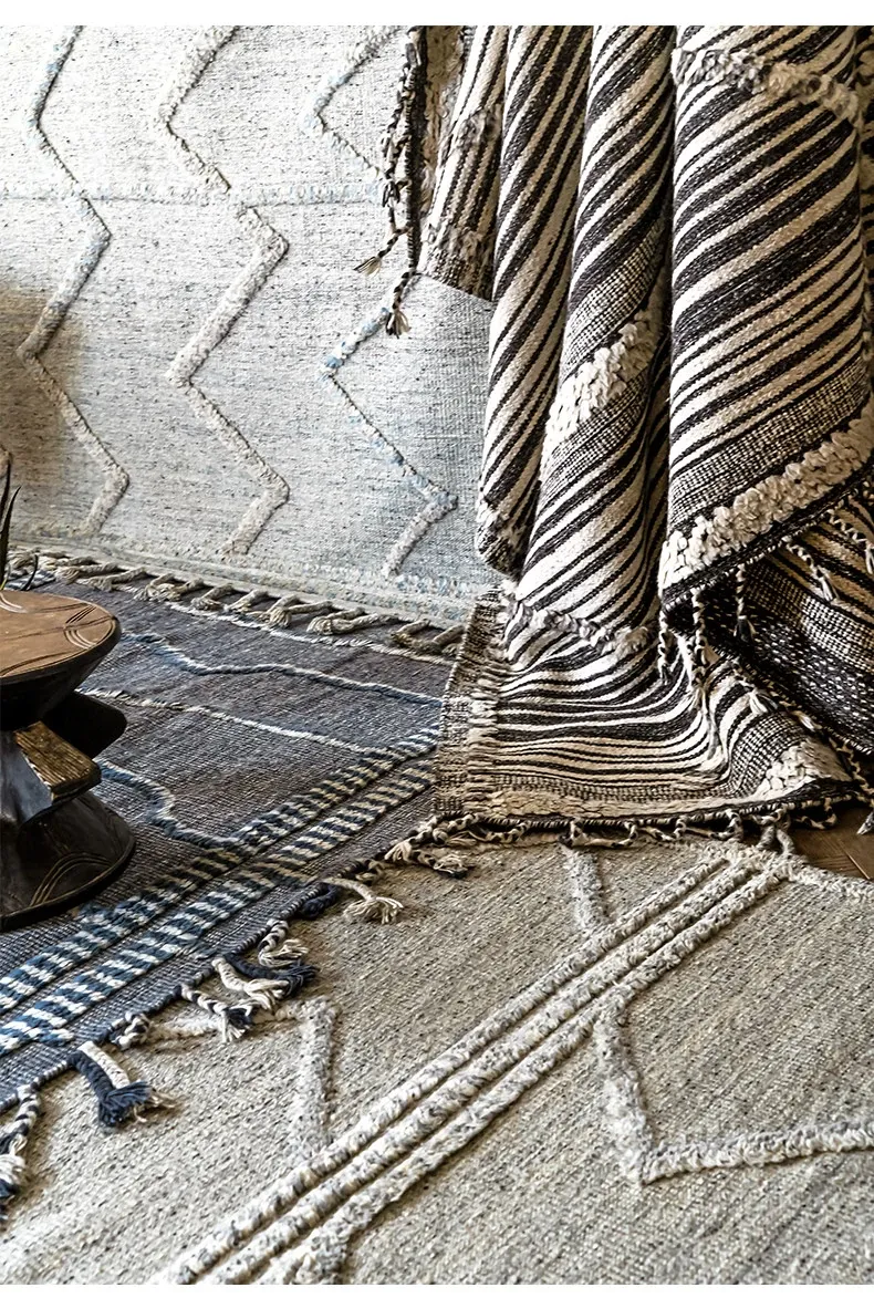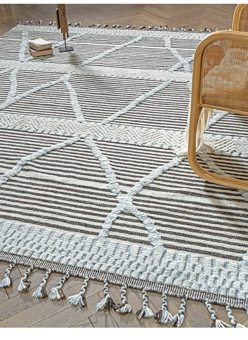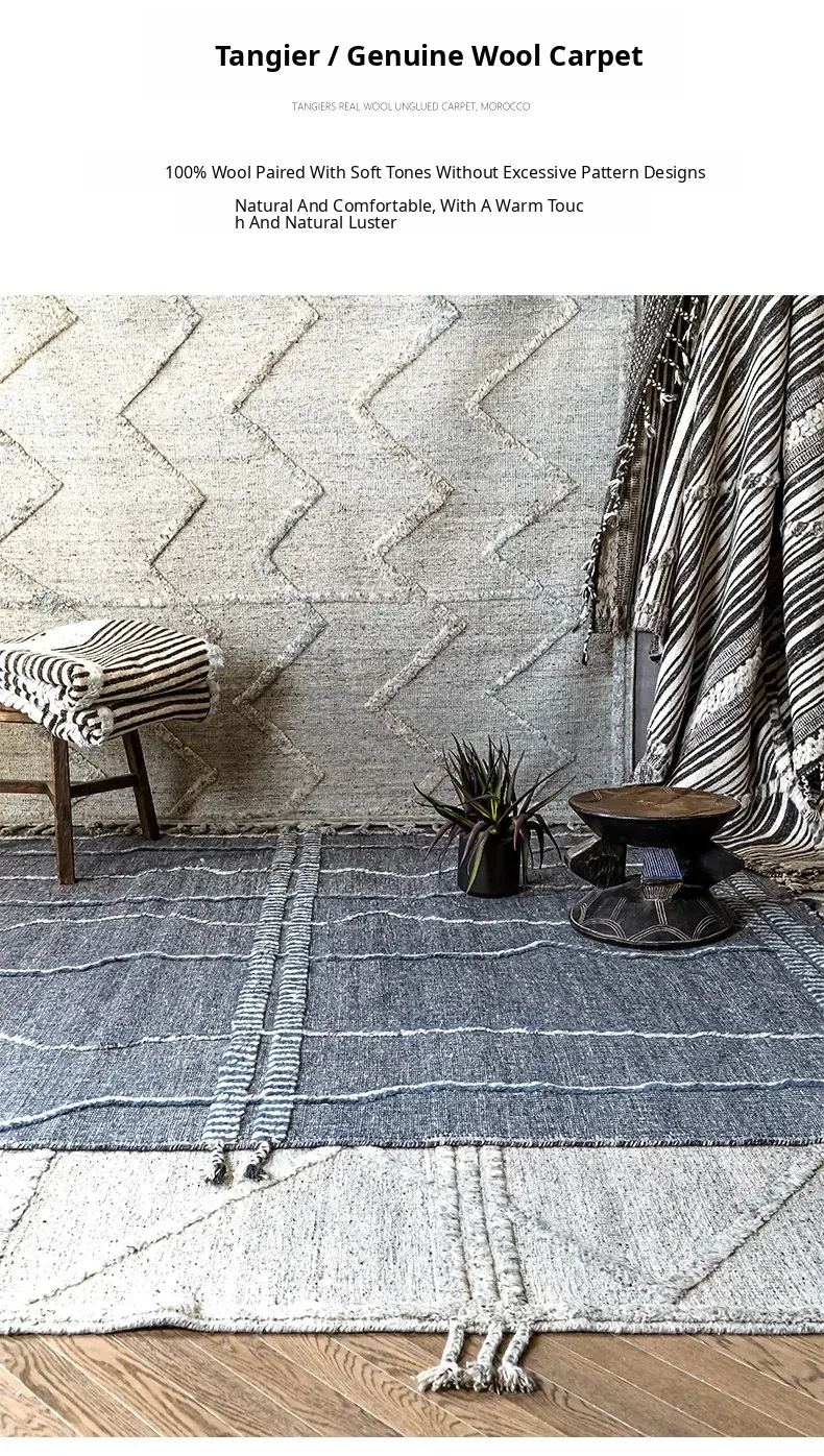 Visual Flavor: Imported Moroccan Wool Rug - Handcrafted, Luxurious Quality for Your Living Room Coffee Table - Elegant and Modern Design