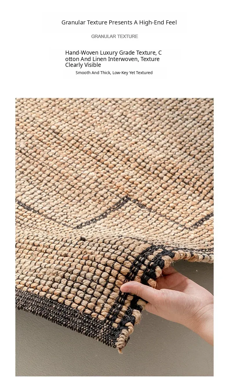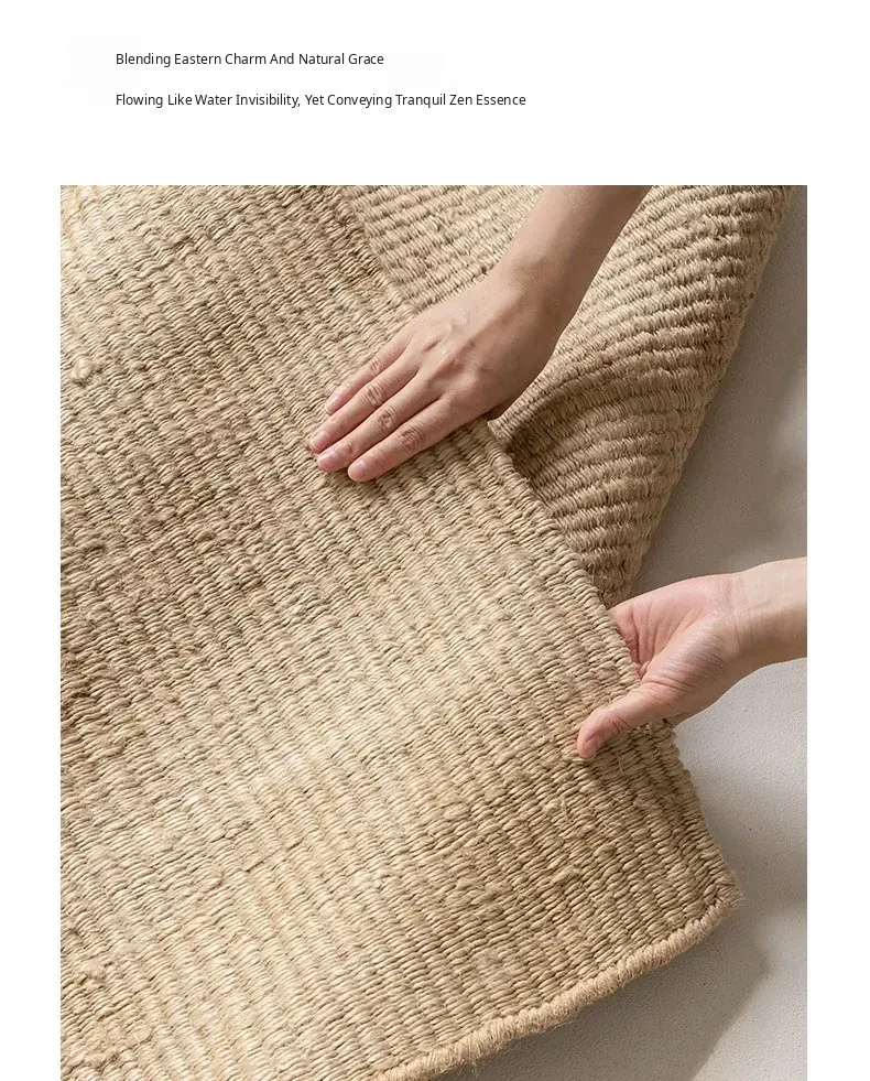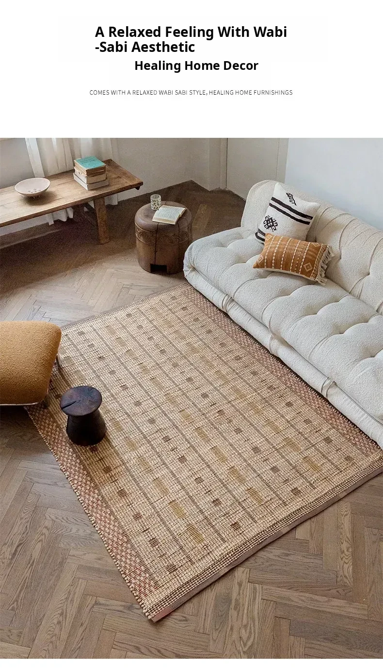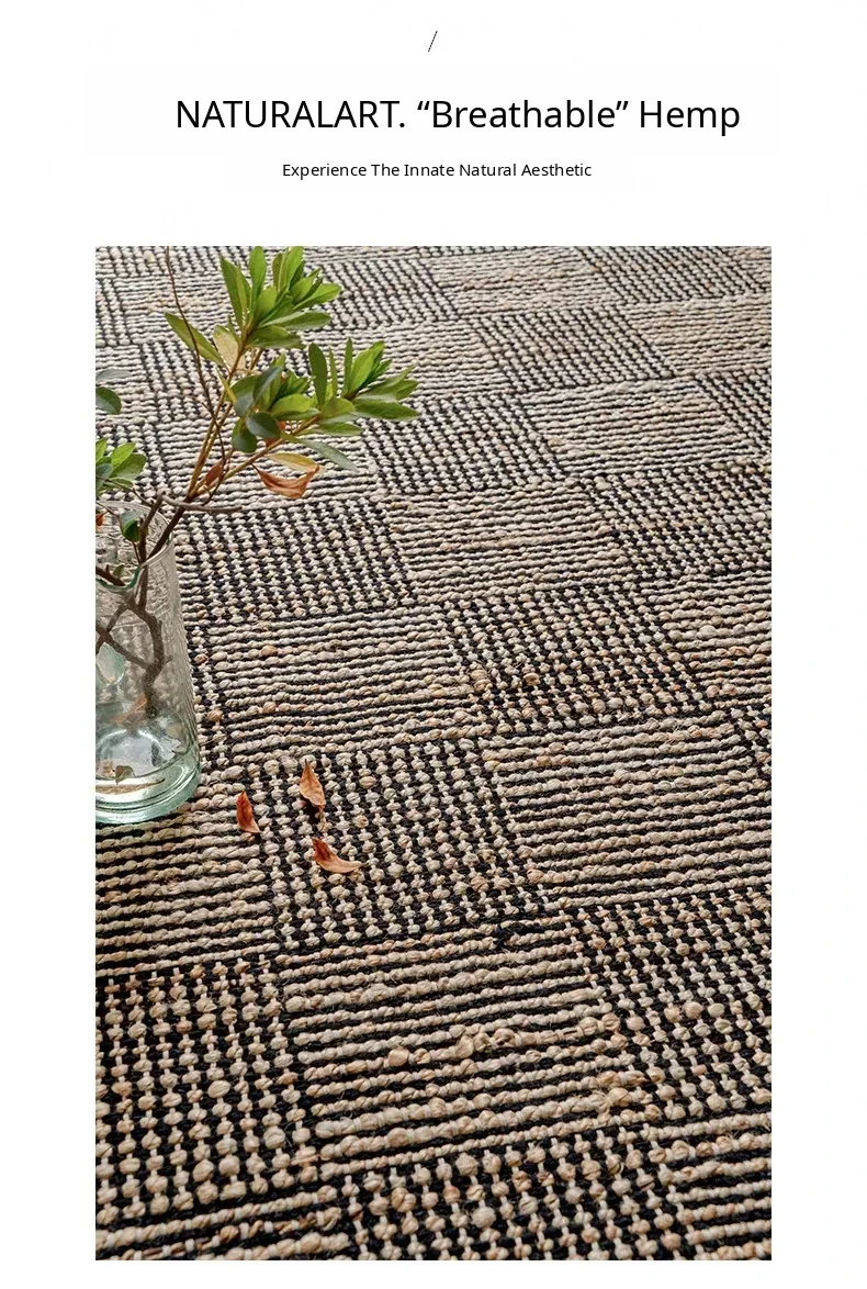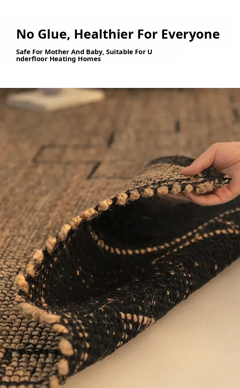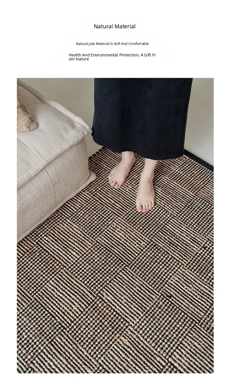 Visual Flavor Imported No-Glued Jute Rug - Handwoven Japanese Style Natural Wood Living Room Coffee Table Mat with Italian Elegance