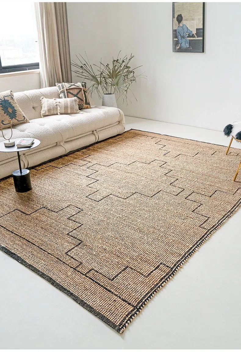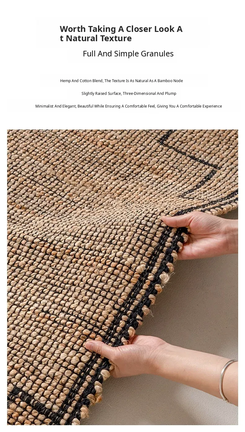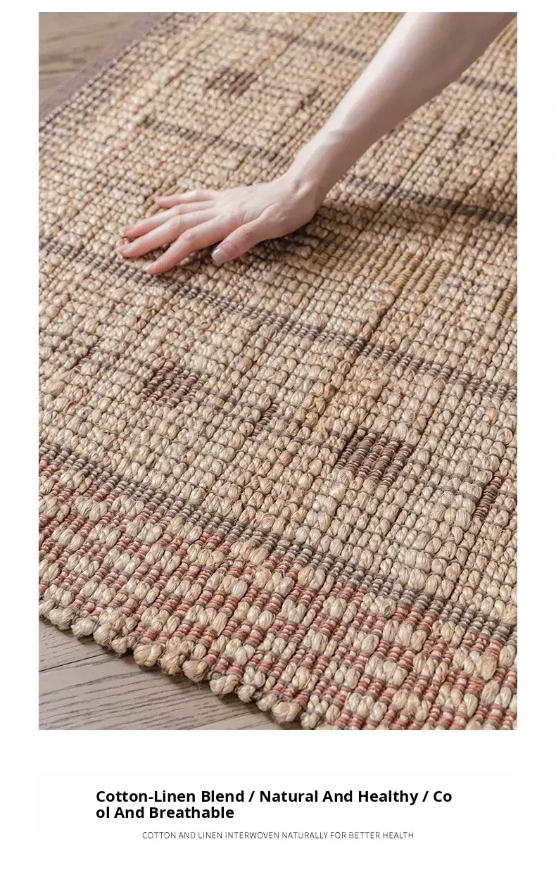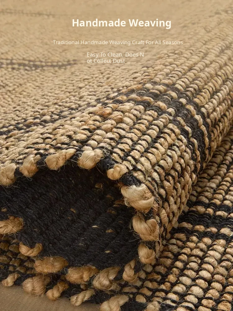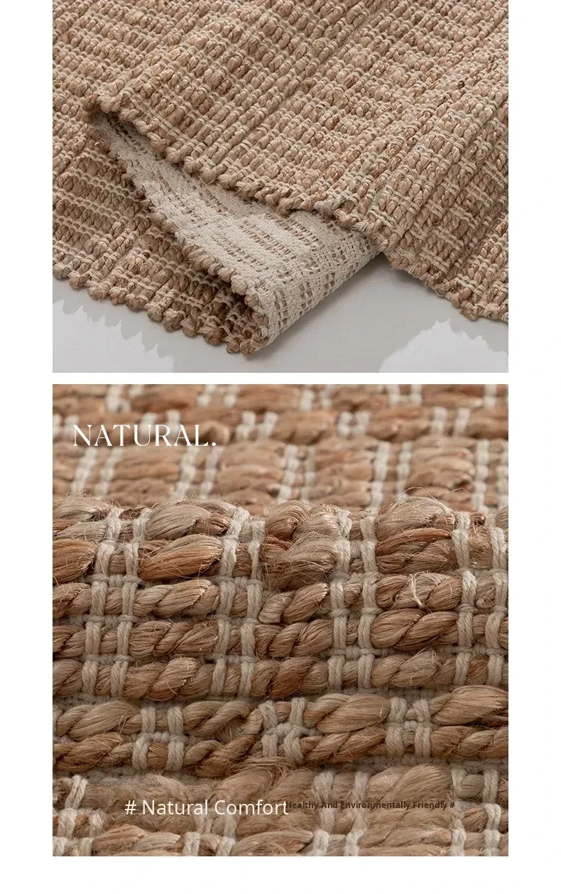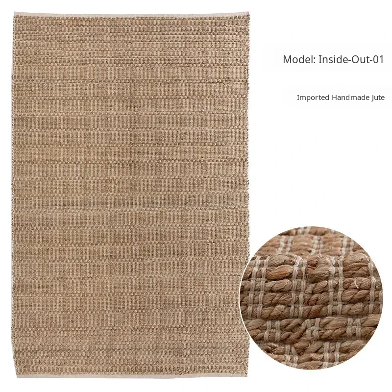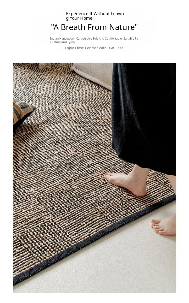 Visual Flavor Imported No-Glued Jute Rug - Handwoven Japanese Style Natural Wood Living Room Coffee Table Mat with Italian Elegance