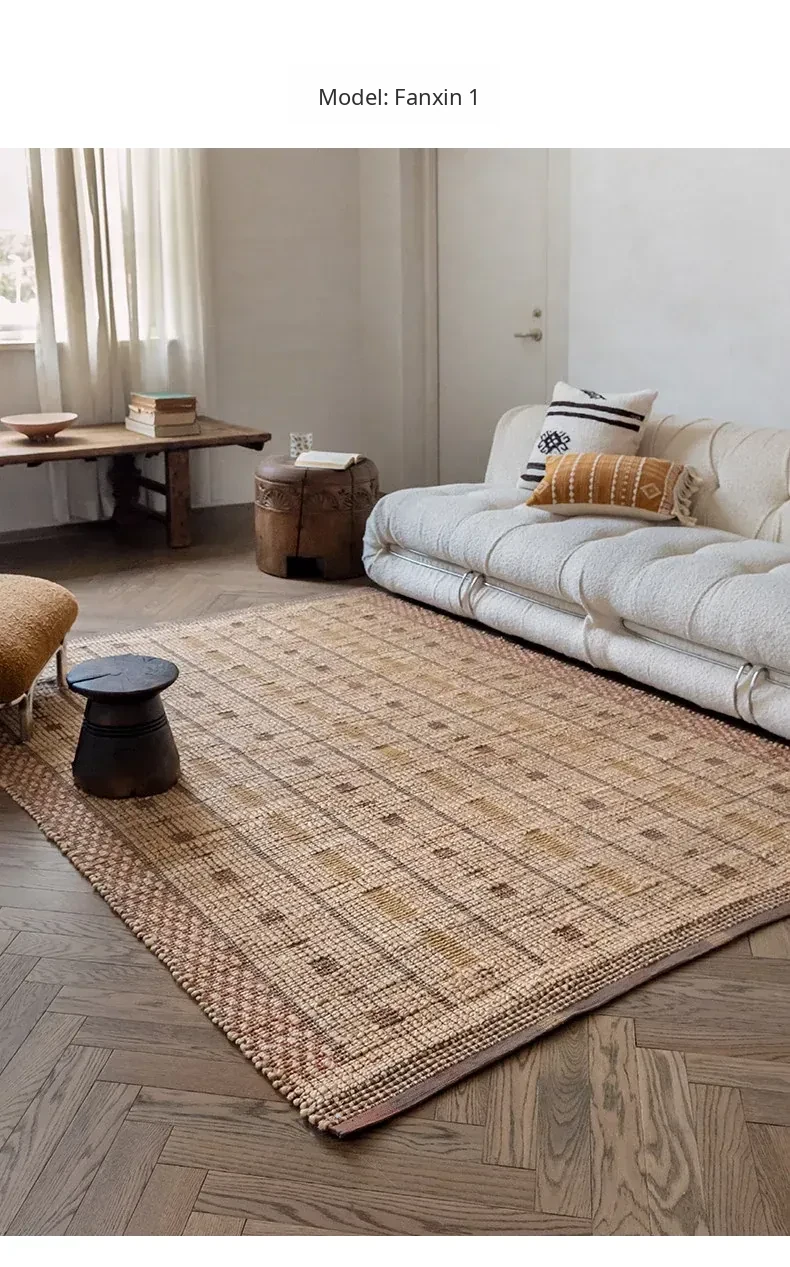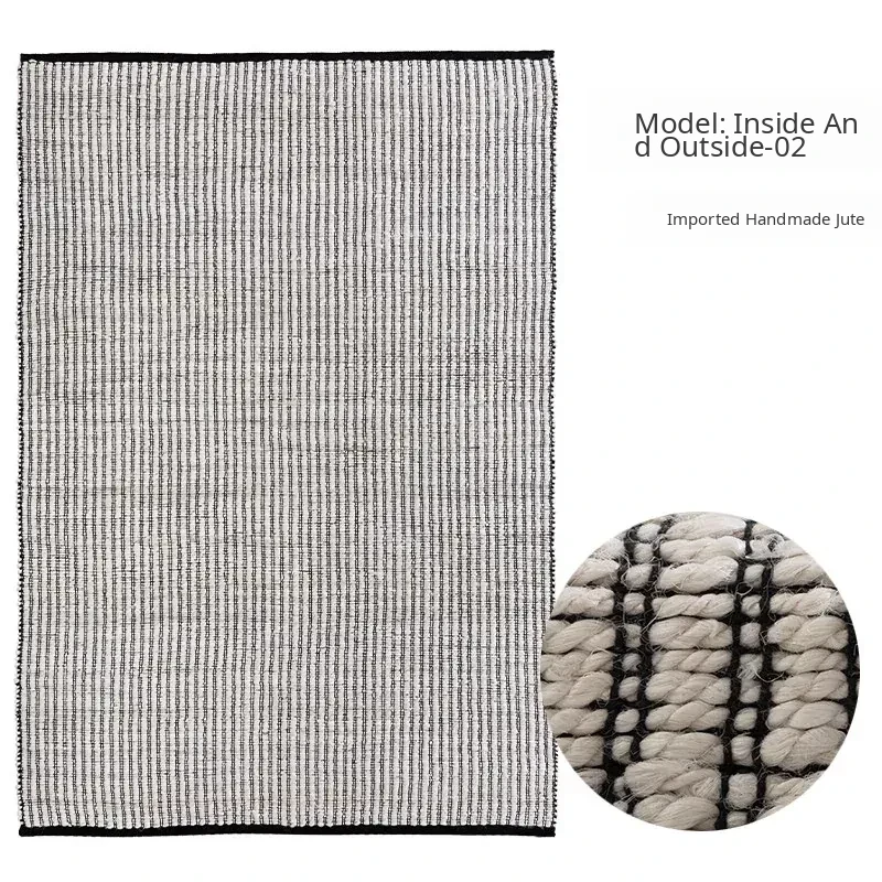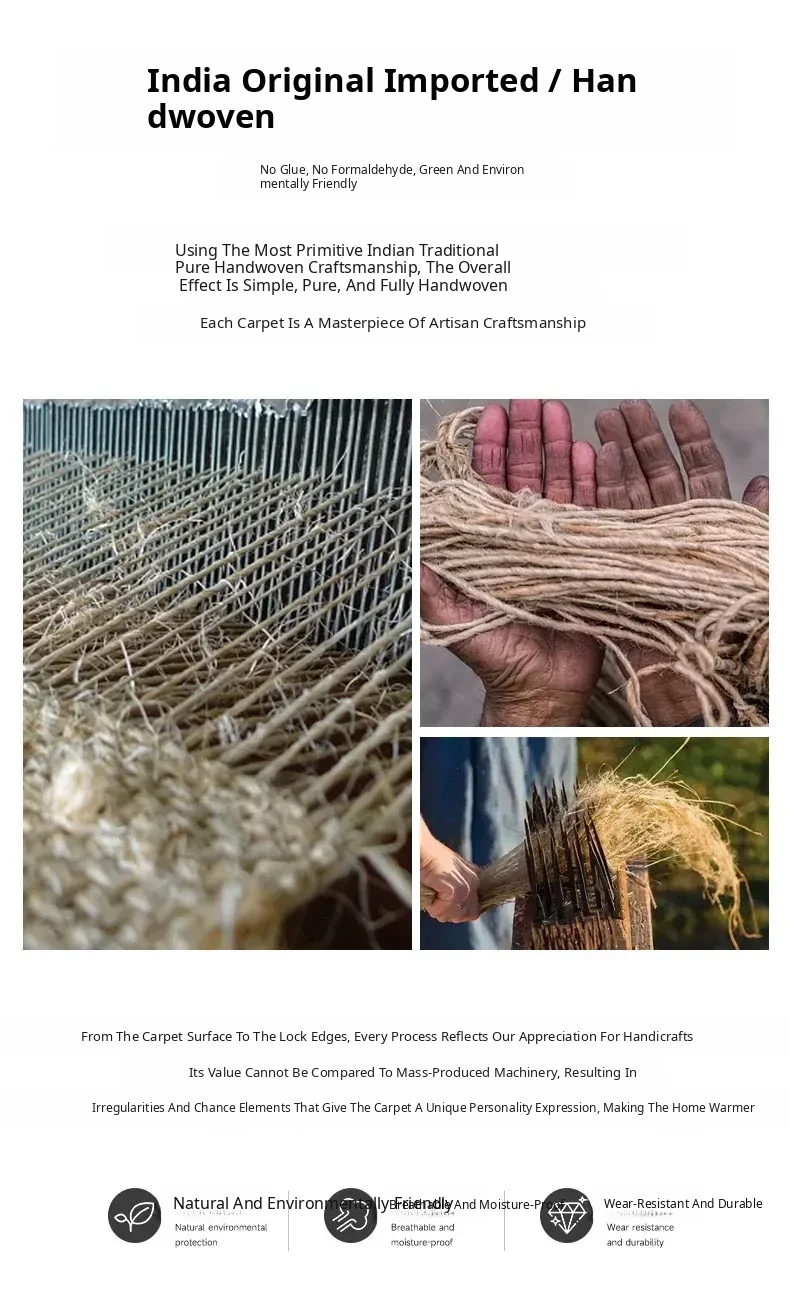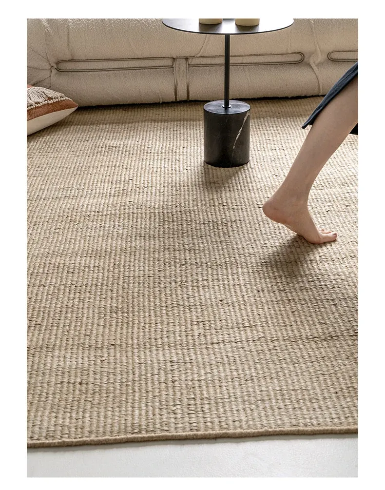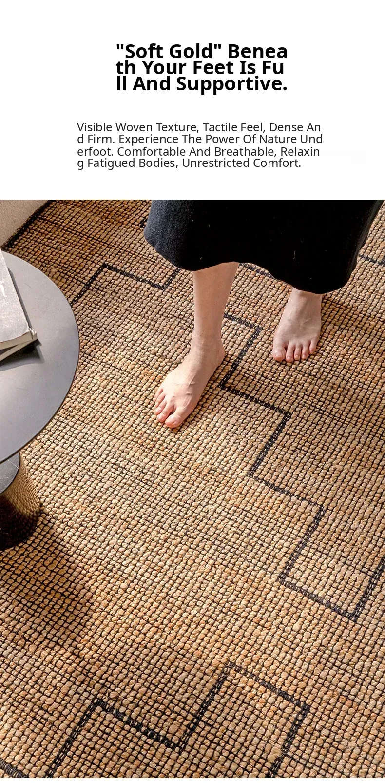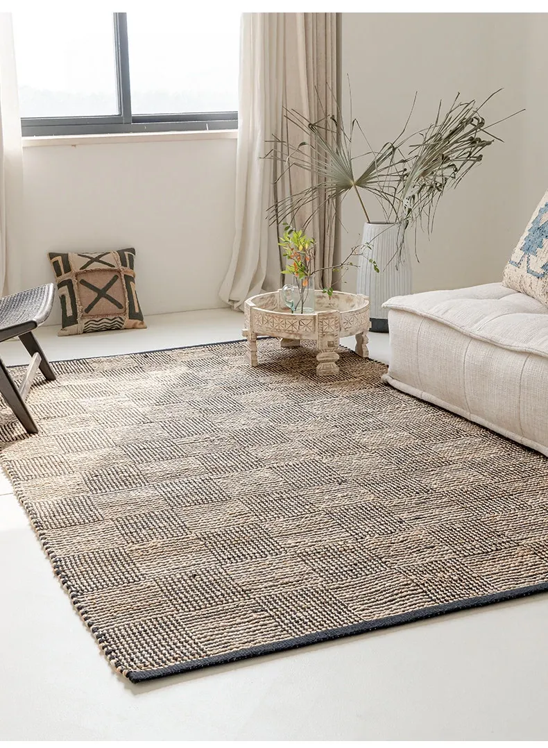 Visual Flavor Imported No-Glued Jute Rug - Handwoven Japanese Style Natural Wood Living Room Coffee Table Mat with Italian Elegance