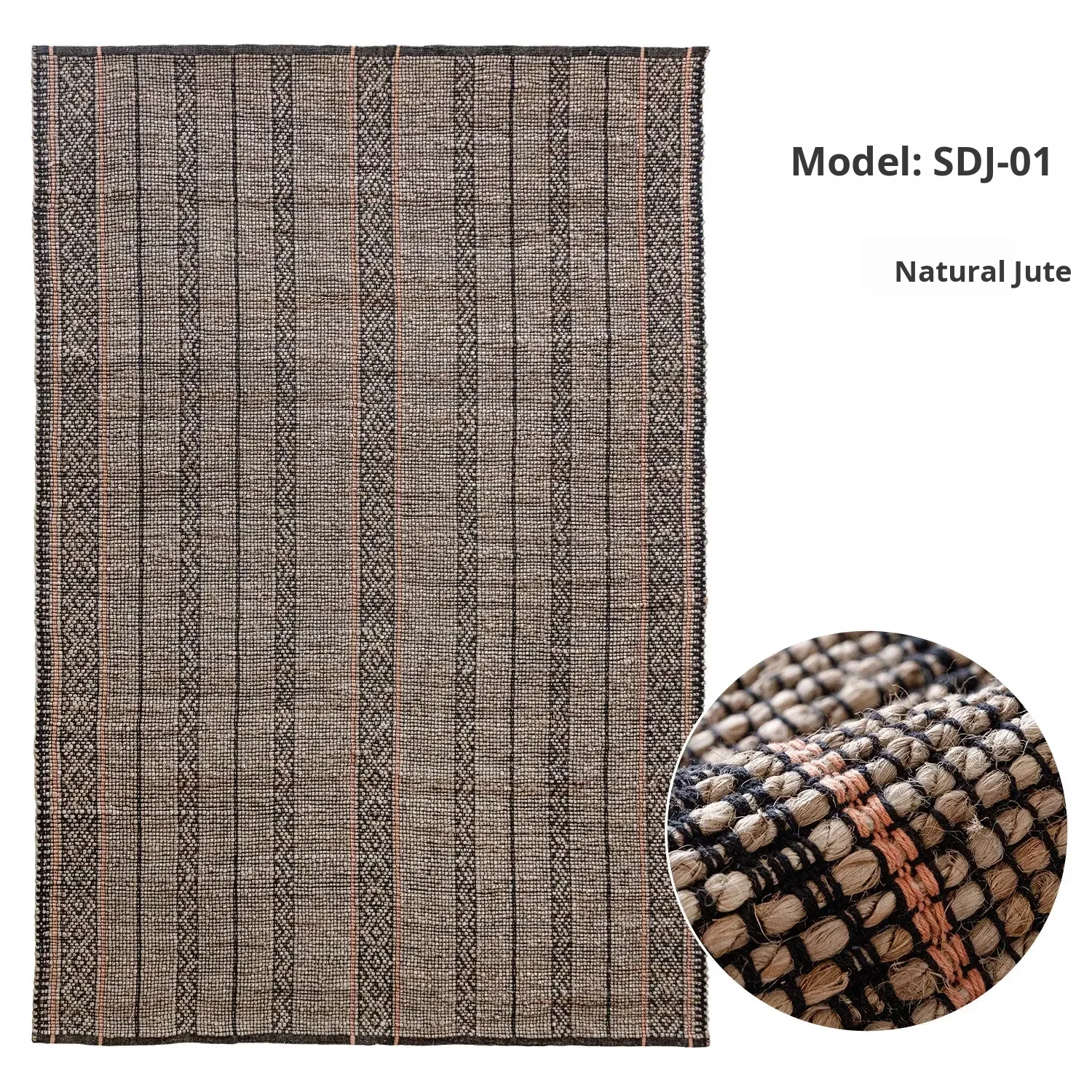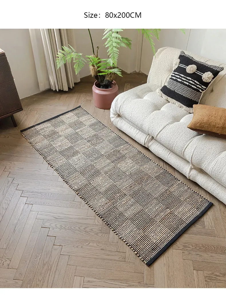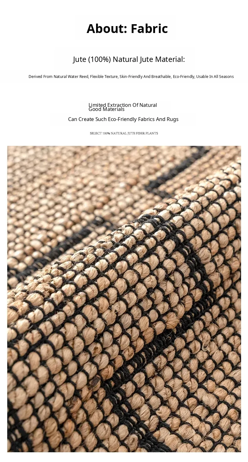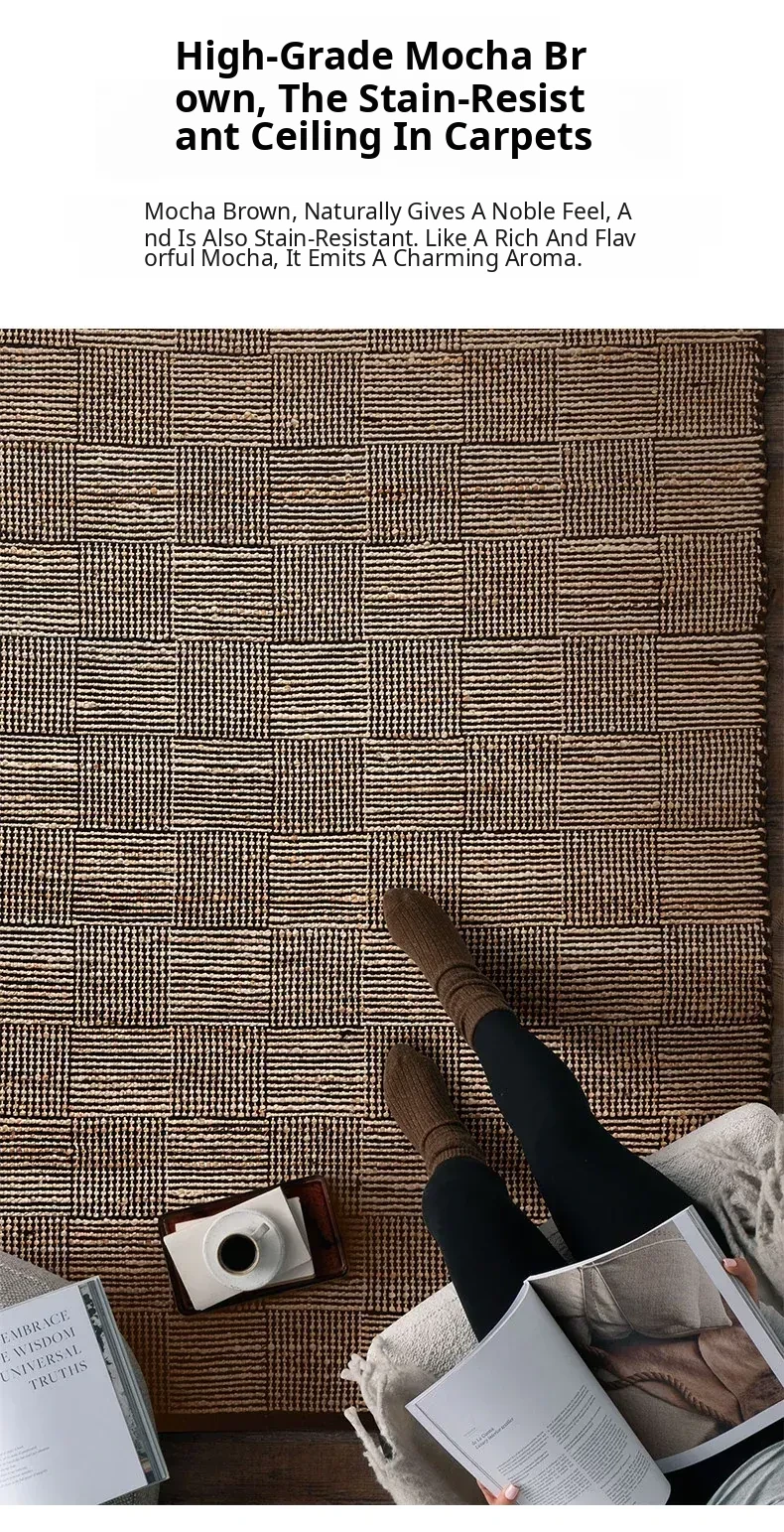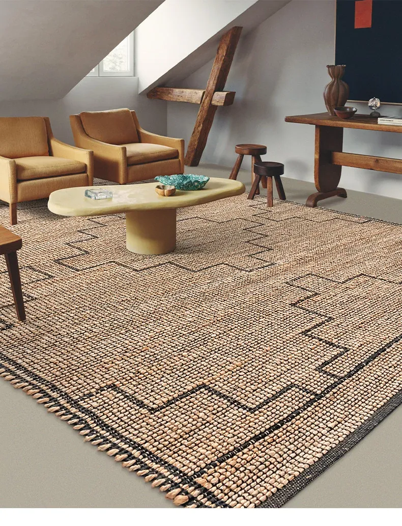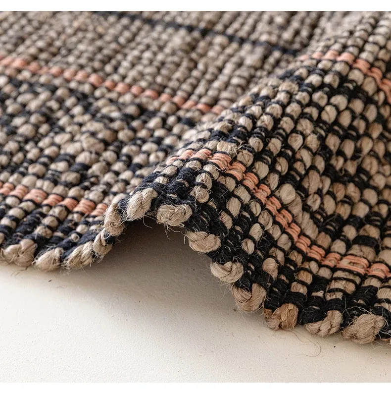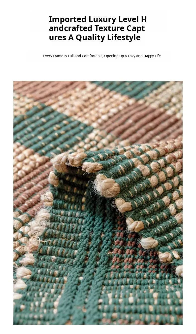 Visual Flavor Imported No-Glued Jute Rug - Handwoven Japanese Style Natural Wood Living Room Coffee Table Mat with Italian Elegance
