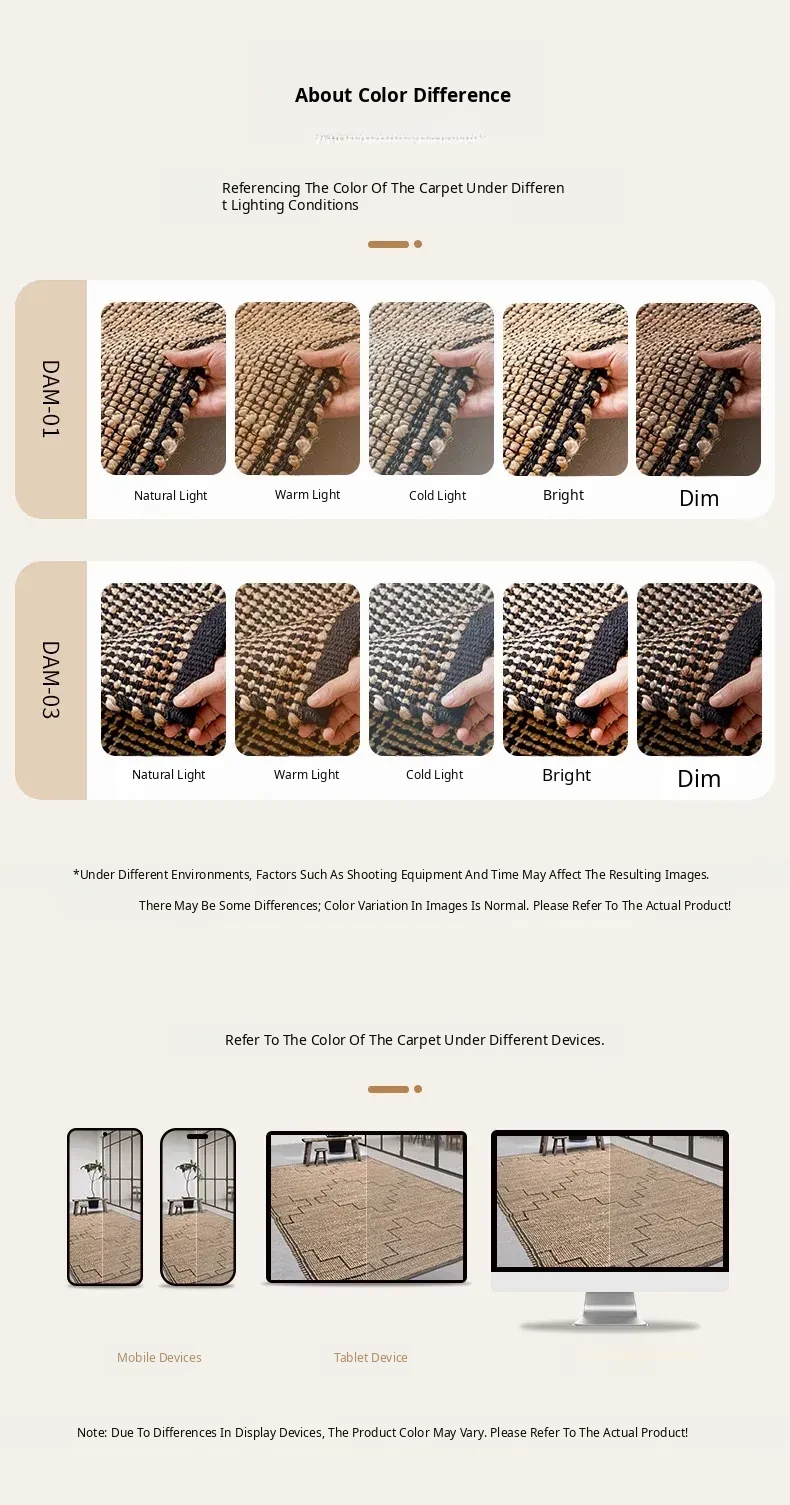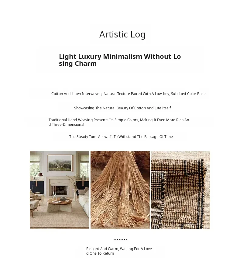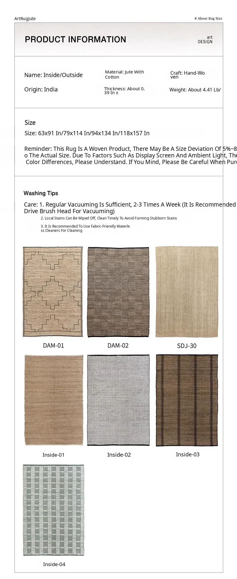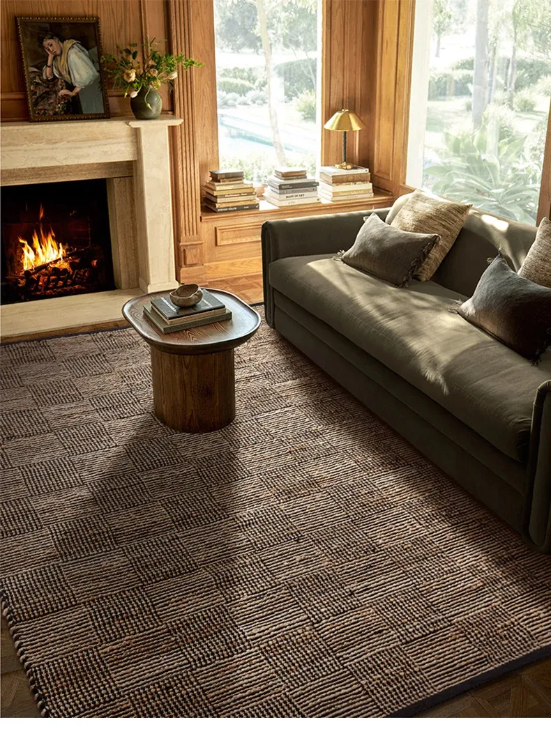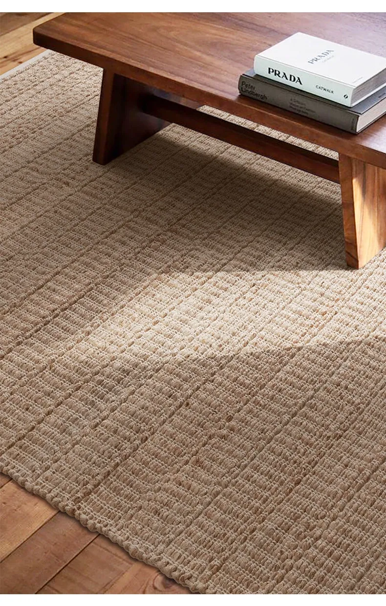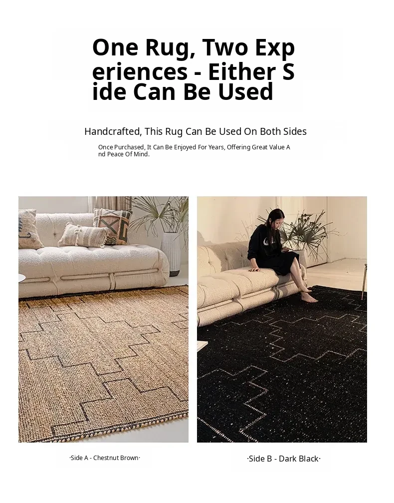 Visual Flavor Imported No-Glued Jute Rug - Handwoven Japanese Style Natural Wood Living Room Coffee Table Mat with Italian Elegance