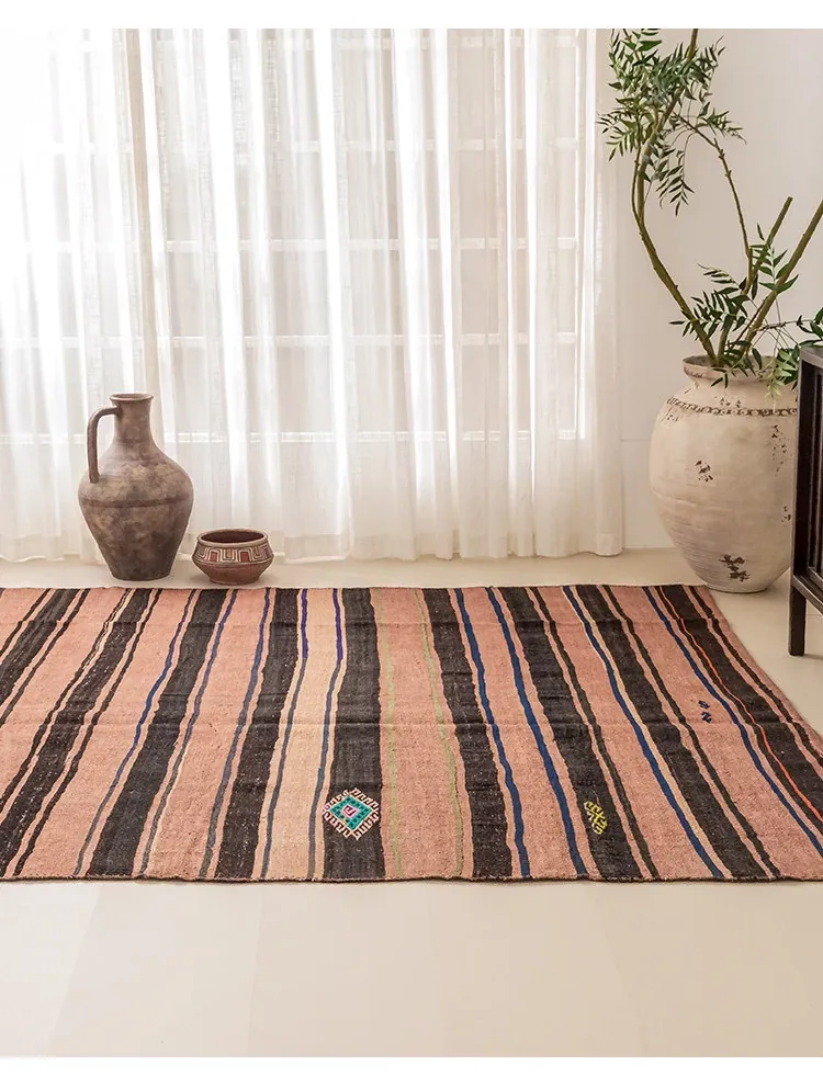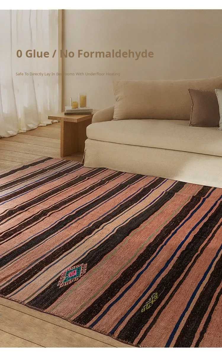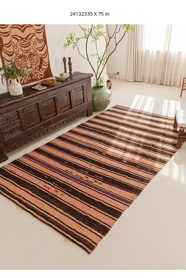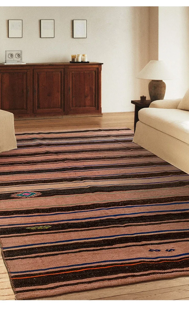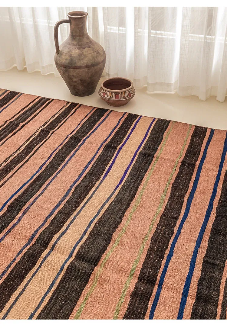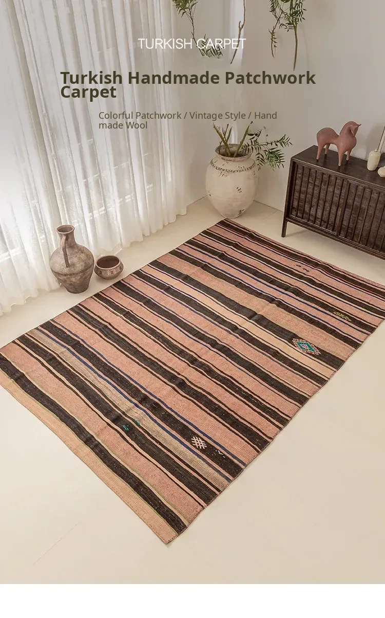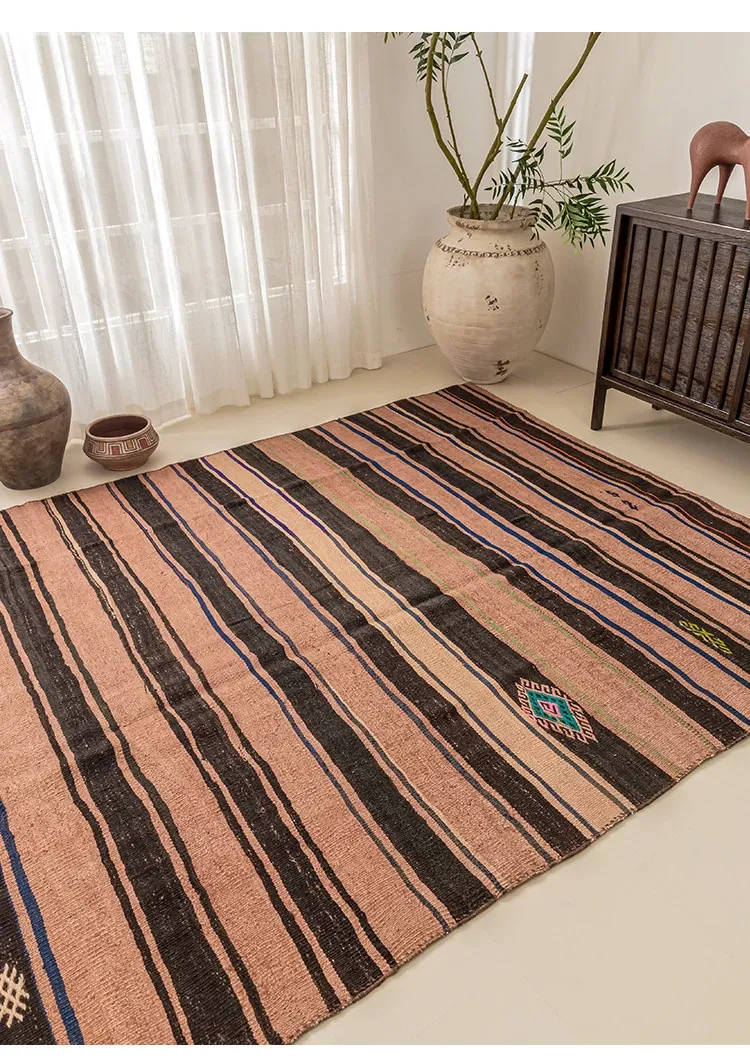 "Visual Flavor: Imported Turkish Handmade Wool Rug for Living Room and Bedroom - Minimalist Moroccan Style Carpet"