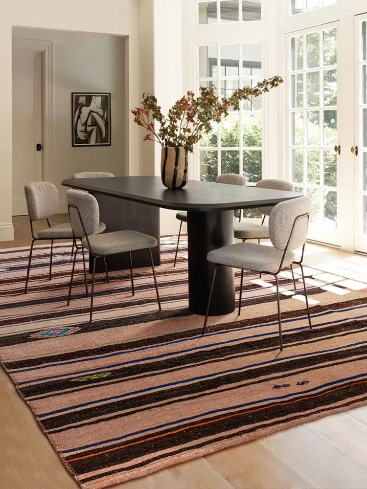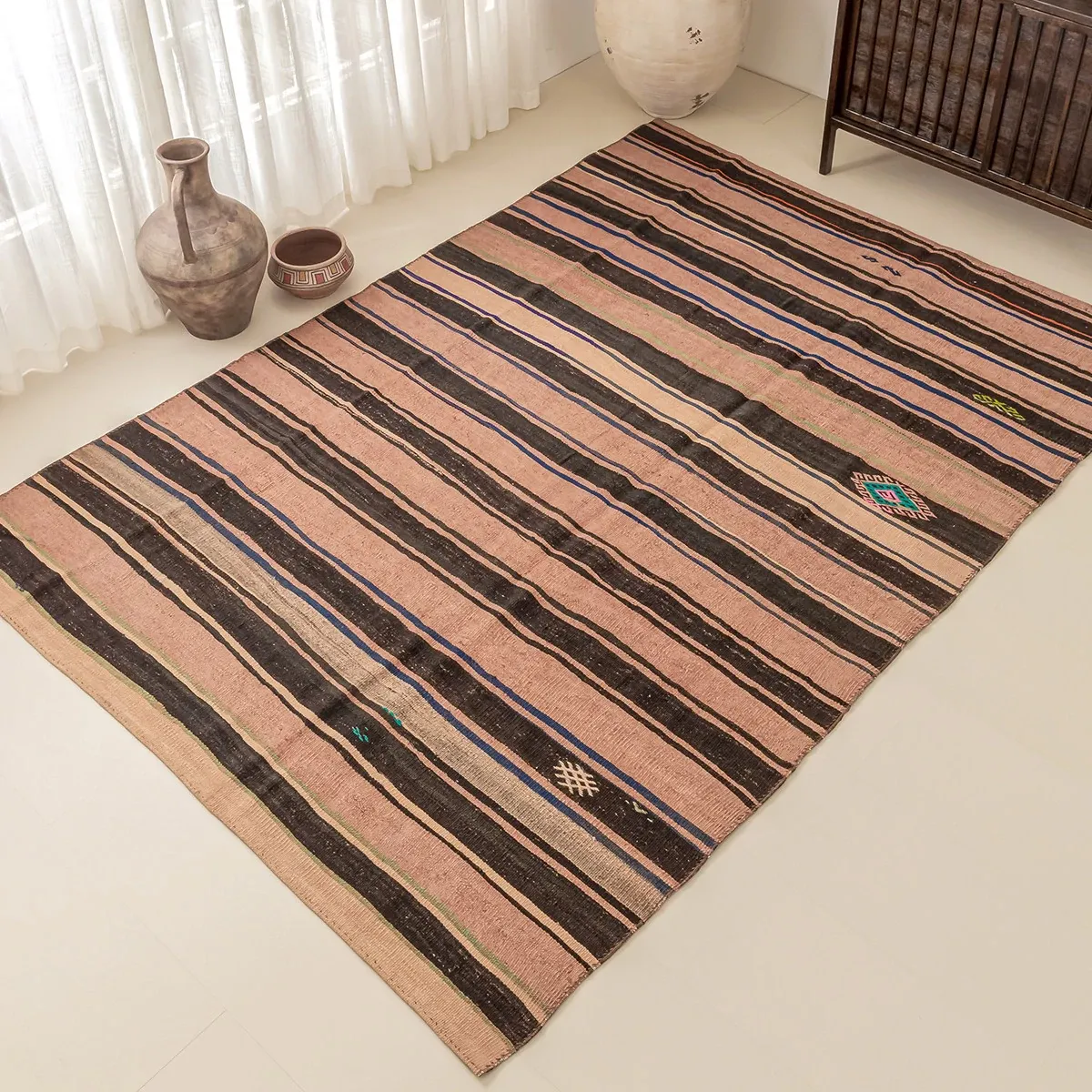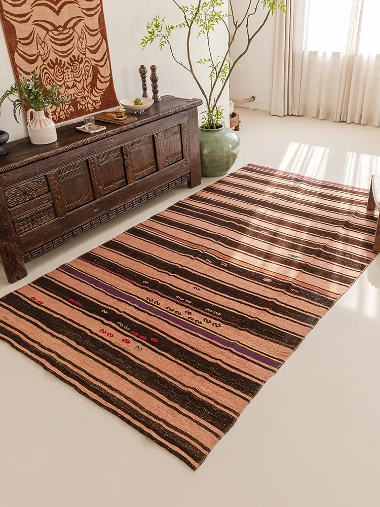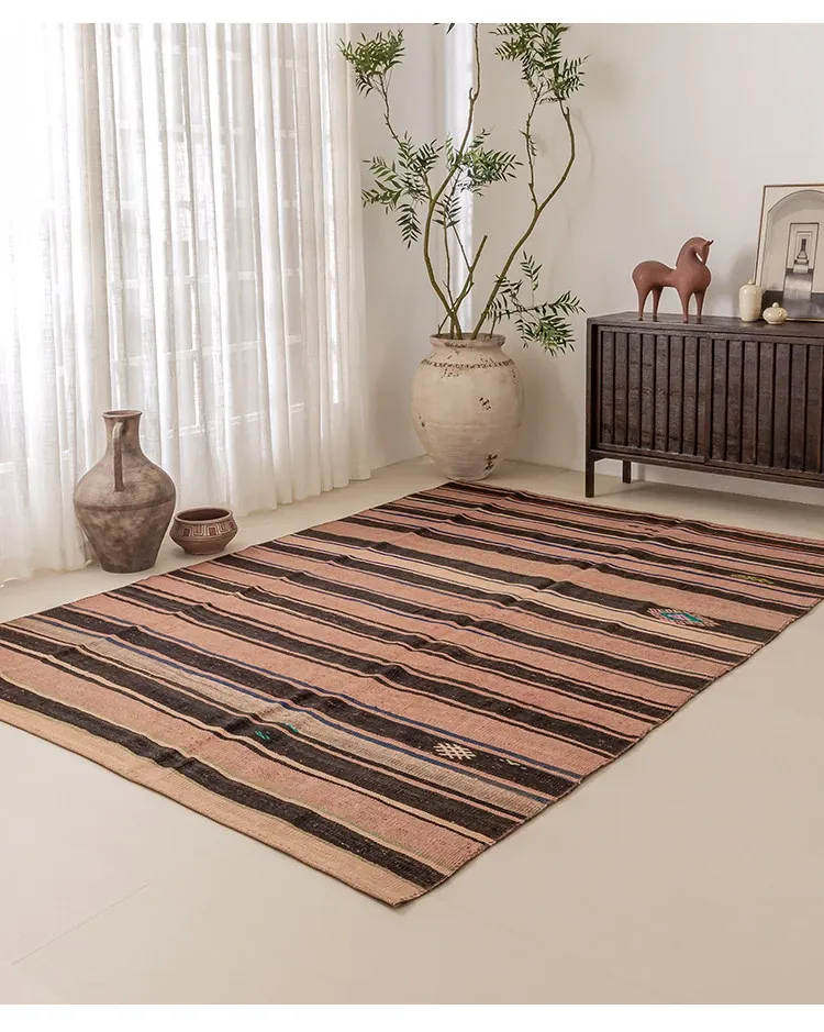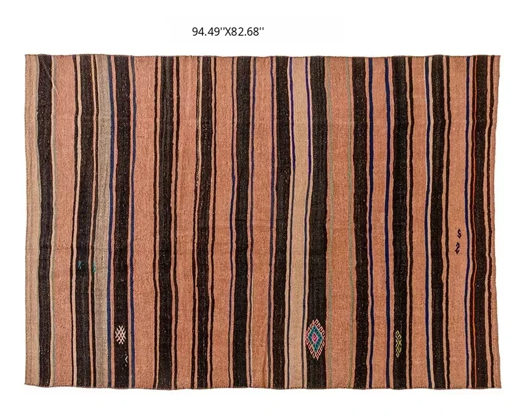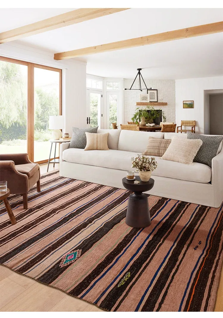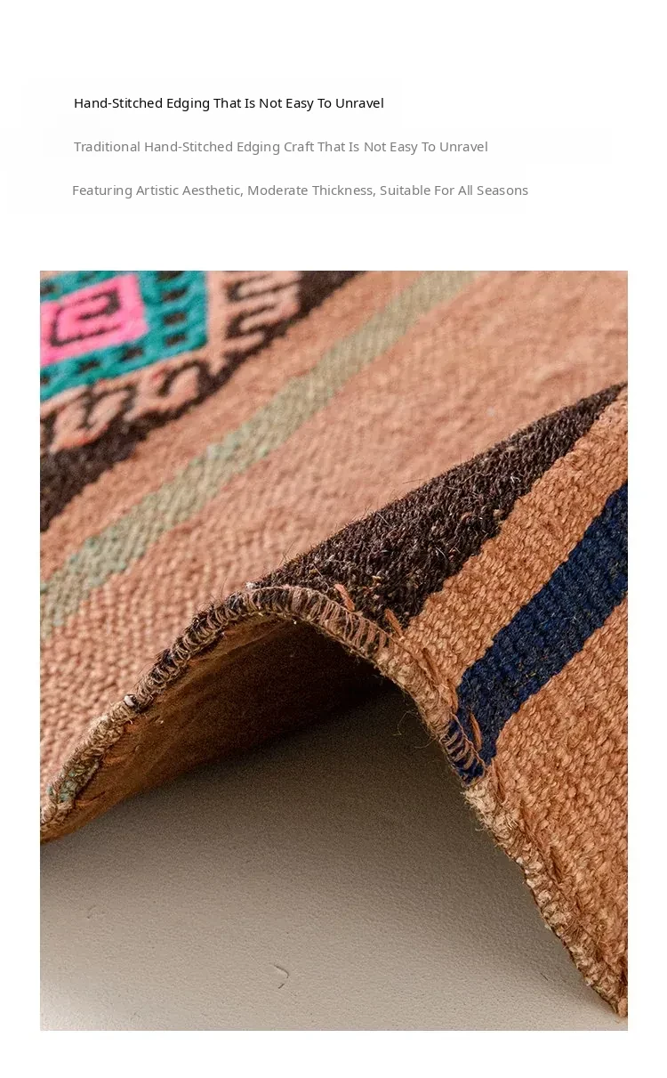 "Visual Flavor: Imported Turkish Handmade Wool Rug for Living Room and Bedroom - Minimalist Moroccan Style Carpet"