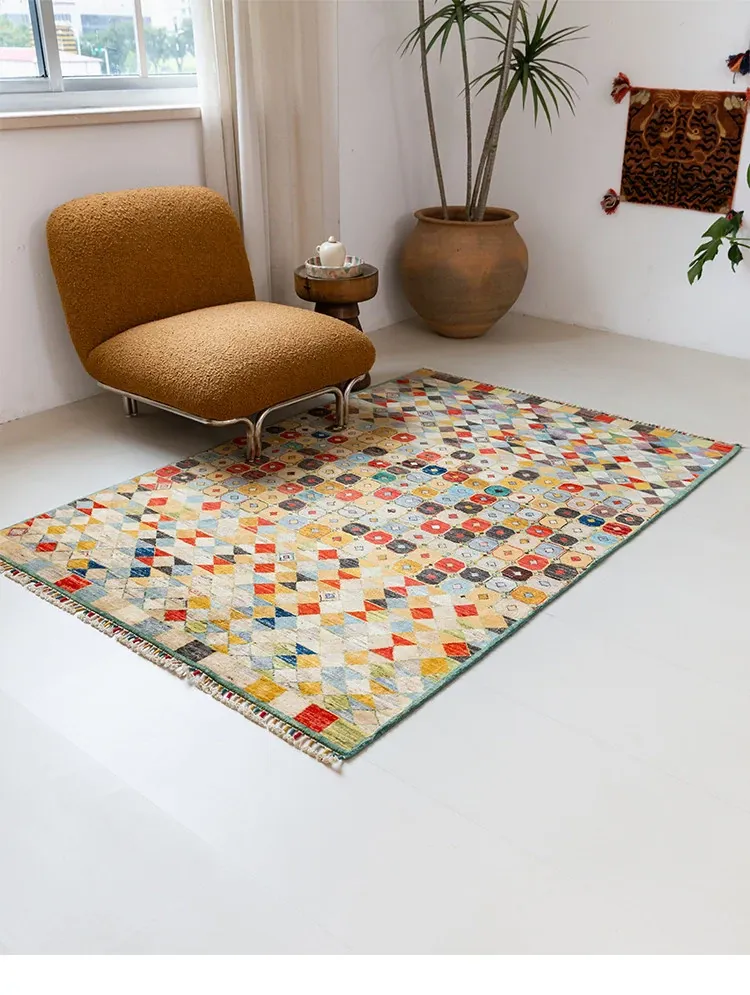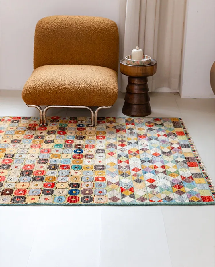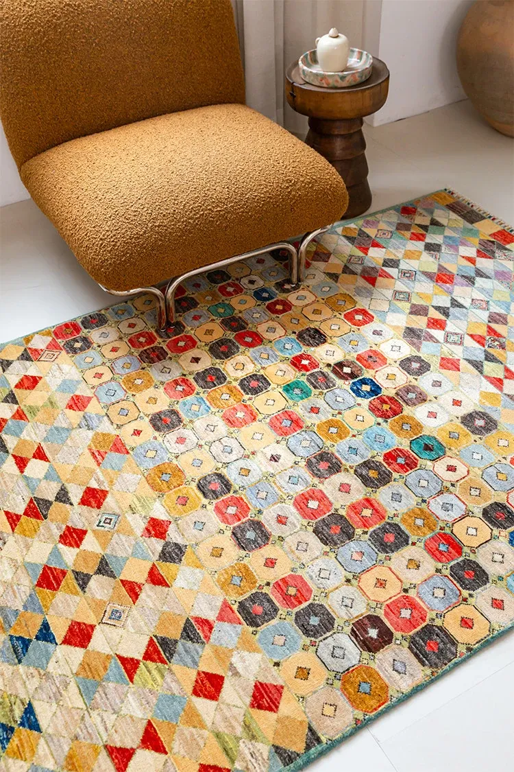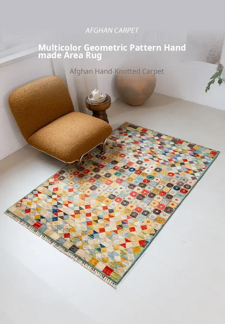 Visual Taste: Handcrafted Afghan Wool Rug - Modern Wabi-Sabi Style, Eco-Friendly Vintage Carpet for Your Living Room
