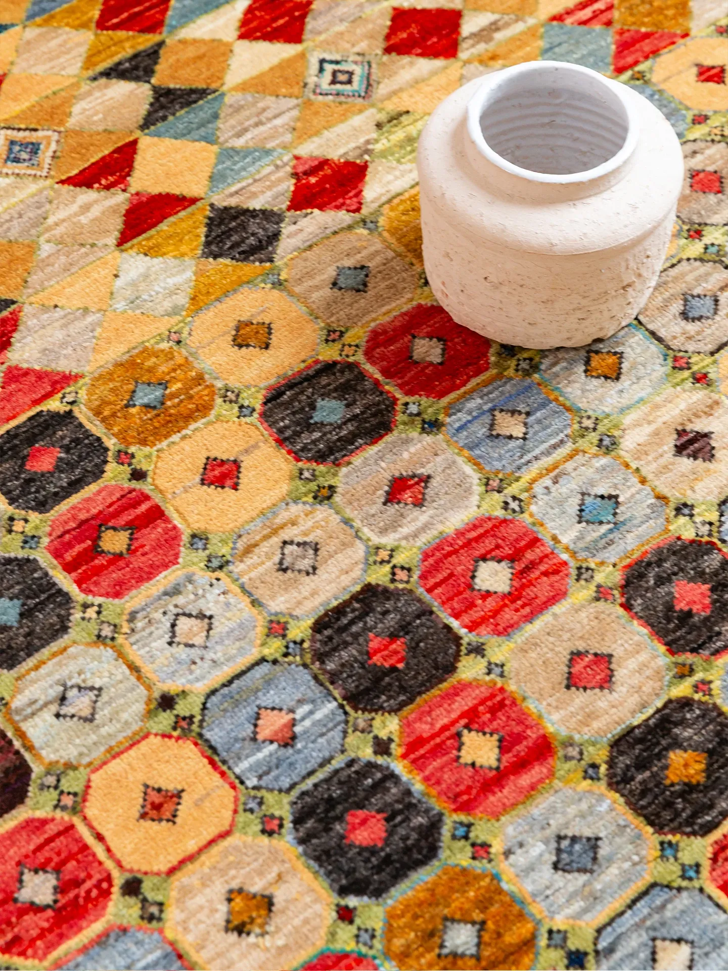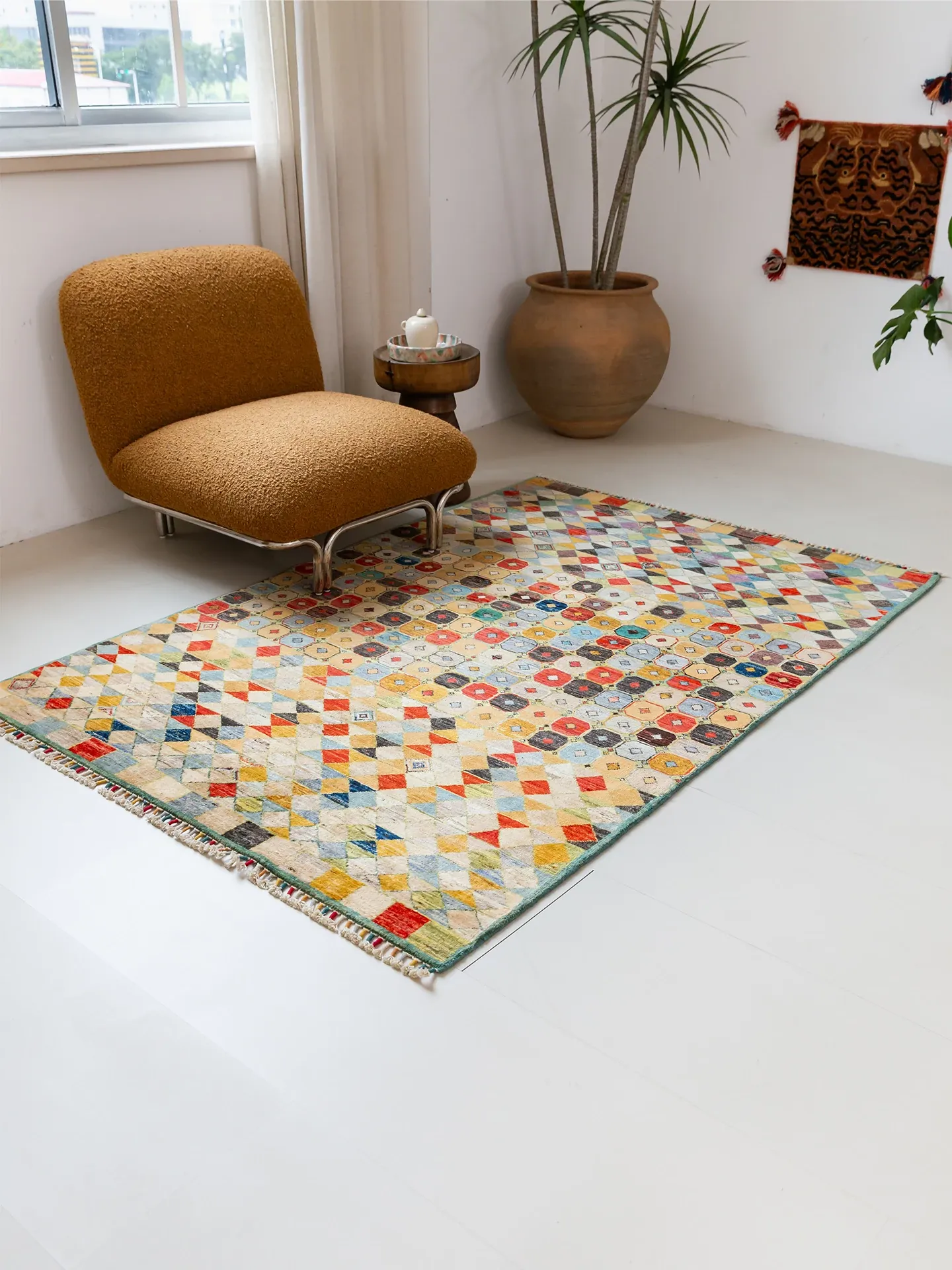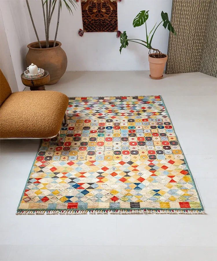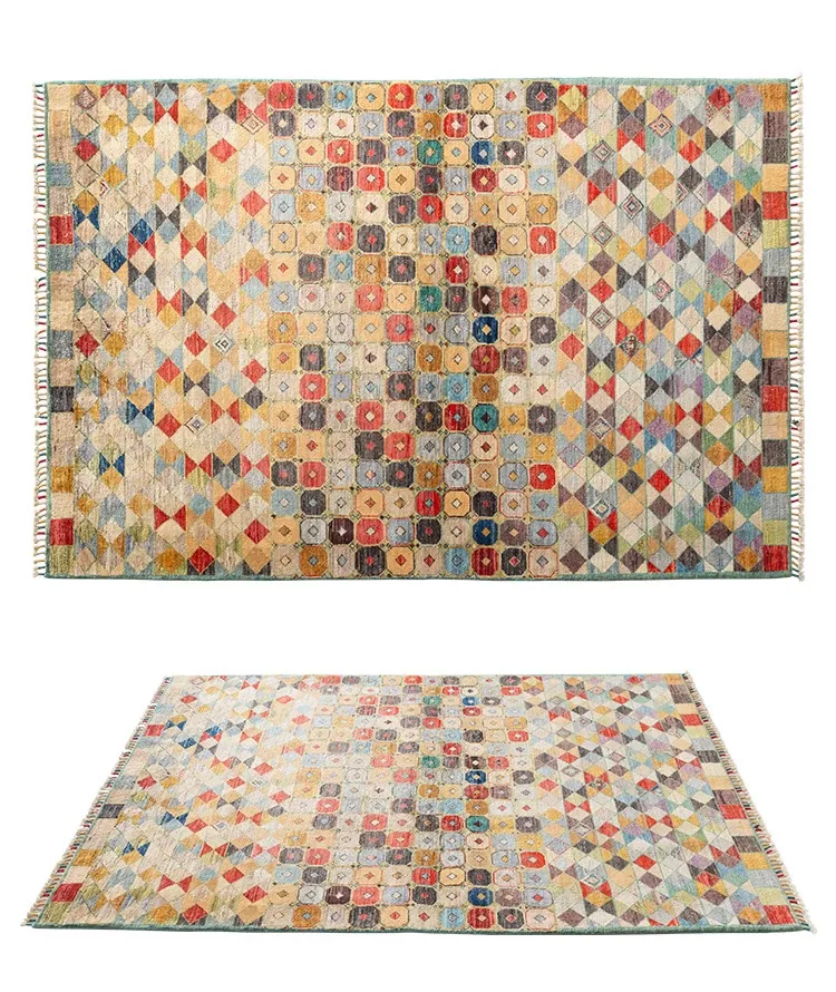 Visual Taste: Handcrafted Afghan Wool Rug - Modern Wabi-Sabi Style, Eco-Friendly Vintage Carpet for Your Living Room