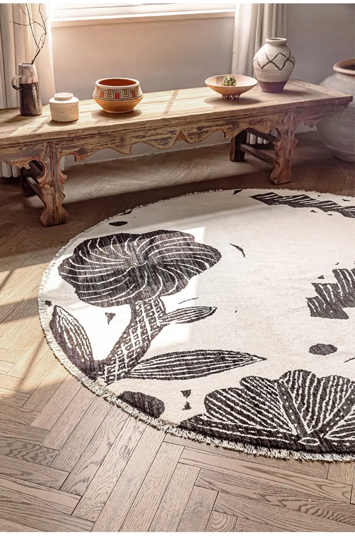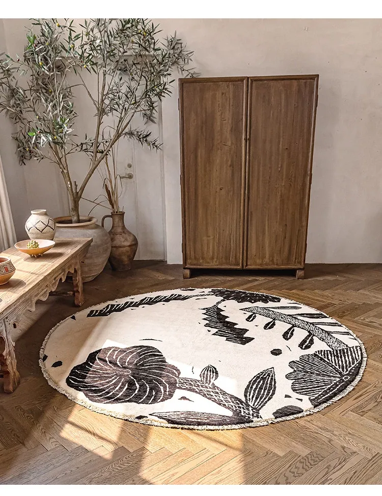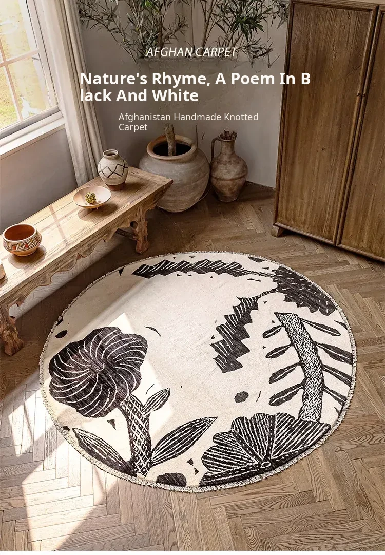 Visual Taste: Handmade Round Wool Rug - Minimalist Wabi-Sabi Style, Formaldehyde-Free Afghan Carpet for Your Living Room